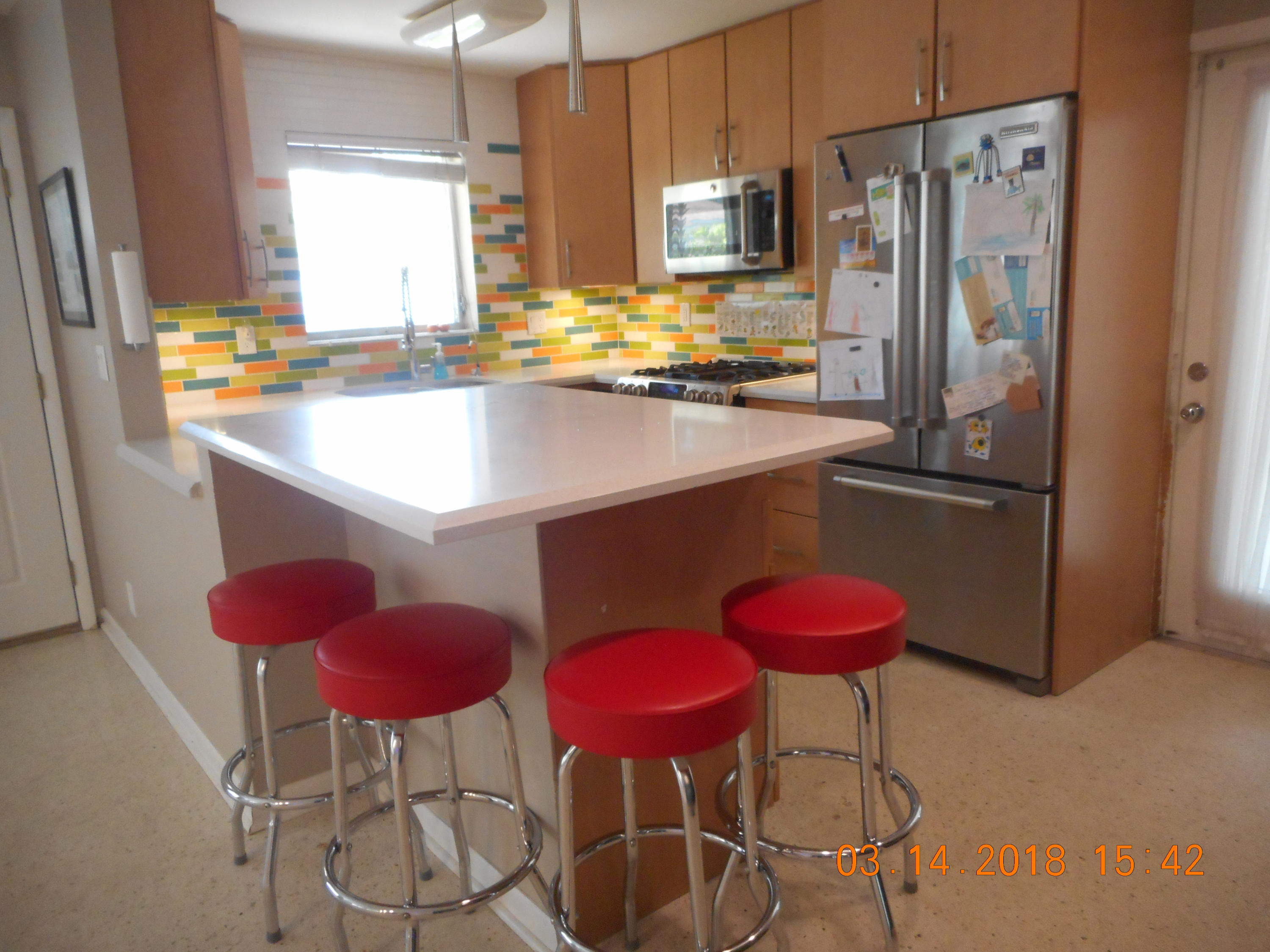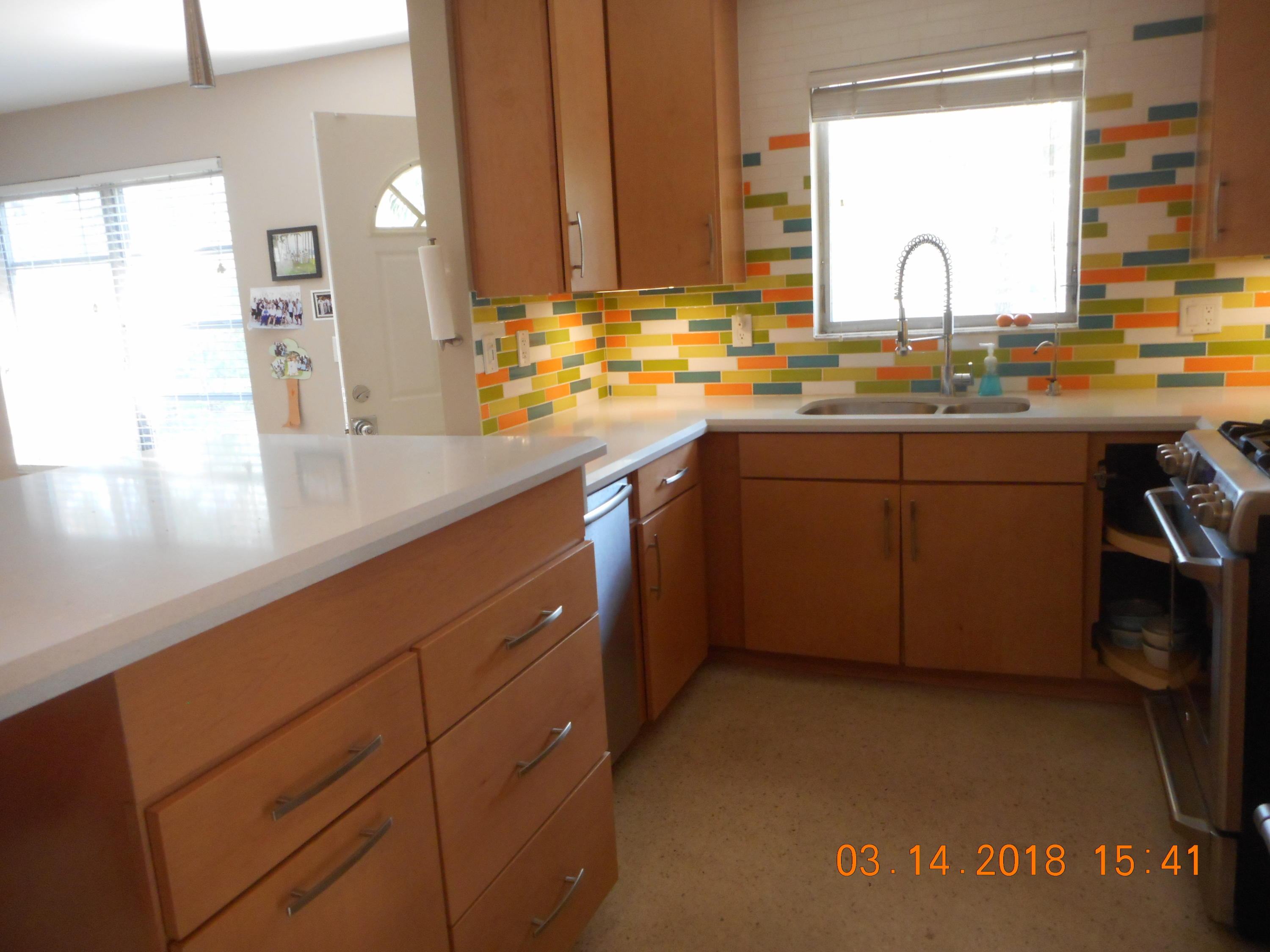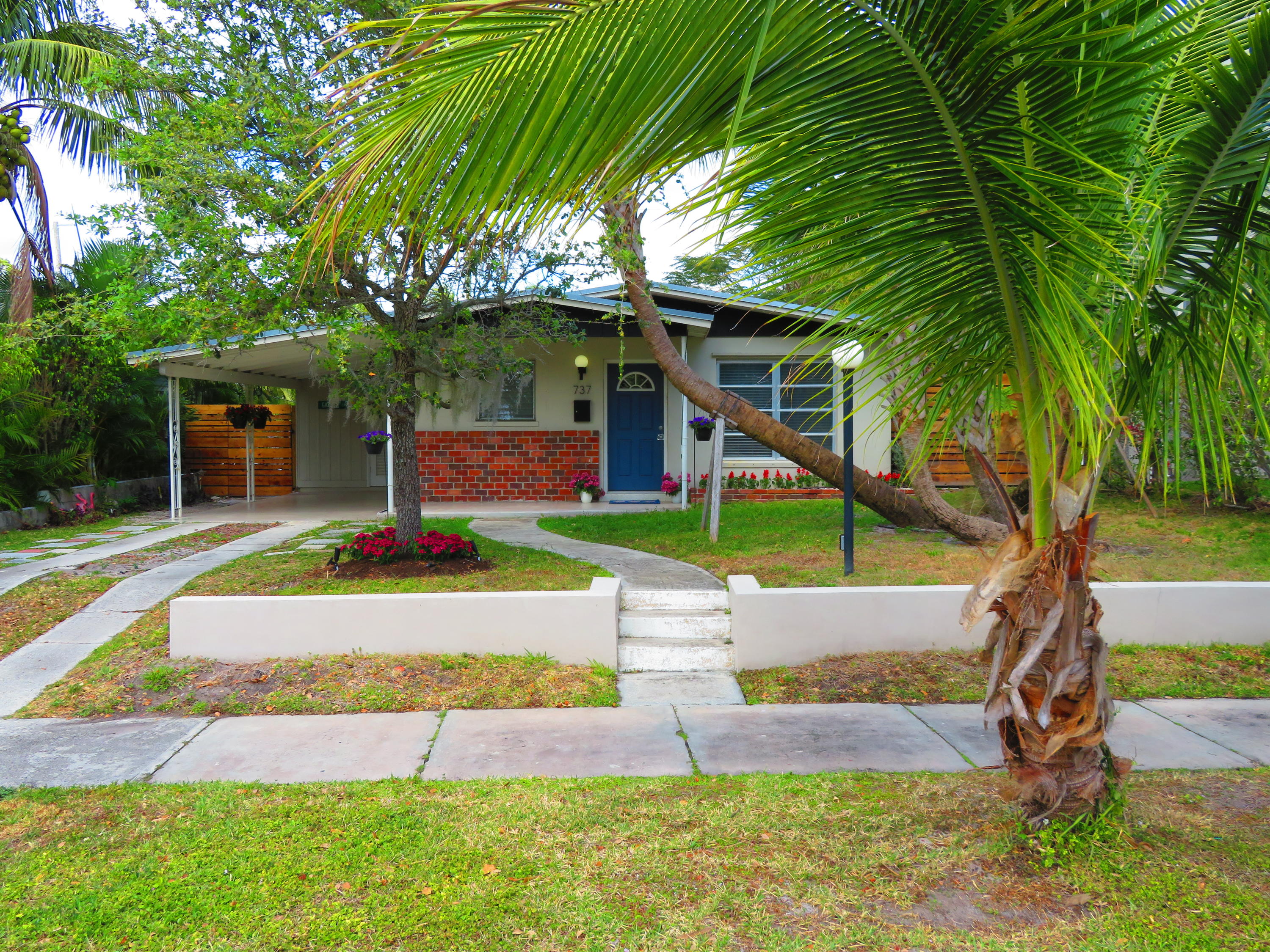 BETTER PHOTOS COMING SOON!! Non-contributing property in the Flamingo Park Historic District. Mid-century modern home with smartly updated and colorful kitchen (quartz counters, maple cabinets, beverage center, lots of storage and water filtration system). LED and other energy-efficient lighting. Pocket doors. Plenty of room for pool. Home wired for POE security cameras or speakers. Plans available to enclose carport for enclosed laundry, half bath and office. Nice block of homes. Easy walk to downtown!