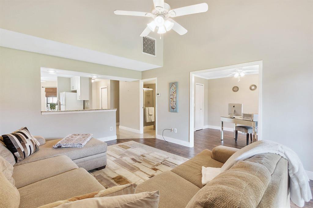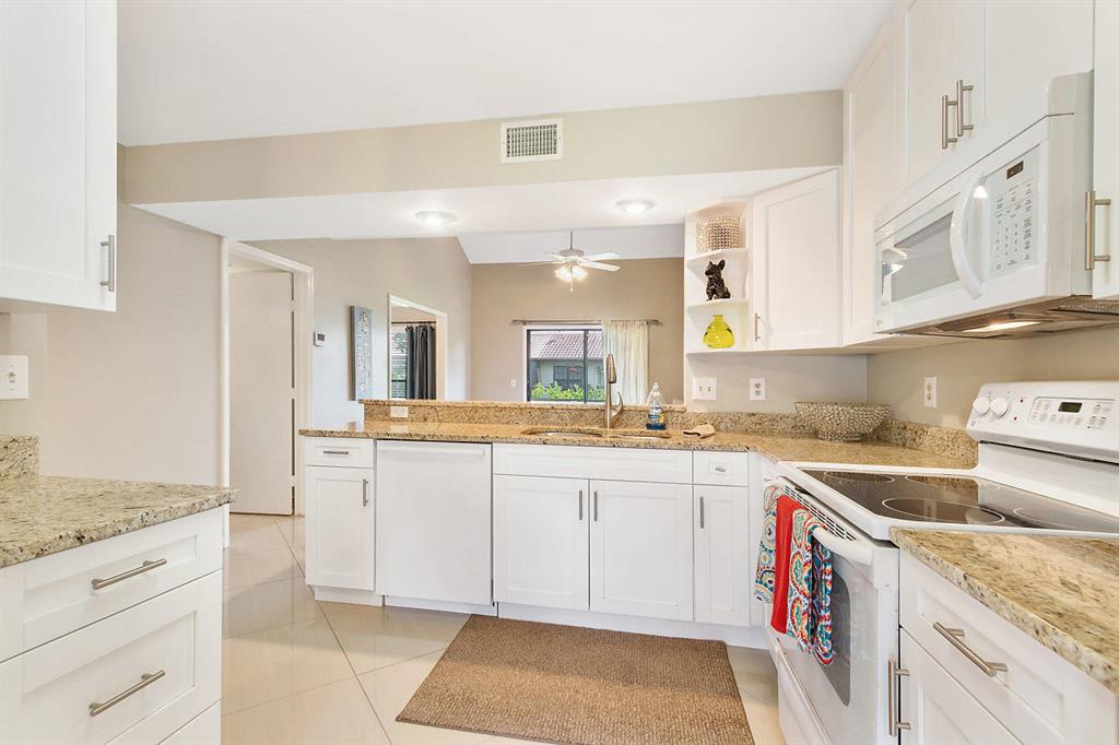 The moment you step inside this beautiful, totally renovated 2/2 + Den End-Unit townhome w/one-car garage you'll want to stay! The open plan features gleaming porcelain tile and wide-plank wood laminate flooring. The cheery kitchen portrays white shaker cabinetry, granite countertops, breakfast nook open to the great room w/glass sliders leading to the private screened-in lanai perfect for entertaining. The first-floor also features a den/office/convertible bedroom & full bath. Upstairs resides the master suite, full bathroom & second bedroom. The one-car garage features coated flooring & brand new front-load washer/dryer. Bonus: Accordion storm shutters & new AC. 10254 Riverbend Terrace offers a prime location, A-rated Boca schools, best shopping, dining & parks w/beach just a short drive