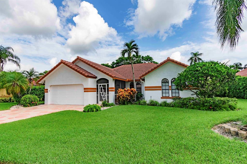 NO MEMBERSHIP REQUIRED to live in this beautiful BOCA GREEN COUNTRY CLUB COMMUNITY...Great golf course view with no required membership.. 3/2 screened pool home with two car garage.. New paint .. open floor plan with vaulted ceiling.. newer roof, newer driveway and pool deck.. Hurricane proof french doors to the pool off the living room...Low HOA fee includes Internet plus premium cable and access to their apps, various other stations..