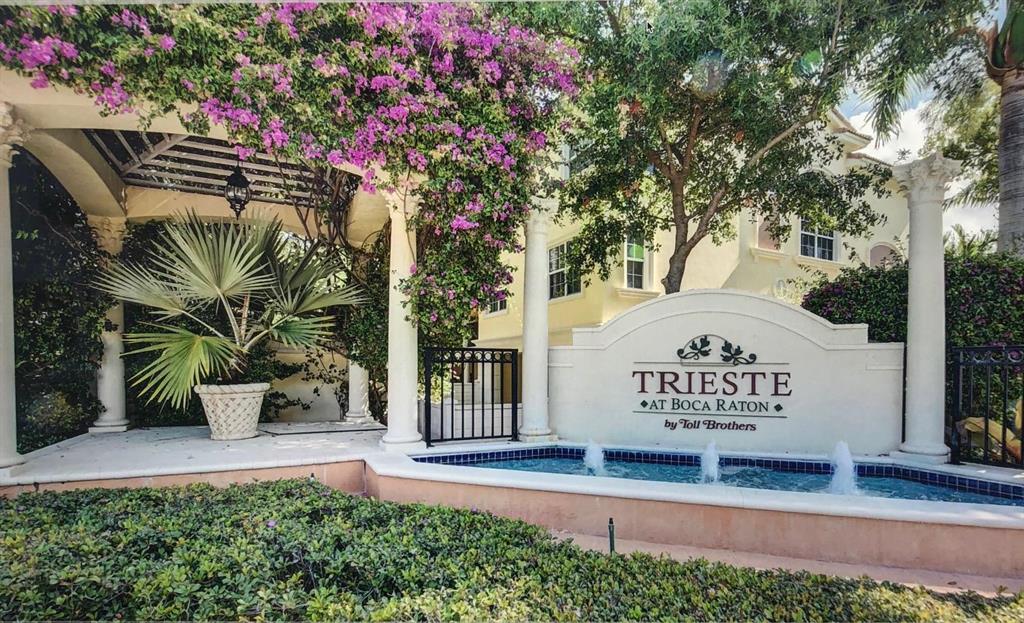 Enjoy resort style living in this luxury townhome in East Boca's desirable gated community of Trieste! This desirable Aventino model is a 3 story Townhome with elevator and 2 car garage. Offering over 3,000 Sq ft with 3 BR, 2 full & two half Baths plus a separate Den/Office & bonus room. The entry level includes a two story Foyer, and spacious bonus room that could be used as an office den or extra bedroom with new handicap accessible bathroom The second floor has an open living room and kitchen with granite counter tops, breakfast bar and gas cook top. The third floor features a laundry room and 3 bedrooms. A large Master suite has double vanity sink and large master closet.