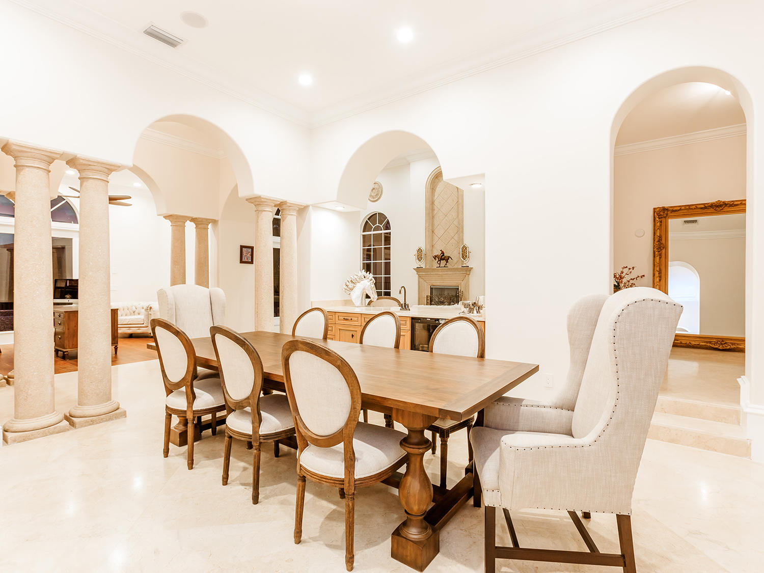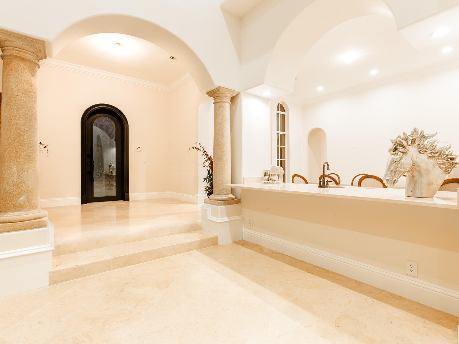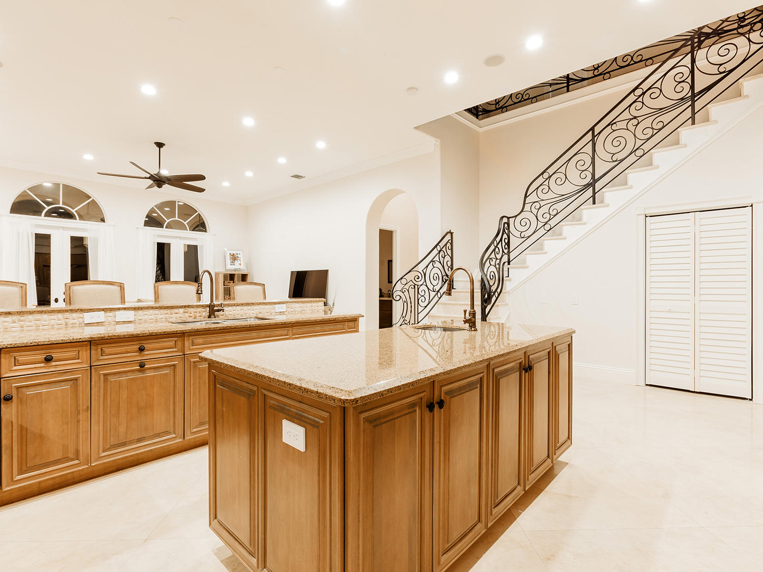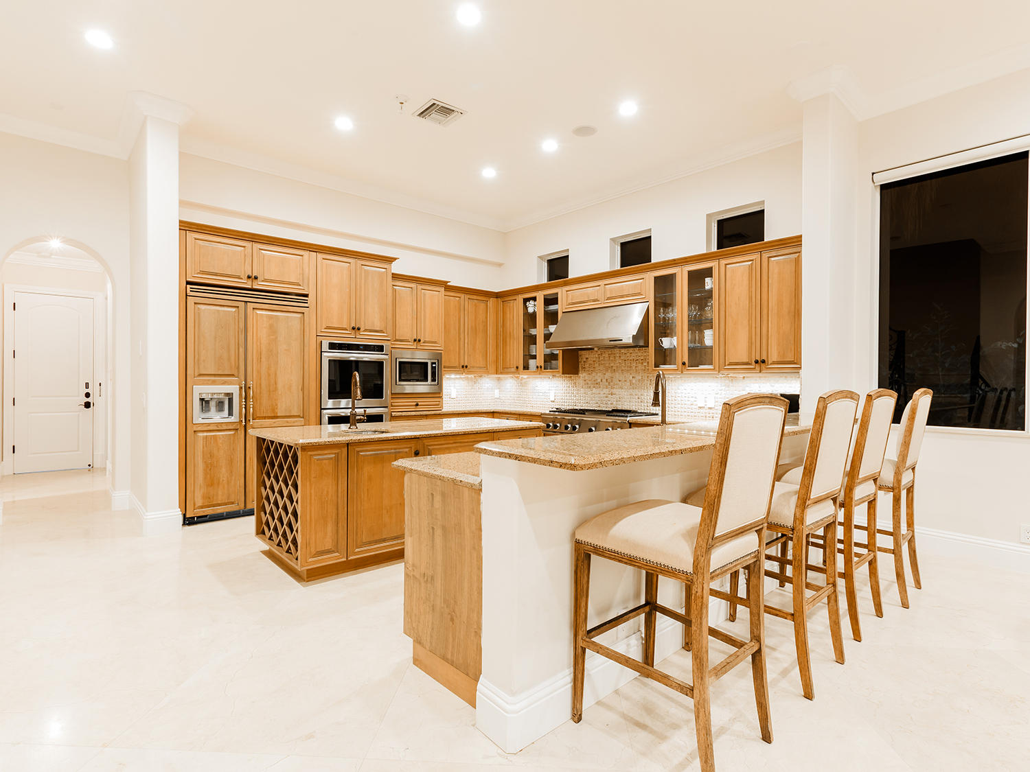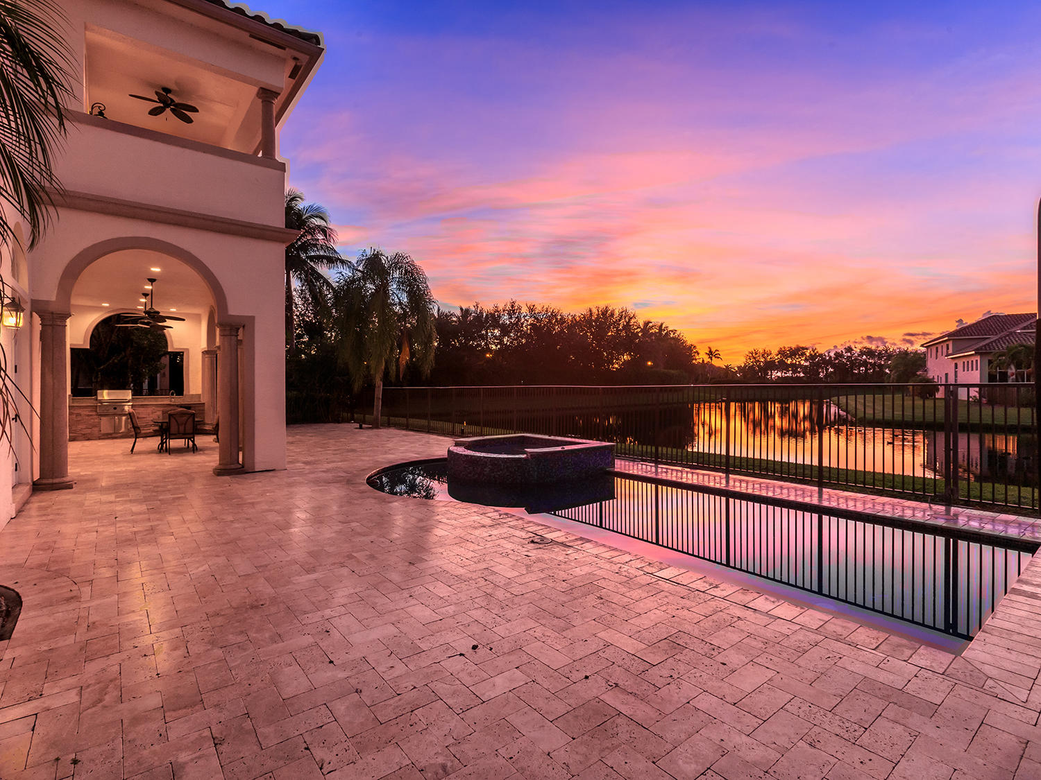 Drastic reduction! One-of-a-kind custom lakefront estate blends Old World architecture with Transitional design elements. The light & bright interior has been renovated w/new bathrooms, a gourmet kitchen w/natural gas, pool/spa, as well as hardwood & marble floors throughout! Not your typical home in The Oaks! The first level offers one bedroom, 2 full baths, a den/office, as well as the living and dining areas. The second level encompasses the Master Suite, laundry room, loft & 3 additional en-suite bedrooms, 2 of which include private balconies. All bedrooms have custom closet systems. The tropical oasis in the rear of the home overlooks the sparkling lake and features a resort-style pool with raised spa, an expansive marble sun deck w/covered loggia with summer kitchen. See supplemen