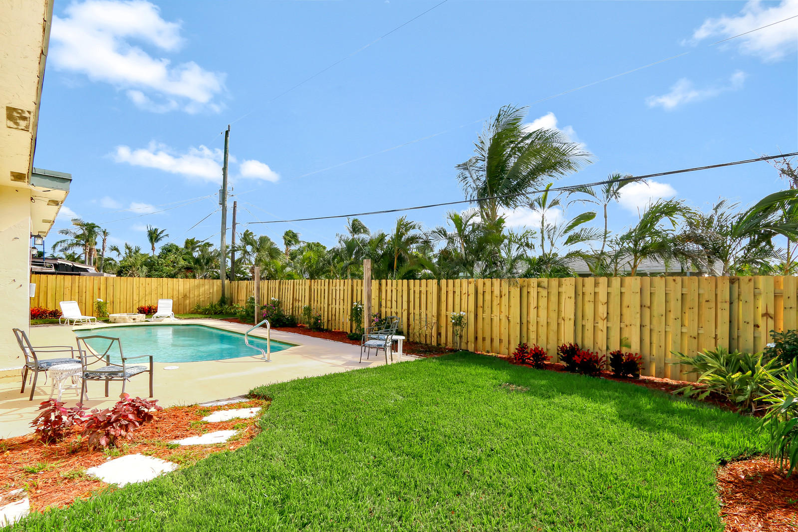 Great opportunity for East Boca living! Single family home with NO Homeowner's Association! Spacious 2-bedroom plus den with large closet to use as 3rd bedroom, home office, or playroom - 2-car garage - gorgeous pool! Three sets of French doors leading to beautiful backyard and private pool area with fenced in yard - Tiled floors on diagonal in living areas - Spacious living room with French doors to den/BR - Wood cabinets in kitchen, custom island for extra counter space and storage, big breakfast or dining area - Oversized bedrooms with updated baths - Master Suite with large, walk-in closet and expanded bathroom - New A/C (05/2017) - A-Rated Schools - NO HOA, pet friendly neighborhood! - Great east Boca location only minutes to beaches, downtown Boca Raton and Delray Beach.