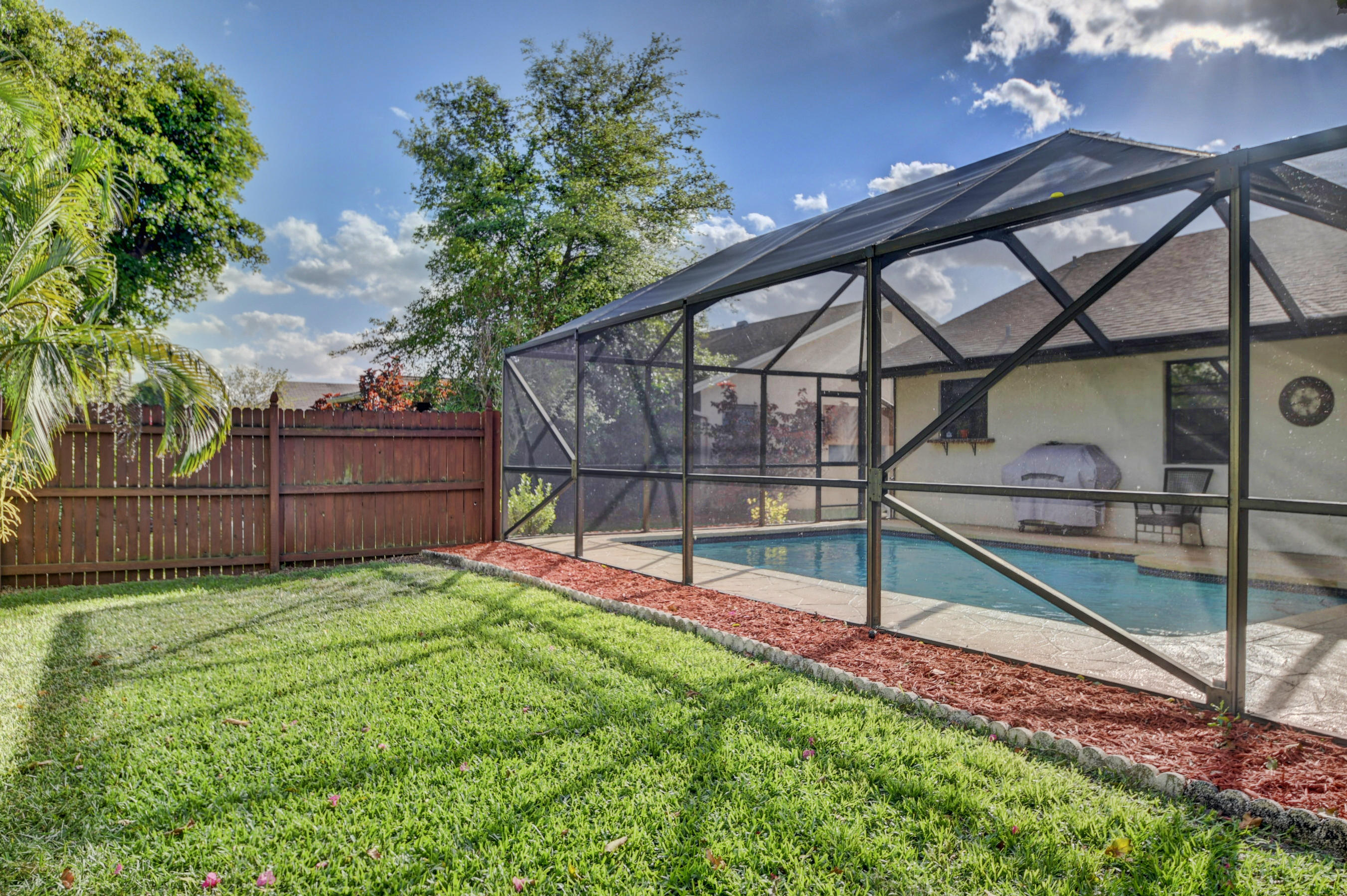 This magnificent immaculate 3br, 2ba, 2 car garage, pool home features a spacious open floor plan with sunken living room. Located in Barwood Estates a very sought family neighborhood...pet friendly with Low HOA and excellent school zones. Centrally located - minutes from Boca Mall, restaurants, shops and turnpike. Laundry Room inside home. Large shed and avocado tree in the backyard! This pristine home is ready for its new owner. Bring your fussiest buyers...this won't last!!...Property Sold ''as-is''