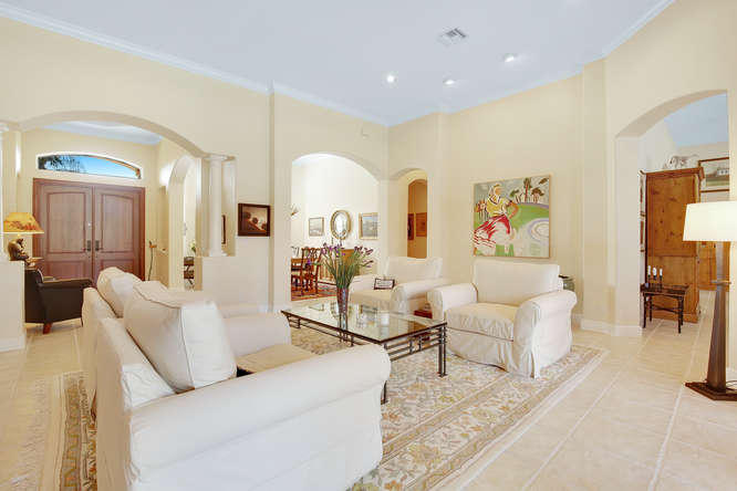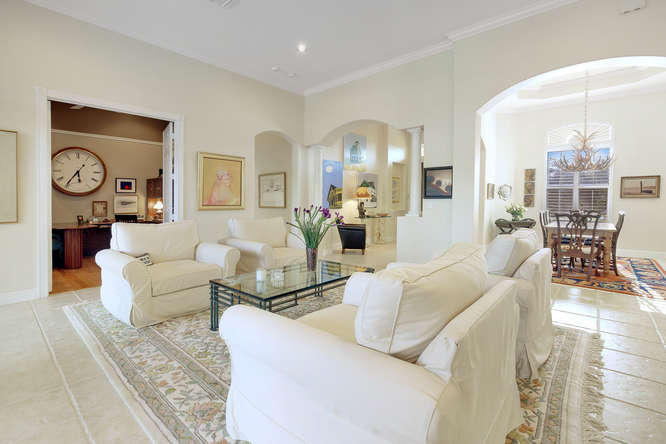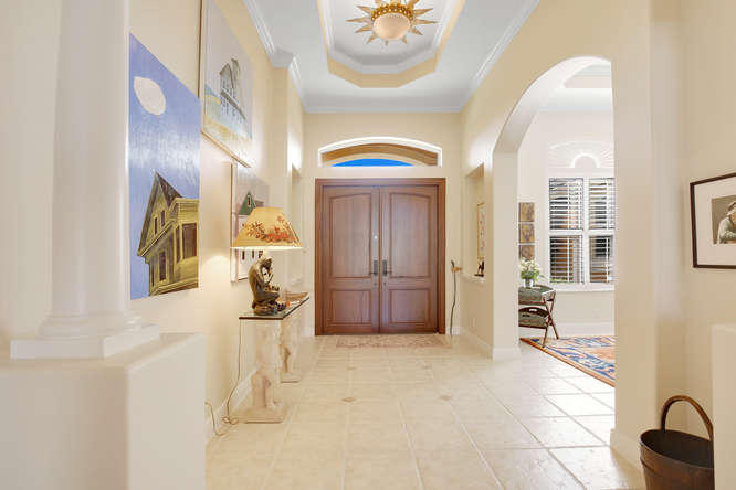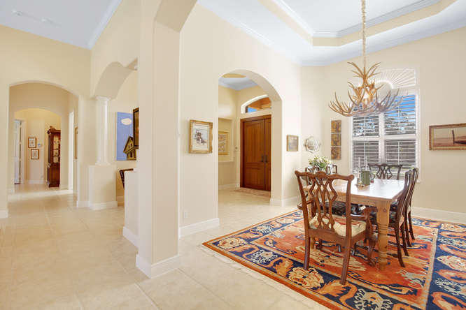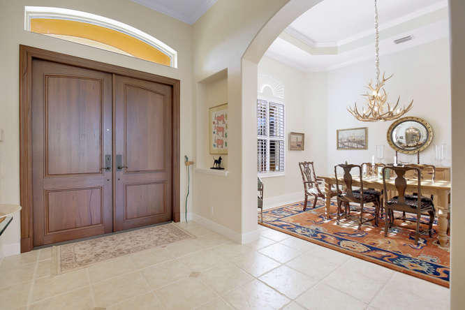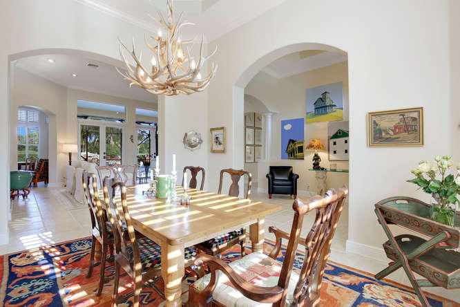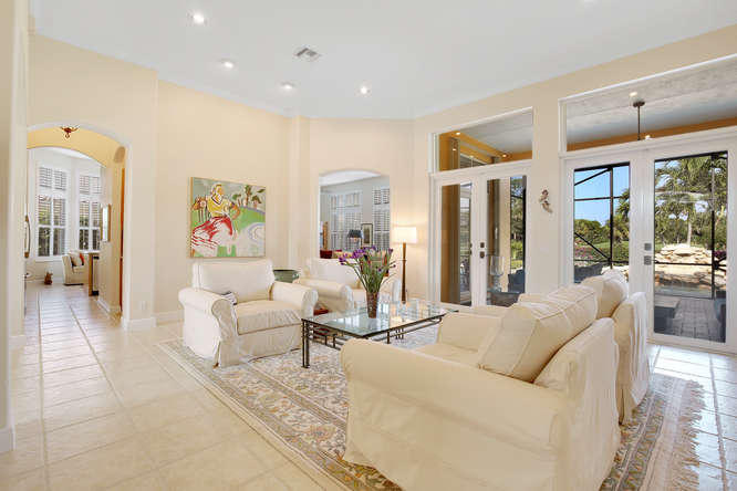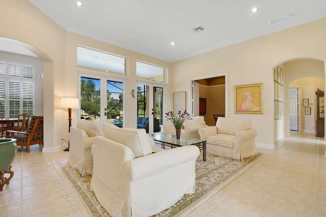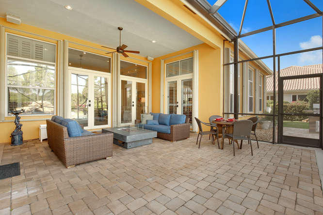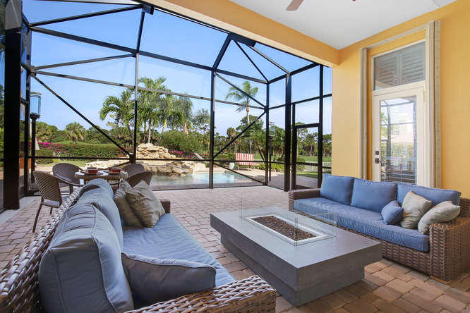 Welcome home to Ironhorse. Country club living at its best...with no equity membership required. Enter through custom double Brazilian cherry hardwood doors and gaze directly through French doors to your park-like setting overlooking the prestigious Arthur Hills golf course with no other homes in sight. Its your own private oasis. Enjoy lounging by the pool in your screened-in lanai with built in fire table for those chilly winter nights. Your home is protected by sliding hurricane shutters on all doors and windows as well as a whole-house generator that is powered by a buried propane tank. Your custom home is complete with plantation shutters throughout as well as hardwood and tile floors. No detail overlooked and ready for your personal touches.