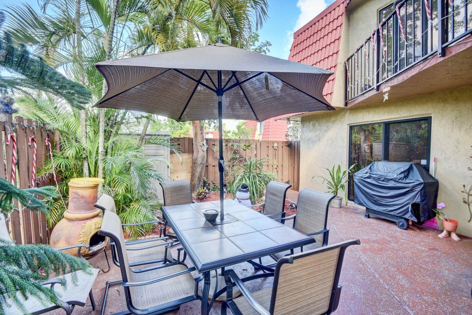 MOVE RIGHT IN TO THIS UPGRADED TOWN-HOME! ENTER PRIVATE FENCED PATIO GARDEN BACKING UP TO TOTAL TREE LINED PRIVACY, INCLUDING PALM TREES. WITH DIAGONAL 20 INCH CERAMIC TILE IN ALL LIVING AREAS! KITCHEN FEATURES GRANITE COUNTER TOPS WITH UNDER COUNTER LIGHTING, RAISED WOOD CABINETS, AND PANTRY. ALL 1 YEAR NEW FRIGIDAIRE STAINLESS STEEL APPLIANCES! SPACIOUS 1/2 BATH DOWNSTAIRS WITH SAMSUNG WASHER AND DRYER BEHIND LOUVER DOORS. ALL POPCORN CEILINGS HAVE BEEN REMOVED ON BOTH FLOORS. 2ND FLOOR CARPETING 1 YEAR NEW. INSIDE/OUTSIDE AC UNITS 2 YEARS NEW. KITCHEN REMODEL 5 YEARS NEW. BRIGHT, BEAUTIFUL, LIGHTING THROUGHOUT. BOTH UPSTAIRS BATHROOMS HAVE NEWER CABINETRY, TILE, AS WELL AS HIGH HAT LIGHTING. CLOSE TO SCHOOLS, SHOPPING, TURNPIKE, RESTAURANTS AND SO MUCH MORE!
