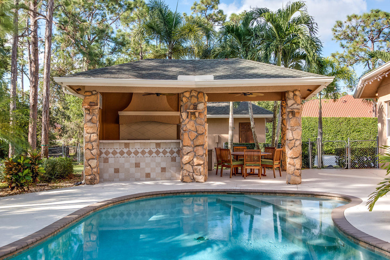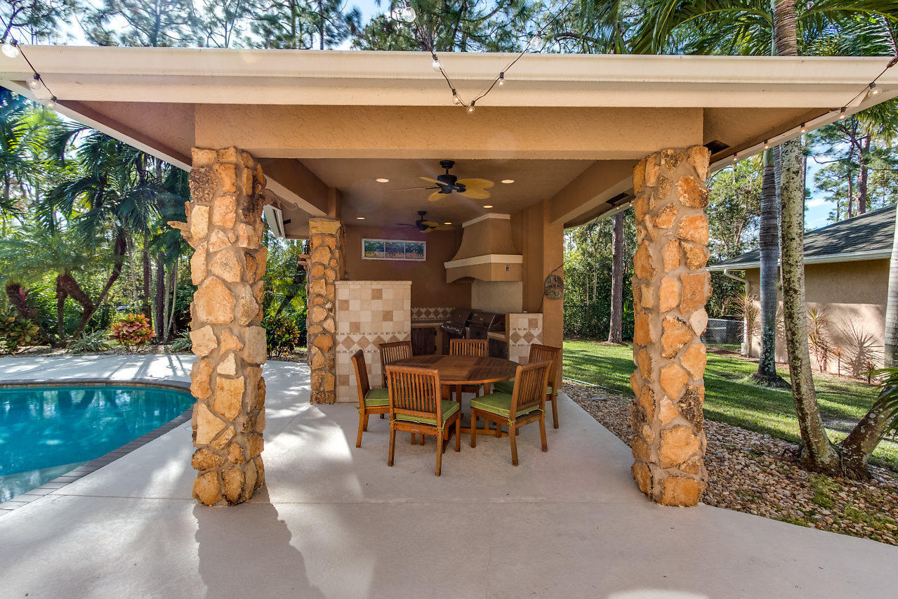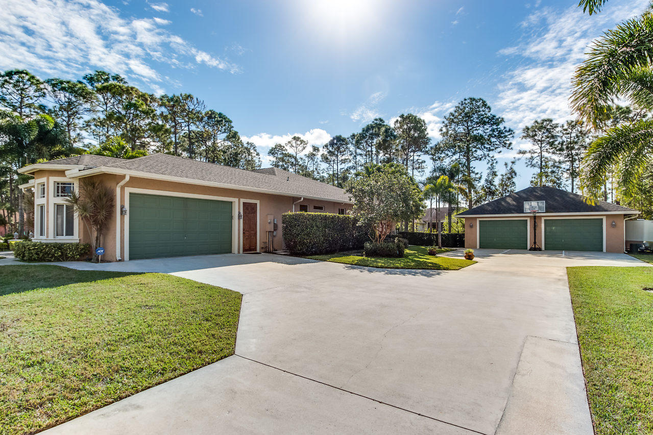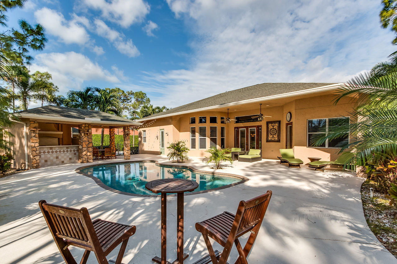 This is the one you've been looking for. Custom built in 2003 by prior owner/builder. CBS, 4 bedroom, 3 bath, 2 car-garage main house + detached 1,050 sq ft extra garage! Travertine floors laid in french pattern + hardwood floors in bedrooms. Split bedroom plan. Kitchen has 42'' maple cabinets w/ glazing, glass accents, under cabinet lighting, granite, double ovens & large pantry. Amazing laundry room + sink w/ versatile built-ins; could be used as a 2nd office or craft room! Crown molding & custom closets! Custom pool w/ huge stacked stone accented outdoor kitchen w/ covered lanai's. This is the perfect entertaining house! Completely sodded & irrigated yard! Front yard decorator landscape lighting. Two deep wells...no rust! Reverse Osmosis drinking water system. You will be wowed!