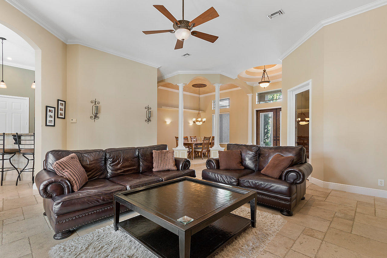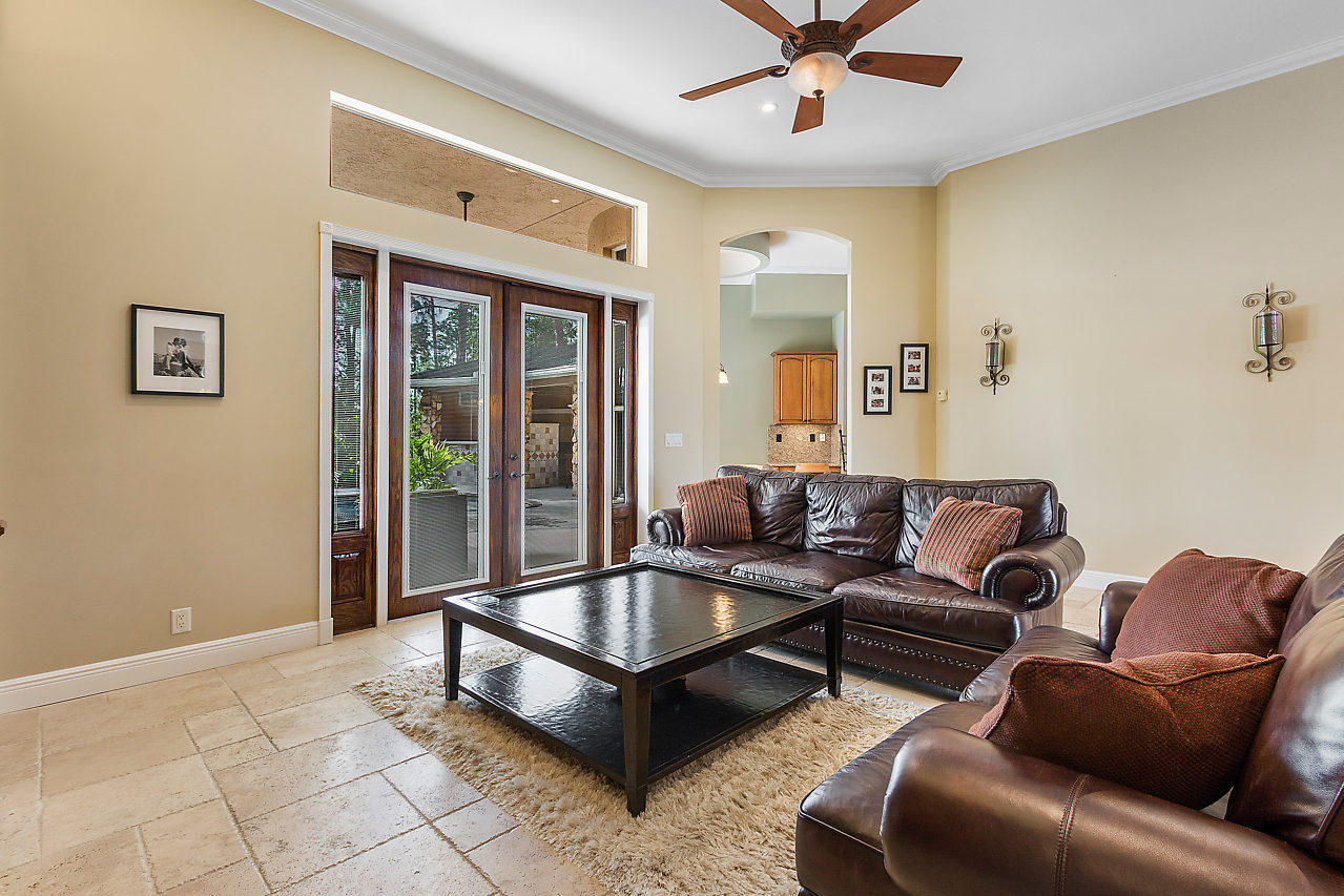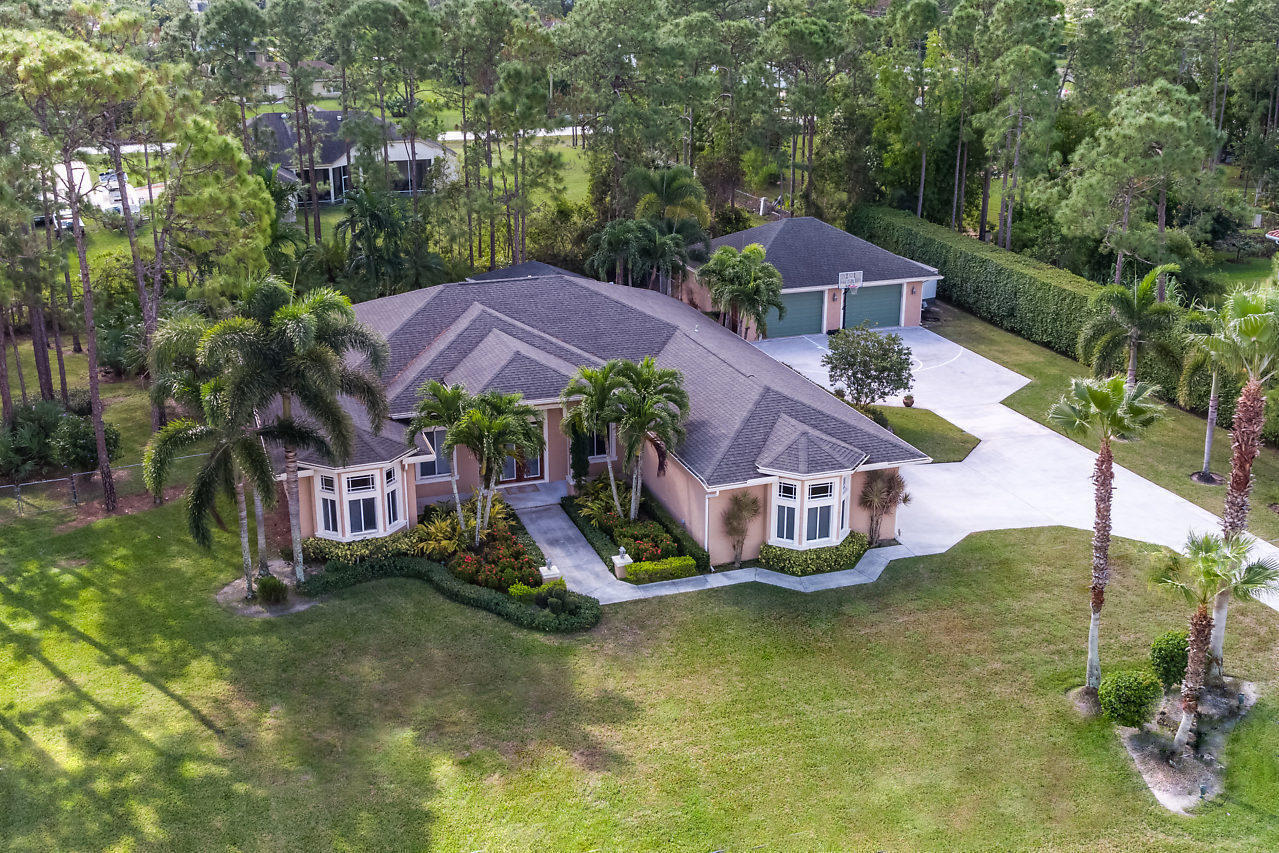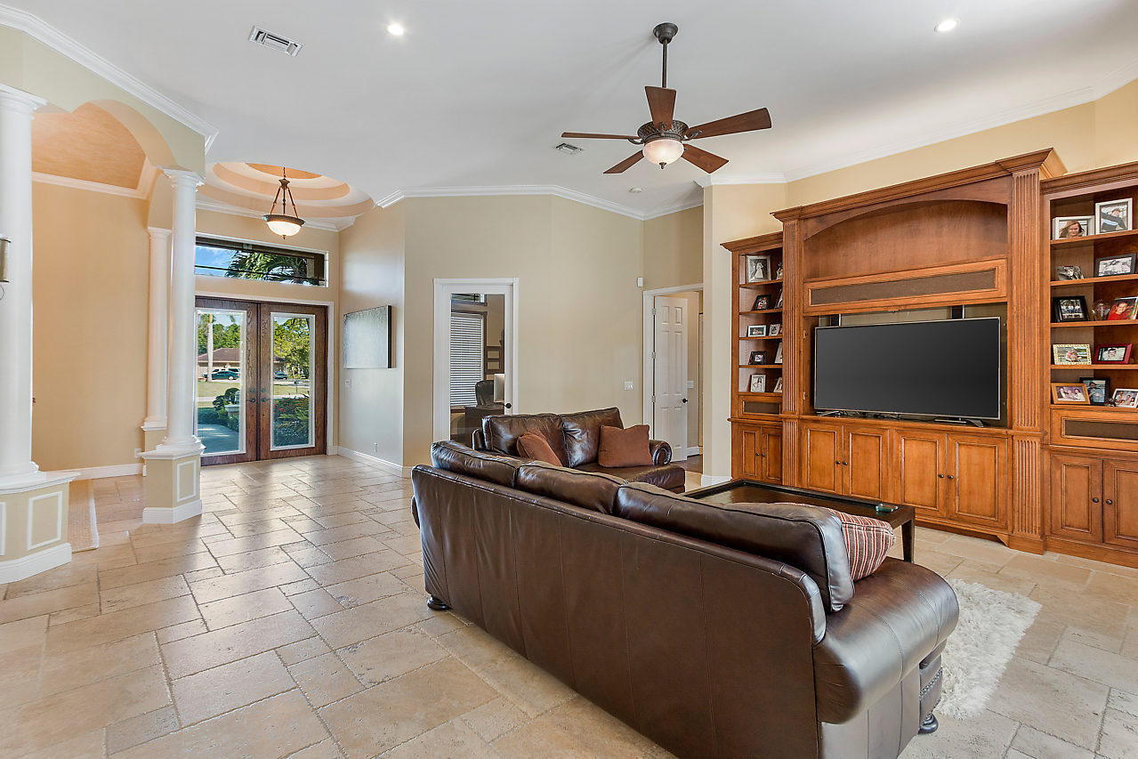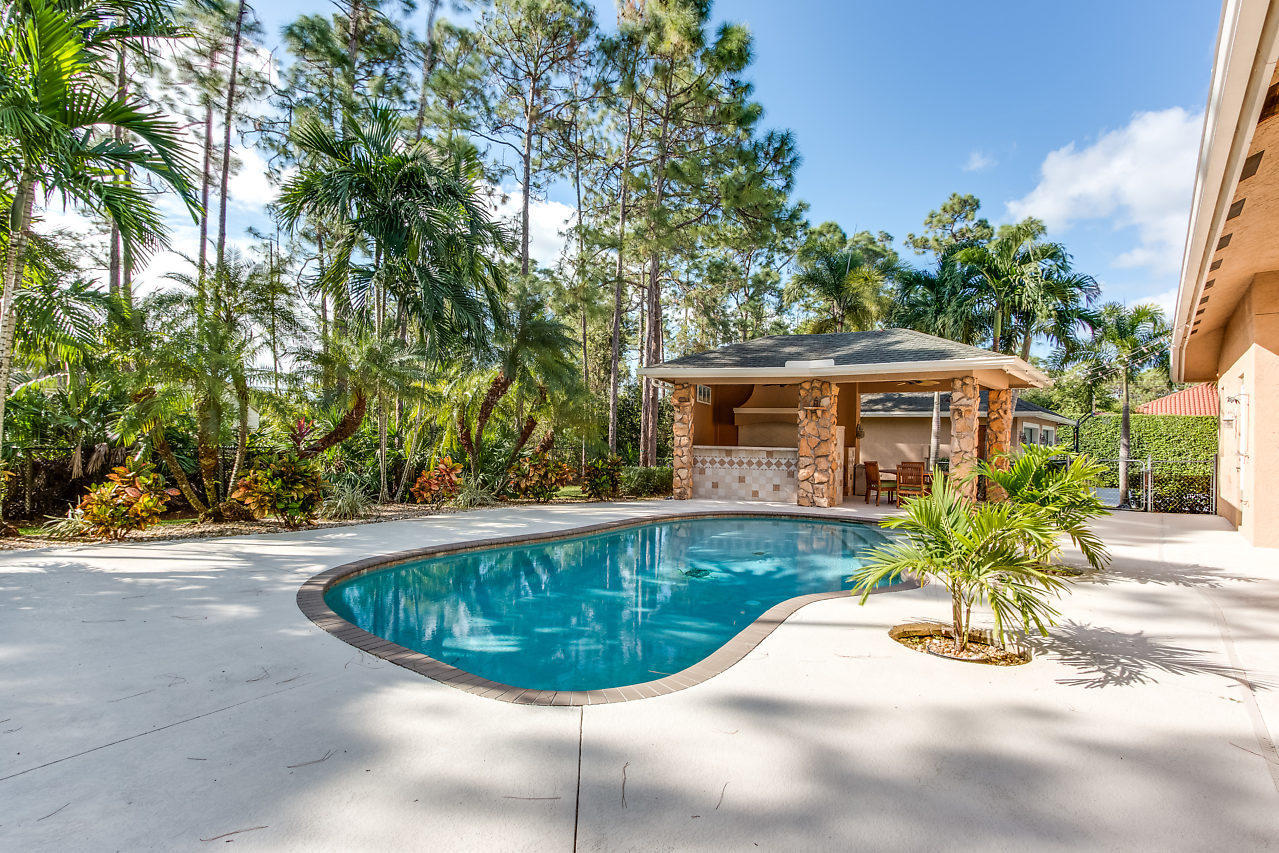 This is the one you've been looking for. Custom built in 2003 by prior owner/builder. CBS, 4 bedroom, 3 bath, 2 car-garage main house + detached 1,050 sq ft extra garage! Travertine floors laid in french pattern + hardwood floors in bedrooms. Split bedroom plan. Kitchen has 42'' maple cabinets w/ glazing, glass accents, under cabinet lighting, granite, double ovens & large pantry. Amazing laundry room + sink w/ versatile built-ins; could be used as a 2nd office or craft room! Crown molding & custom closets! Custom pool w/ huge stacked stone accented outdoor kitchen w/ covered lanai's. This is the perfect entertaining house! Completely sodded & irrigated yard! Front yard decorator landscape lighting. Two deep wells...no rust! Reverse Osmosis drinking water system. You will be wowed!