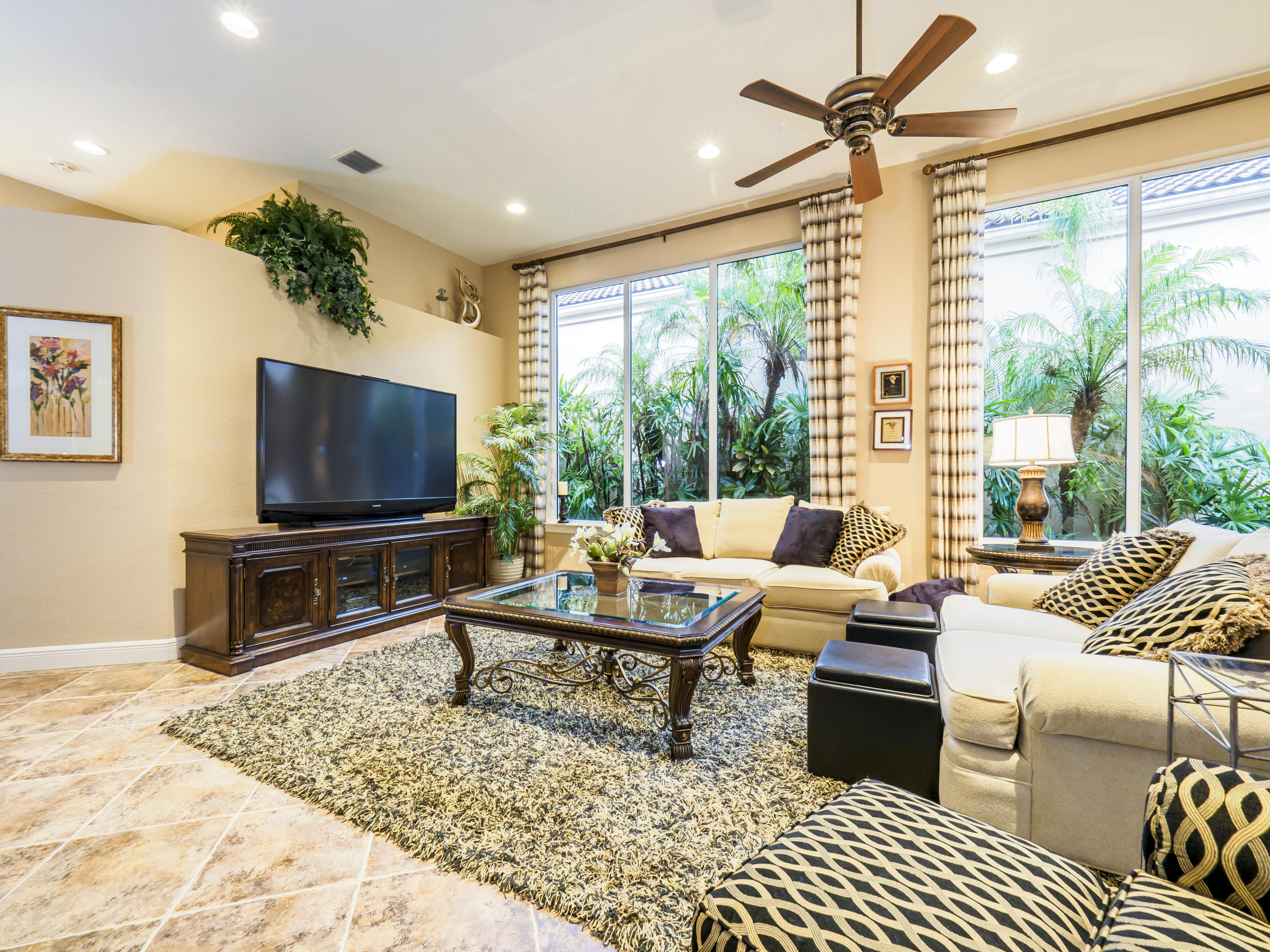 Everything in this FURNISHED house has been redone! New floors! New kitchen!N New baths!2017 AC, 2017 water heater! Impact Glass!2017 grill in summer kitchen!Bring your toothbrush and enjoy the best of Ibis with lush green views of the Heritage Course,water filtration system, Sit in the screened salt water pool and spa area under the electric awning and marvel at the breathtaking Florida sunsets. There is a Jandy remote for the pool and spa. The layout has been modified into a true great room home with a custom expanded kitchen with island. Custom honey-toned cabinetry, self-closing drawers, handsome granite, and upgraded Jenn Air appliances. All bathrooms boast granite and upgraded tile. The master bathroom is spectacular with an enormous two-person frameless shower. LED lights in & out.
