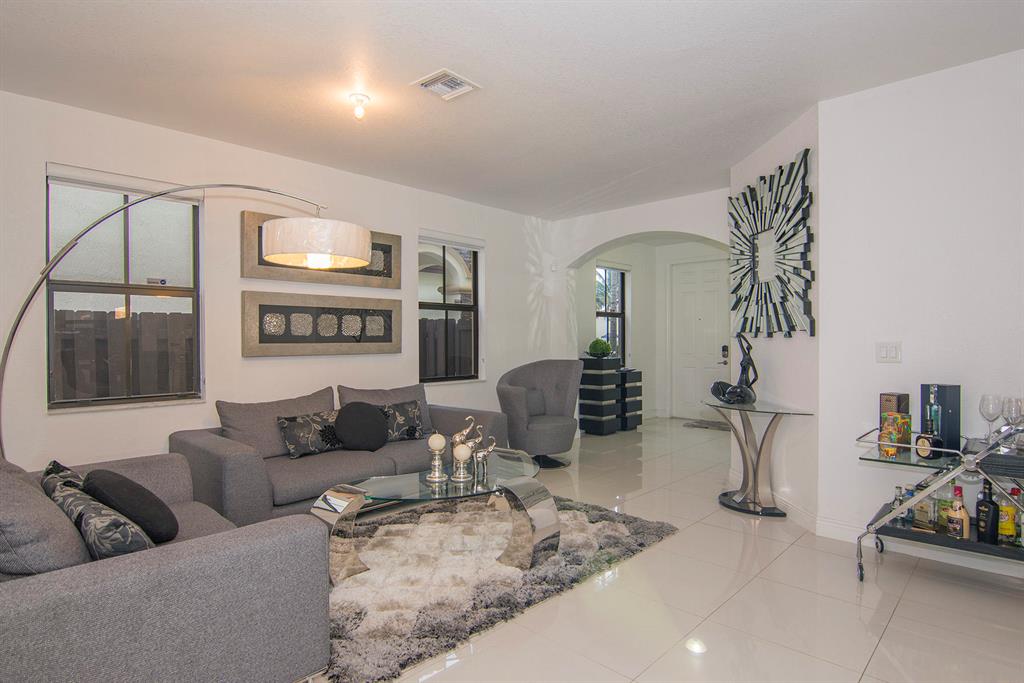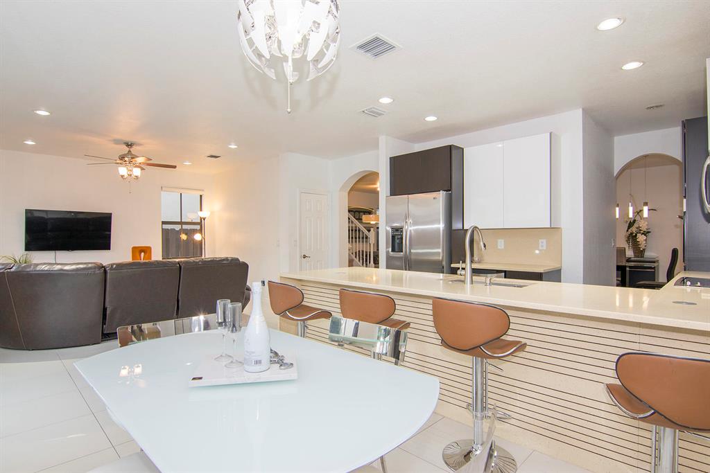 Get ready to fall in LOVE! This Wellington model with 5 beds/4.5 baths is like NO OTHER! With brand new, sparkling, porcelain tile flooring, a completely renovated kitchen with European style cabinetry & cascading quartz countertops, custom, white vanities in the master bath, & a guest bath that can only be found magazines, why would you look any further? Space & natural light, & a peaceful & private back patio are just added bonuses. The home has a Mediterranean style elevation with stone accents & faces the largest lake with fountain in the Executive community. Sidewalks for jogging & biking, pergolas with benches to take in the serene lake views are just in your front yard! Great impact windows! *$2000 CREDIT* towards any new upstairs flooring using sellers preferred vendor. SEE NOW!