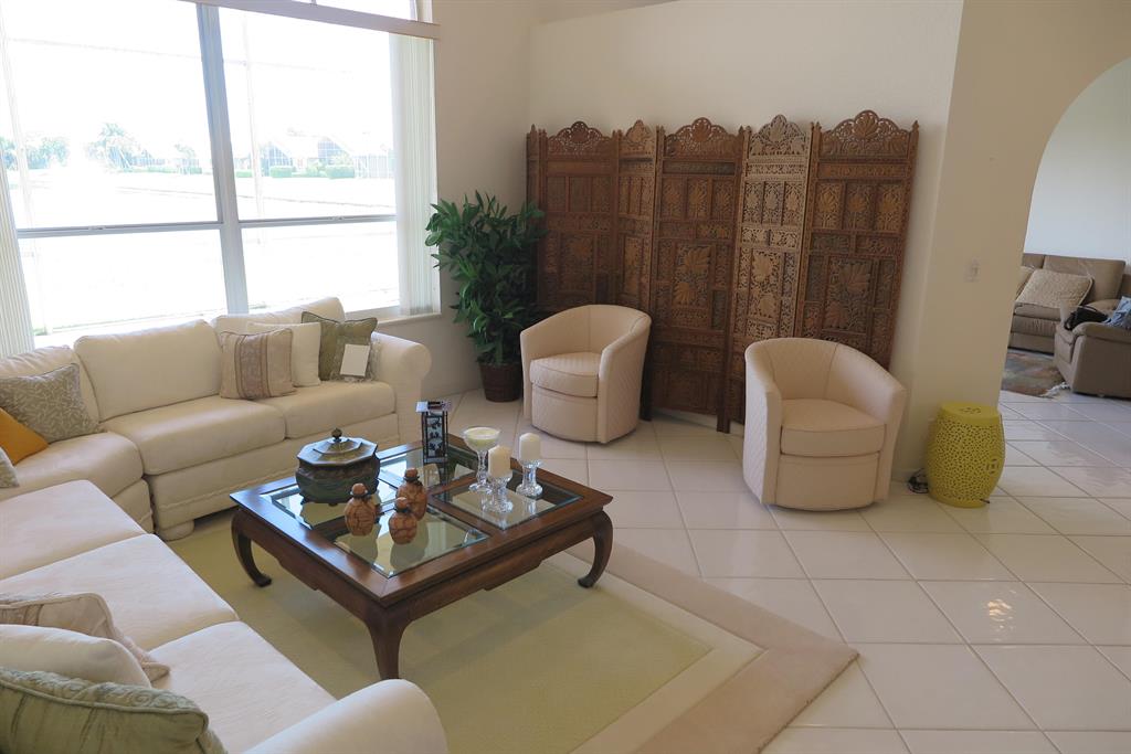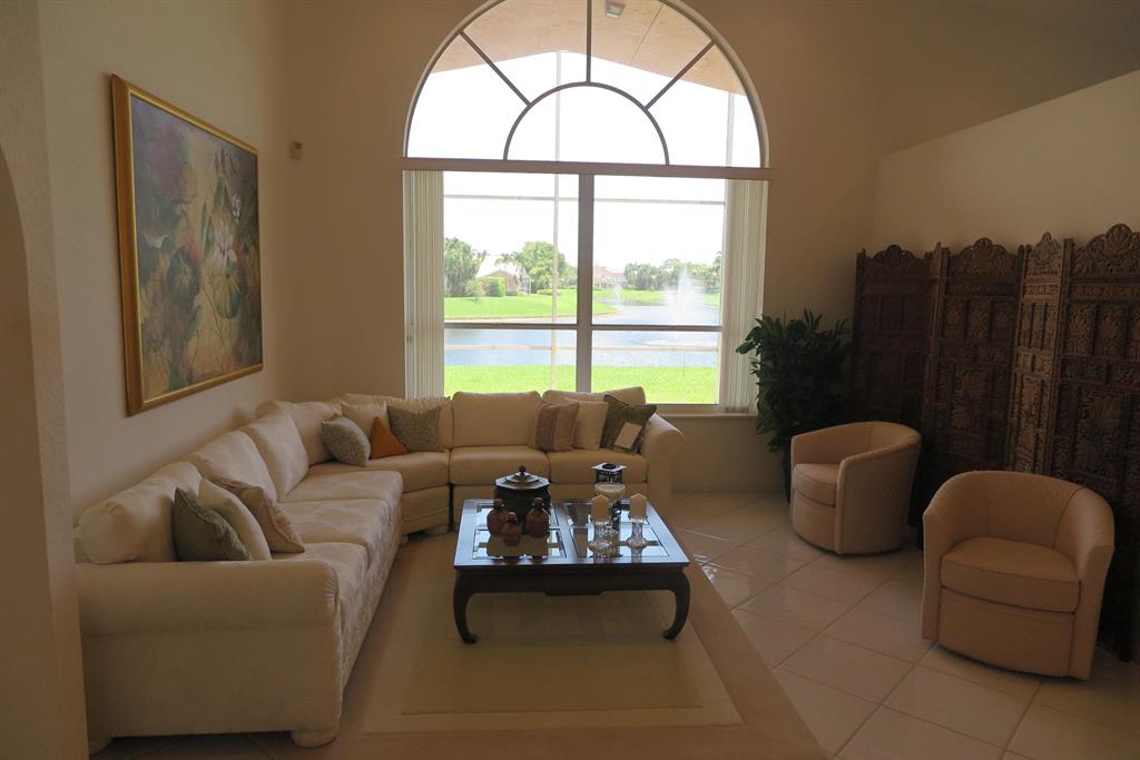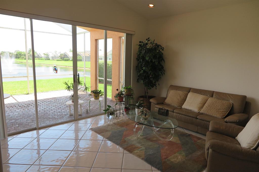 Spectacular lake views from this one story 3 bedroom 2.5 bath single family home. Popular floor plan features split bedrooms, large family room and living room, foyer and kitchen with breakfast area. Roof replaced! Large white tile throughout living areas. Accordion hurricane shutters. Extra large screened in patio. A/C replaced. Don't miss this one! Membership optional