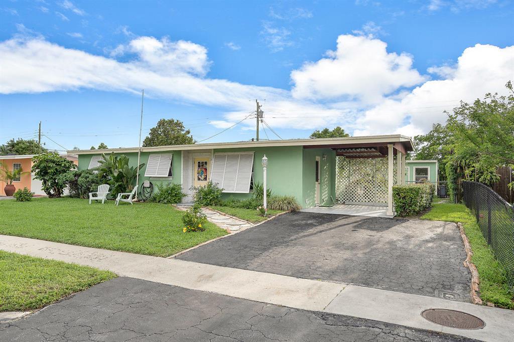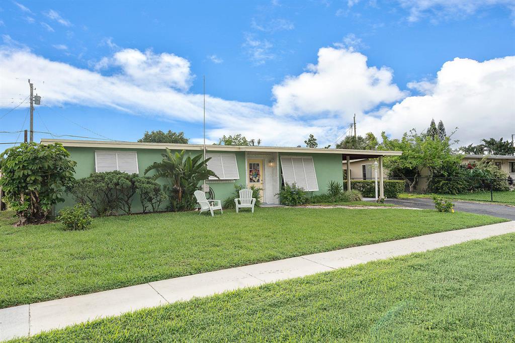 Move in Ready! Meticulously clean and well maintained single family home with carport in a non- HOA community. This split bedroom plan offers 4 bedrooms, two bathrooms, jacuzzi tub, tile & wood laminate flooring, crown molding, baseboards, wood blinds, a formal living room, spacious family room with dining area, an open updated kitchen with ample wood cabinets & counter space & large laundry room. Natural gas stove and water heater. Large fenced in back yard with room for a pool. Separate workshop area/shed. New A/C (2011) and New Roof (2010). Convenient to schools, restaurants, major roadways, shopping & Okeeheelee Park. This charming house is perfect for first time home buyer, pets and RV's welcome! WON'T LAST, BRING YOUR OFFERS.