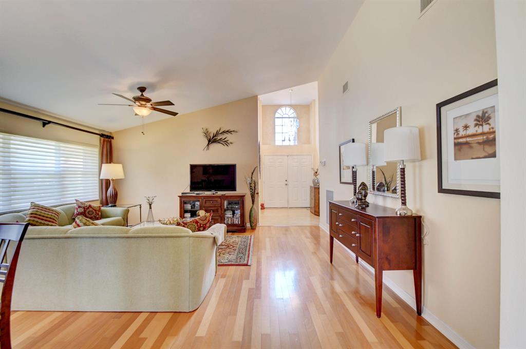 Beautiful 2 bedroom 2 bath villa with upgrades throughout! This gorgeous home has no detailed spared. The bright and airy home features vaulted ceilings, wood and tile flooring and neutral color paint throughout. The kitchen features silestone counters and stainless steel appliances and has a pass through to the back family room/eat in area. The spacious master features his and hers closets and an en suite bath with dual vanities and large shower. Great west Boca location close to shopping, dining and the turnpike. Do not miss out on this beautiful home!