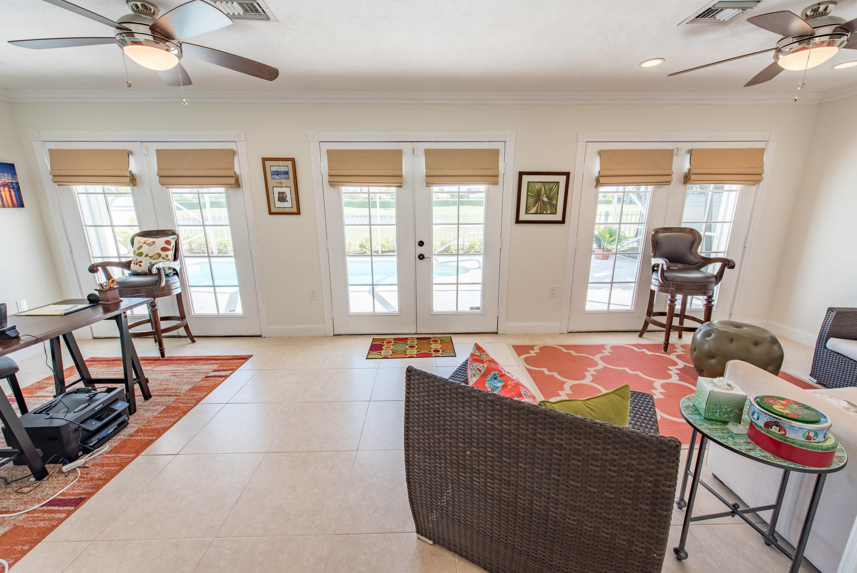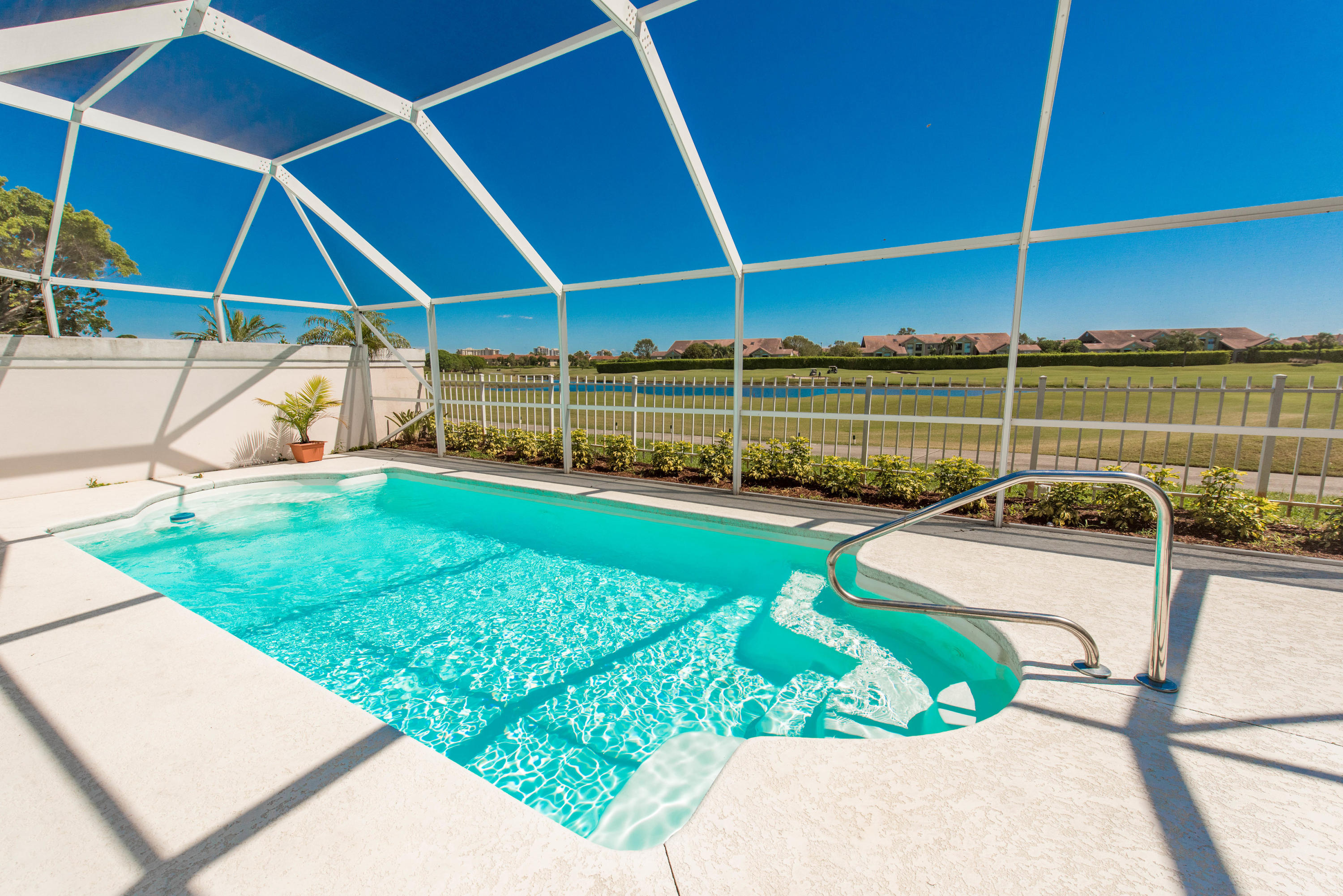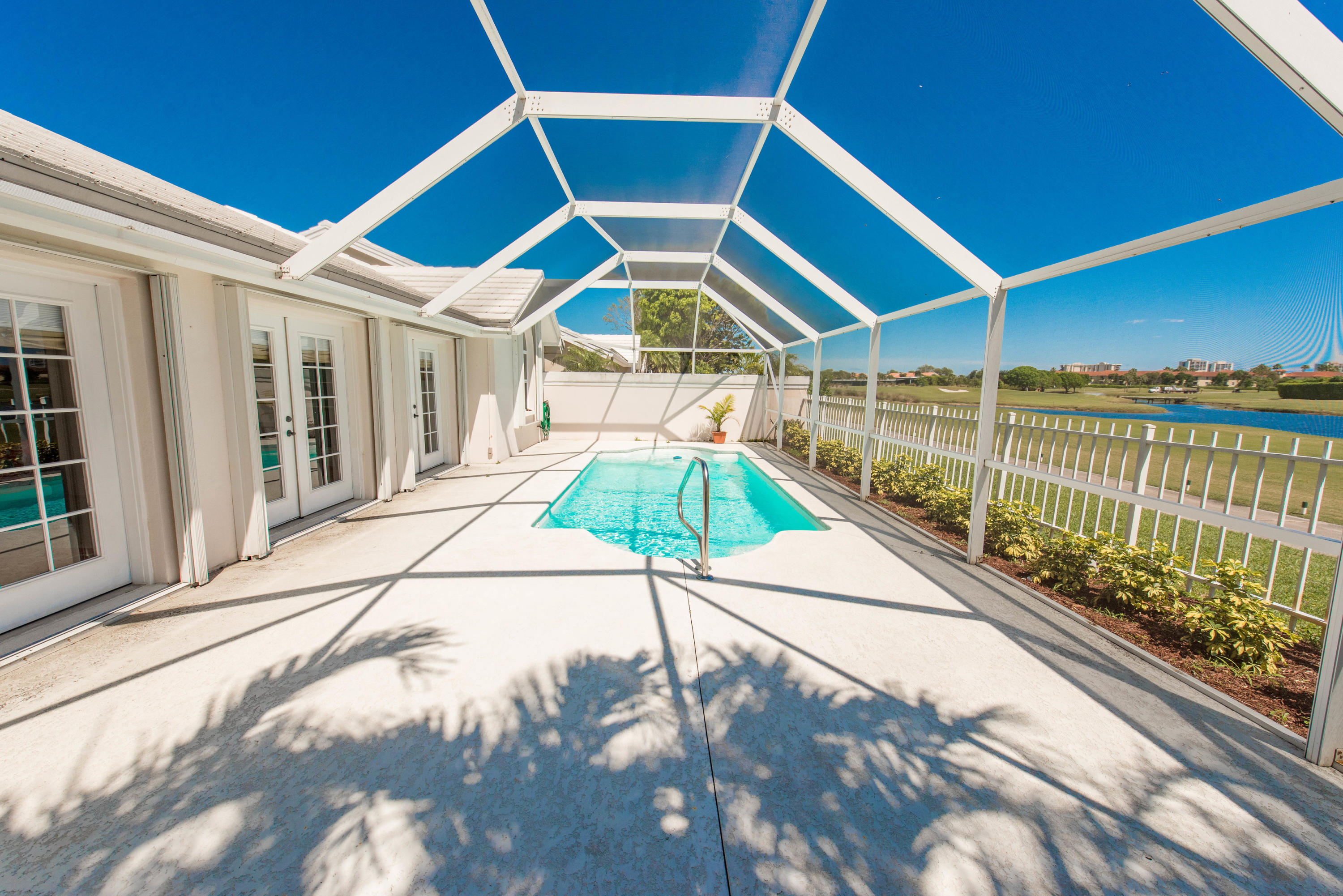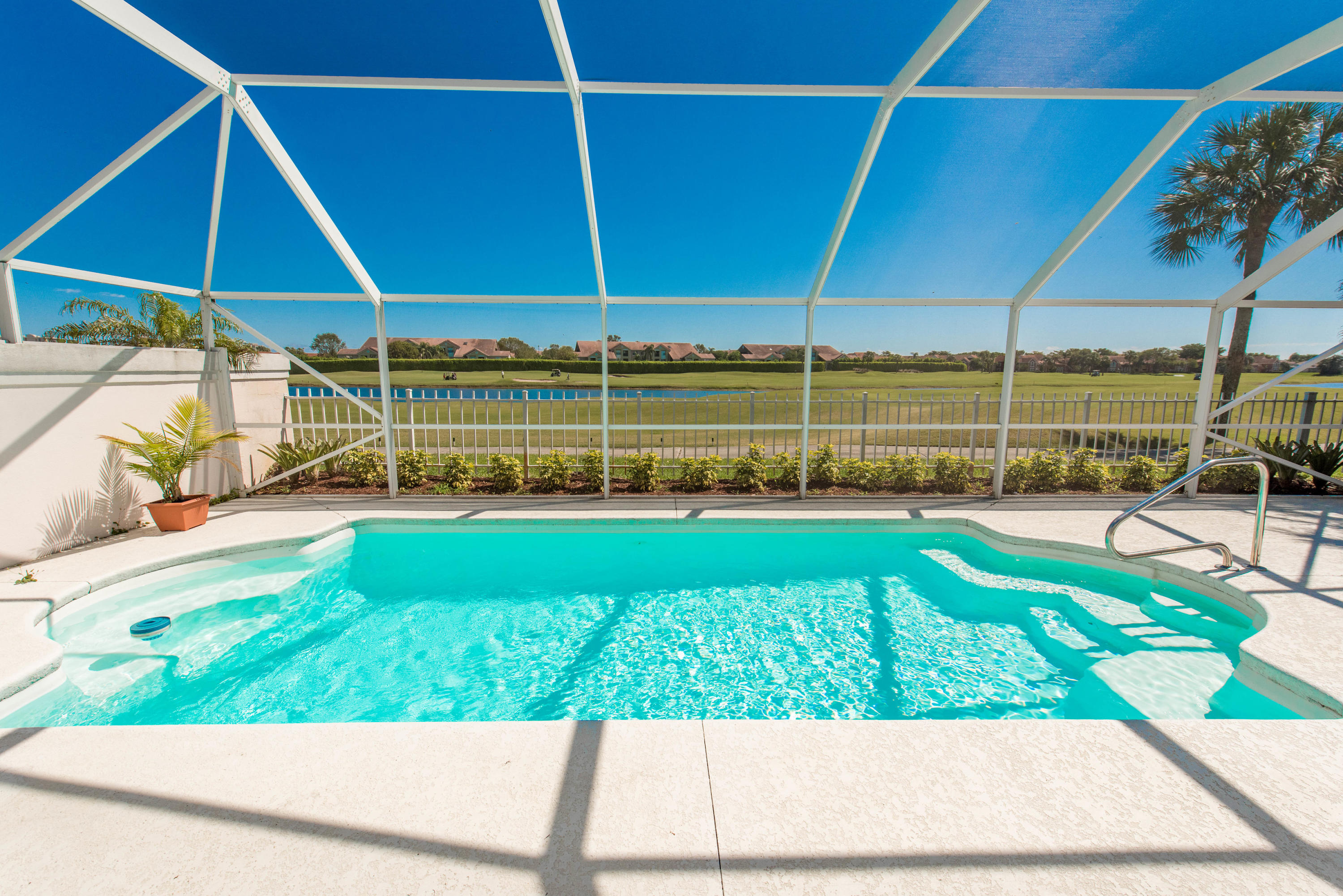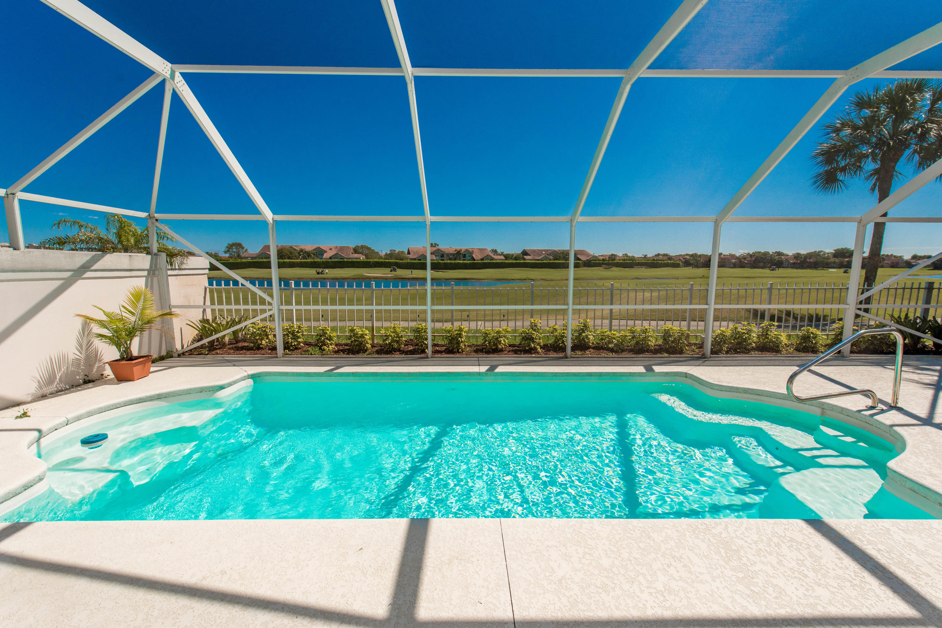 ONE of the BEST LOTS in BEAR ISLAND with LAKE VIEWS AND ON THE GOLF COURSE! BEAUTIFUL home with new roof as of 2014, some new appliances (2016), air condition (2016) pool filter (2016)! Updated bathrooms! Modular-Elfa container closet in Master bedroom. All new light fixtures. Beverage fridge in the kitchen. Hurricane impact garage door and hurricane shutters for the whole house! You also get access to The Villages community amenities: three pools, softball fields, lighted tennis courts, racquetball courts, basketball courts, sand volleyball courts, playgrounds, jogging trail, picnic areas, tables, charcoal grills AND NEW DOG PARK! Close to I-95, Airport, Downtown and CityPlace and Palm Beach! This house won't last long so make an appointment to see it today!