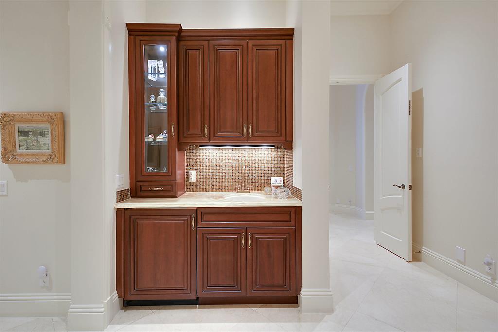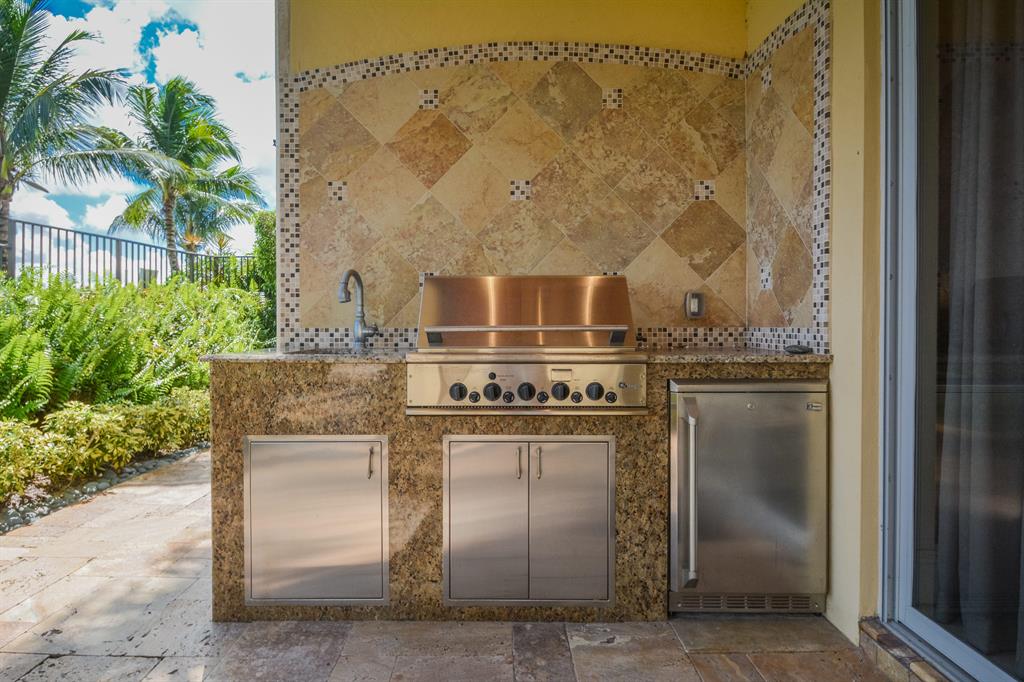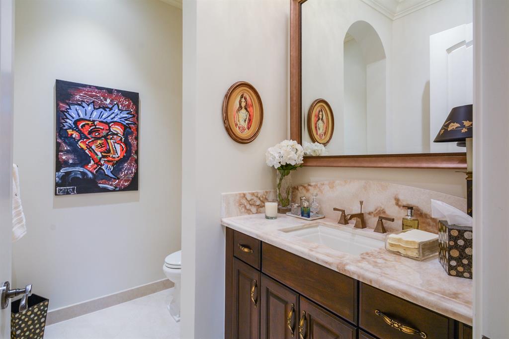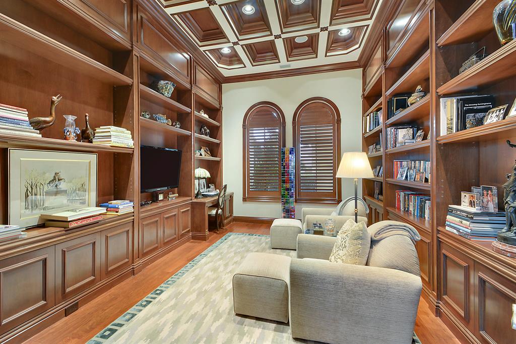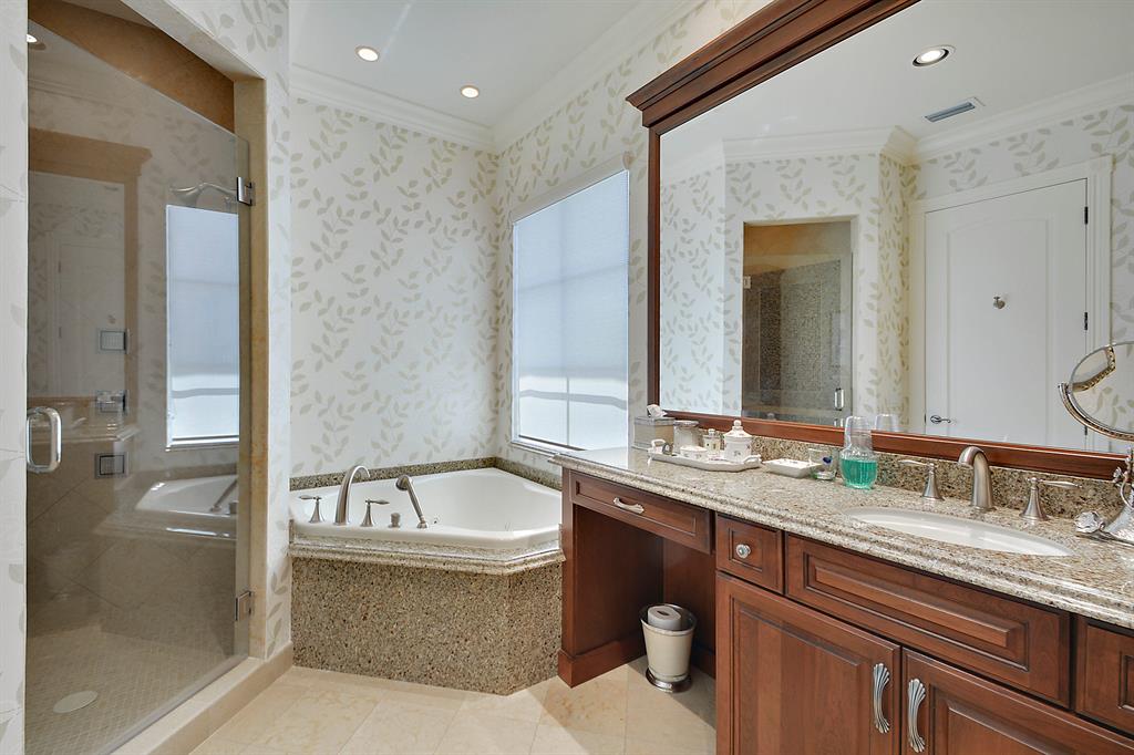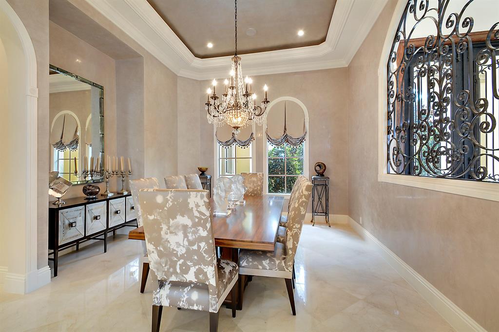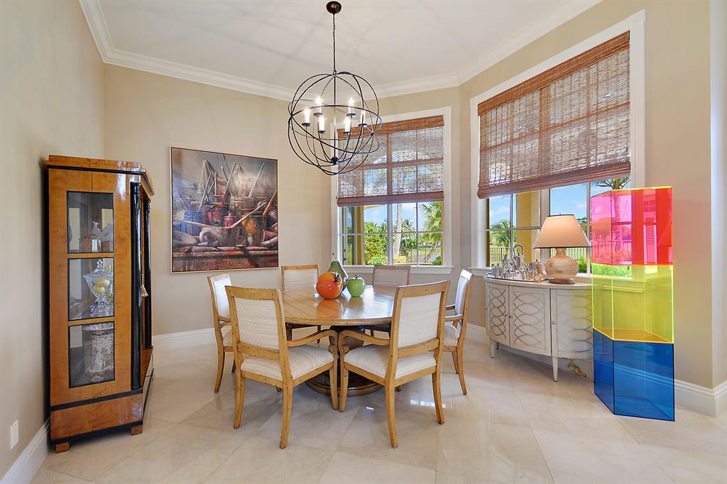 The epitome of sophistication and elegance, this beautiful classic Palm Beach inspired estate features a formal living room, dining room and gourmet chef's kitchen, breakfast room and large family room all designed for effortless entertaining or casual living. The master wing includes a grand master suite with luxurious his and her marble baths, generous closets and customized wood paneled library. An additional guest suite is located on main floor. Four en suite guest bedrooms, a home theatre and loft area, and additional laundry are on the second floor. An outdoor entertainment area is lushly landscaped with breathtaking panoramic golf course vistas and features a resort style pool, covered loggia and summer kitchen. Other amenities include hurricane resistant windows and doors,