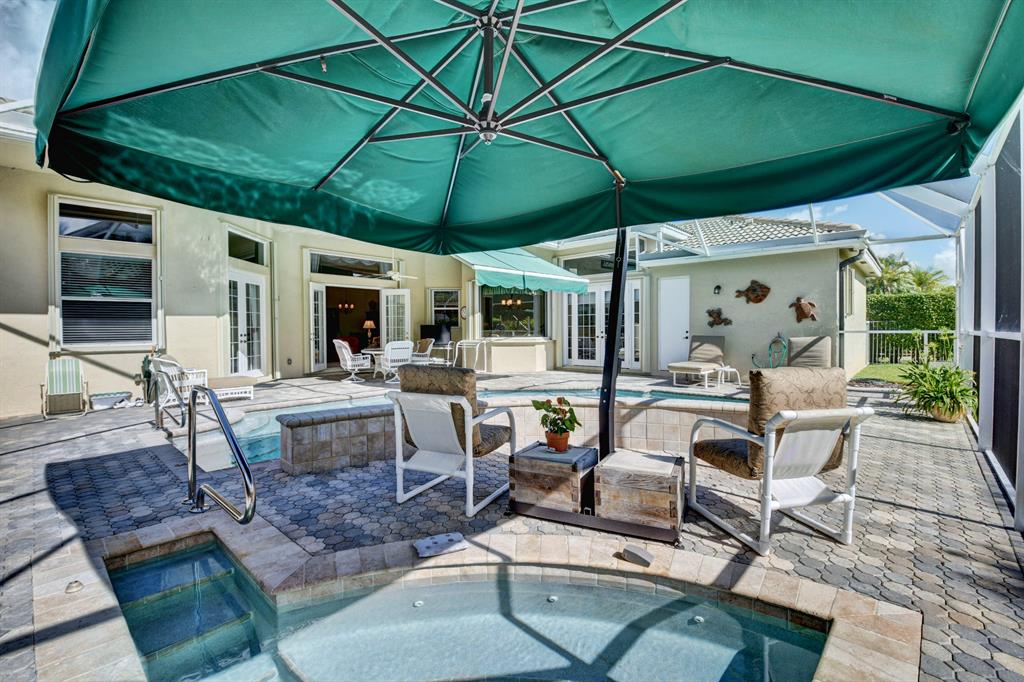 Great Boca Location! A Hidden Gem, this Private Guard Gated Enclave of only 84 homes is conveniently located close to abundant dining, shopping, schools and hospital. This beautiful 5 bedroom, 3 bath, 3 car garage, 1 level home with triple split floor plan and amazing screened pool/spa/patio with huge private lushly landscaped yard is perfect for entertaining family and friends. Meticulously maintained, this home boasts soaring tray ceilings, large master retreat, french doors, complete accordion shutters, newer a/c & h/w, generator with 240 elec, LED lighting and much more! Your private paradise awaits, come and see for yourself!