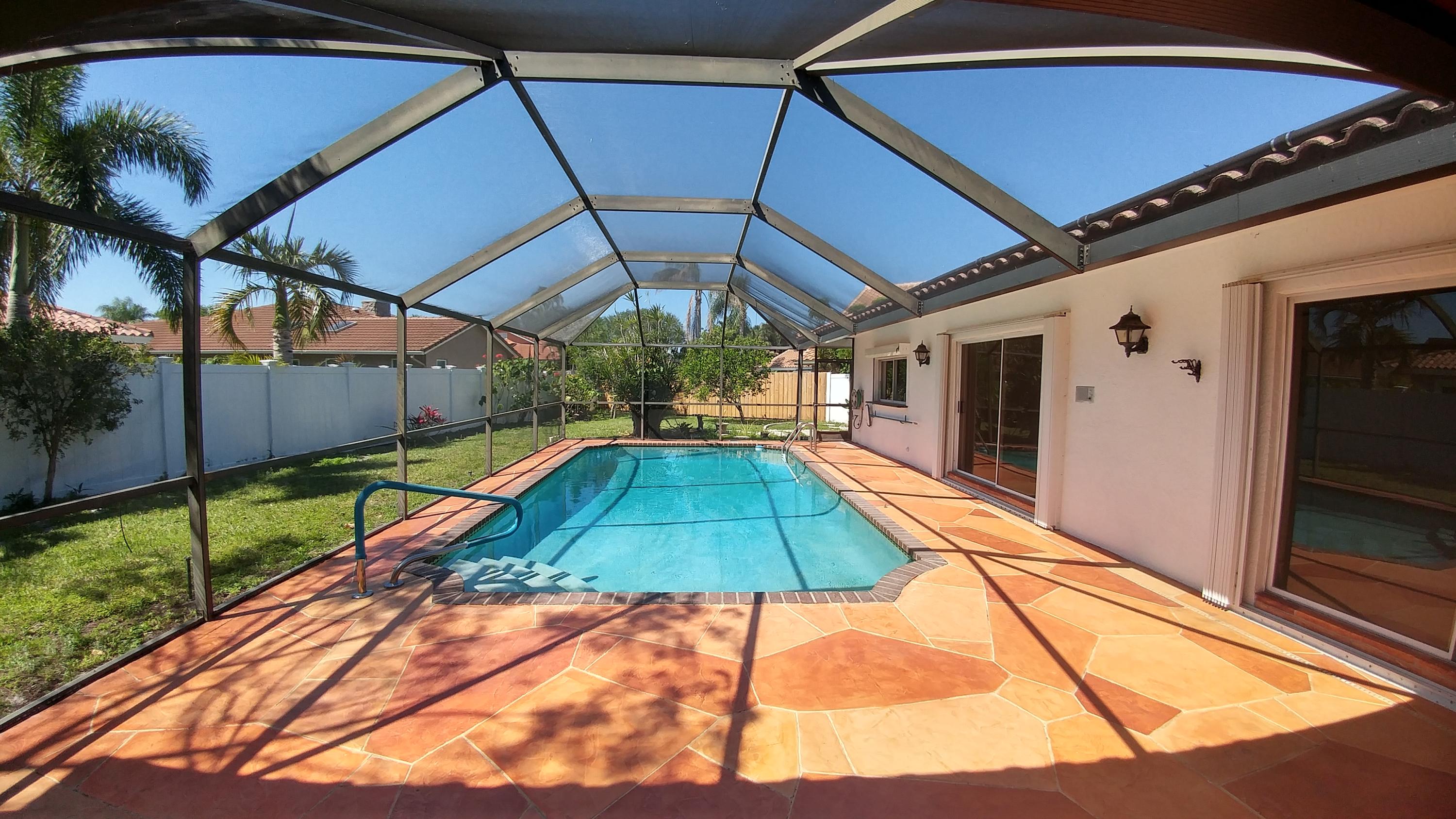 OPPORTUNITY KNOCKS! Great 4 Bedroom / 2.5 Bath Single Family to update & make your own! Sought after Central Boca location with TOP Rated Schools. Double-door entry into HUGE 34' x 16' Living Area overlooking Screened-in Pool/Patio deck. Light & Bright! Heated Pool....2-Car Garage...Hurricane Shutters...Fenced-in Yard...Corner lot...Cul-de-Sac...Eat-in Kitchen w/Pass-thru to Patio...Oak Wood Cabinets/Granite...Newer Appliances...Newer Water Heater...Newer A/C....Master Walk-in Tub & Cabana Bath...Split Bedroom Plan...NEW ROOF in the works! Located in quaint community of THE GREENS/Boca del Mar...Low HOA (incl Cable)...Pet Friendly! Rent Annually Immediately! Convenient Central Boca, close to restaurants, shopping, worship, I-95 & Turnpike. GREAT potential!