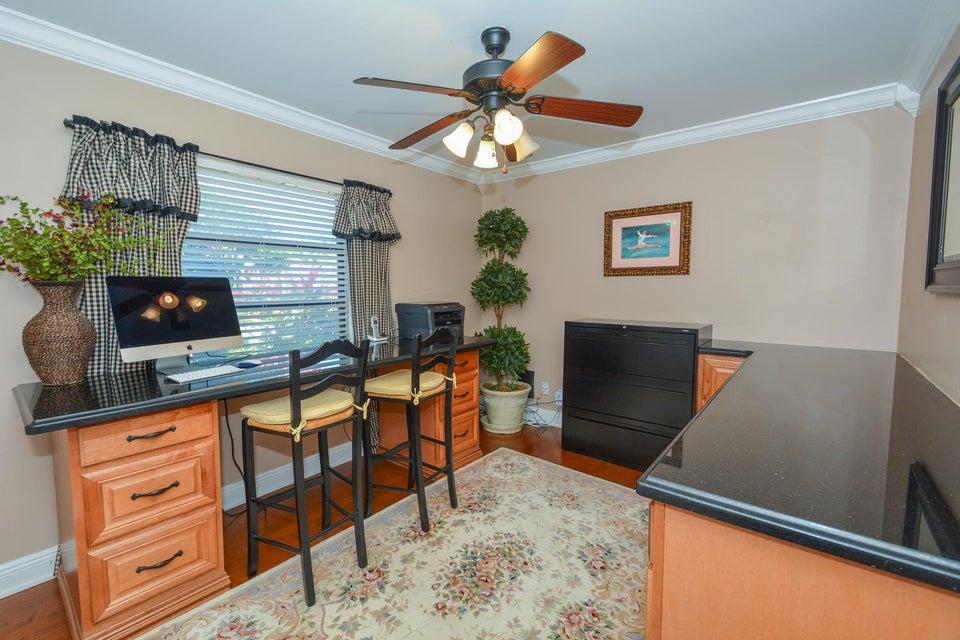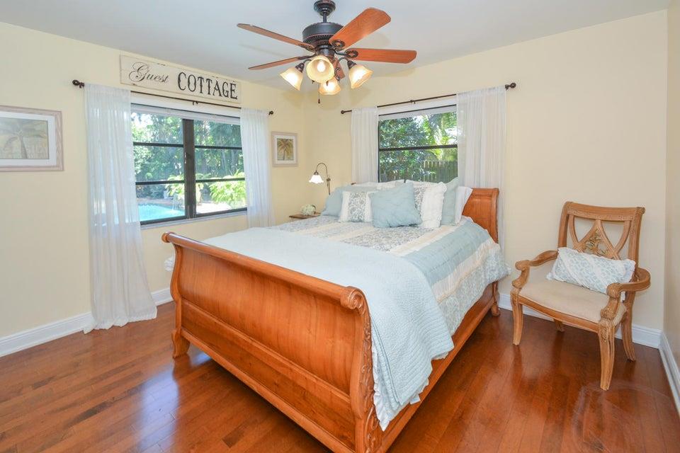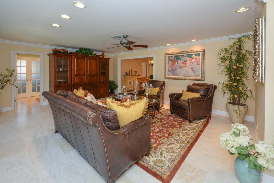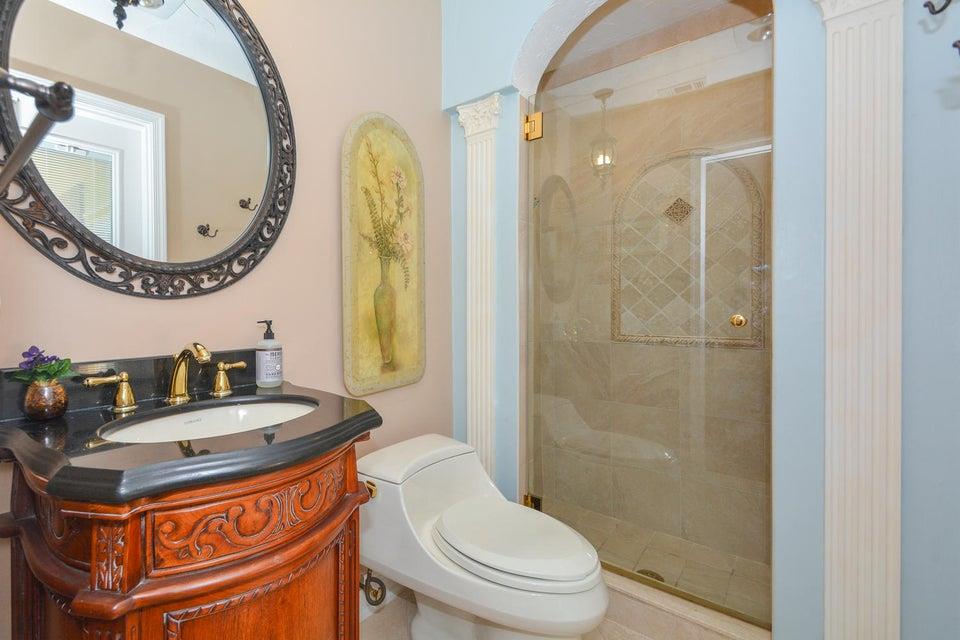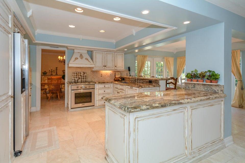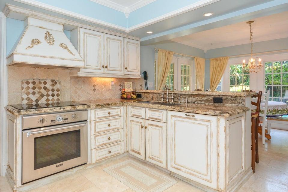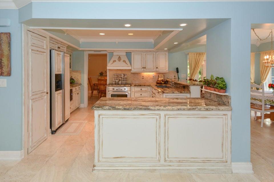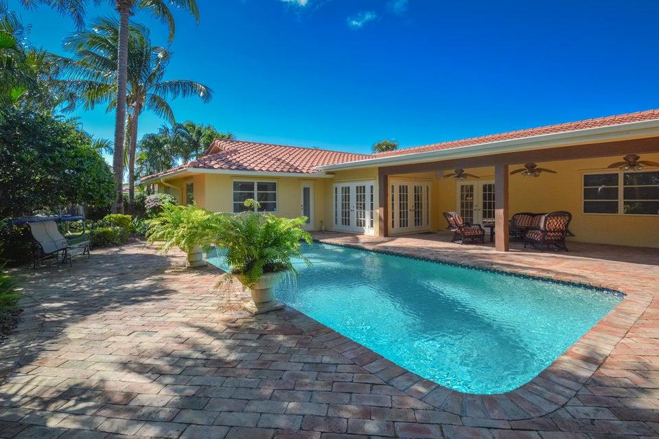 Beautiful Carriage Hill home on a quiet street amongst multi-million dollar properties. This home features 5 bedrooms, 3 baths with a split floor plan, marble and hardwood flooring, plantation shutters & outfitted closets. The French County kitchen offers a breakfast bar, granite counters and stainless steel appliances. The Master bedroom has an adjoining office or nursery. Master bath has dual sinks, marble counters & rain shower. Large open living spaces with crown molding and smooth ceilings. Guest bedroom with ensuite bathroom and door leading to pool. Private yard is fenced, professionally designed with tropical lush landscape and pavers on southern exposure pool deck. Additional storage available on the exterior of home. A rated schools.