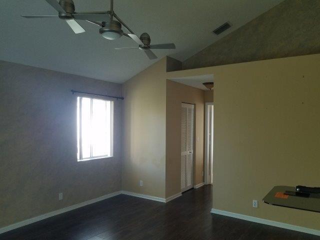 Wonderful opportunity to move into this 2 story, modern home located in the beautiful community of Eagle Trace. Situated on an over-sized lot with the Master bedroom on the first floor and three bedrooms upstairs. Large kitchen with granite counters, mix of hardwood, tile, and carpeting, and a screened-in patio in the rear, accordion shutters throughout. Georgetown HOA includes lawn care and community pool and NO mandatory memberships for golf or tennis. Property is being sold through an online auction event, contact Listing Agent for details.