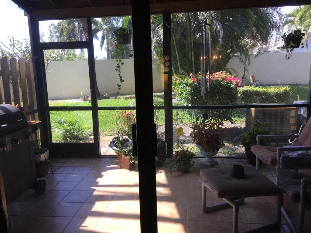 Great East Boca Townhouse, with a 1 car garage. A hop and a skip to Beaches, highways, downtown as well as fabulous down town Delray.Large living room with enclosed porch, 2 master bedrooms and a 3rd floor loft perfect for home office or a 3rd bedroom. All rooms have beautiful Florida Pine open beam ceilings.5 acres of greenery and a beautiful pool area with hot tub.