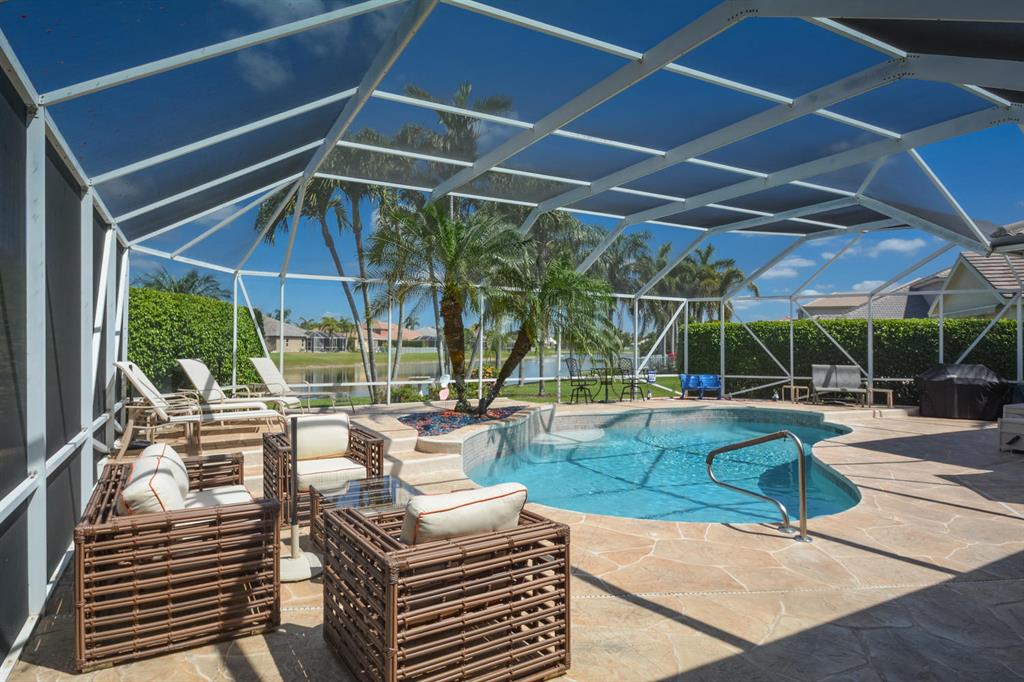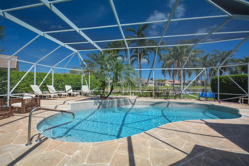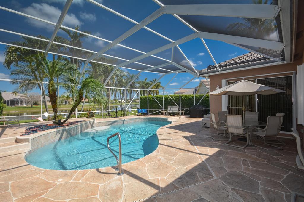 ONE OF THE LARGEST LOTS IN BOCA FALLS! TREMENDOUS CURB APPEAL WITH UPGRADED LANDSCAPING. DESIRABLE ONE STORY GALVESTON MODEL WITH SPLIT FLOOR PLAN. THIS WELL MAINTAINED HOME FEATURES NEUTRAL TILE THROUGHOUT LIVING AREAS & KITCHEN WITH LAMINATE FLOORING IN THE BEDROOMS-NO CARPET. LARGE KITCHEN WITH DOUBLE OVEN, NEWER DISHWASHER, STOVETOP AND GRANITE COUNTERTOPS WITH BREAKFAST BAR. MASTER BATHROOM HAS BEEN COMPLETELY RENOVATED WITH NEW TUB, TILE AND SEAMLESS GLASS SHOWER DOOR. BEAUTIFUL WATER VIEWS FROM THE LIVING AREAS & MASTER BEDROOM. THE POOL & PATIO FEATURES AN OVERSIZED SCREEN ENCLOSURE. THE POOL IS NEWLY REFINISHED & HAS A SOLAR POOL HEATER. THERE ARE ACCORDION HURRICANE SHUTTERS ON ALL WINDOWS. BOCA FALLS IS A MANNED GATED COMMUNITY WITH FABULOUS AMENITIES & NO EQUITY MEMBERSHIP
