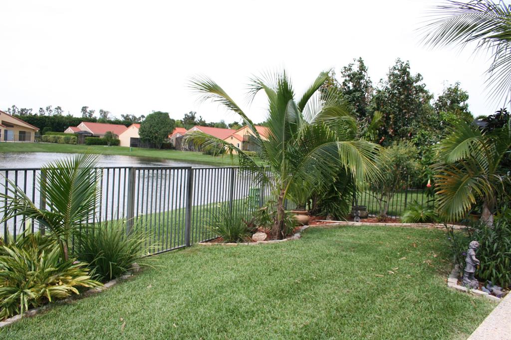 Fabulous non smoking 3/2, lushly landscaped with coconut palms, banana plants, bamboo, pineapple overlooking the lake, with sparkling pool, yard completely fenced with confined ''doggie'' area. New roof and A/C in 2014, 20 by 20 porcelain tile throughout, no carpet, split plan, large master with spacious walk in closet, high ceilings, all energy saving LED lights, eat in kitchen, laundry room and plenty of storage space in attic. Exterior of home was painted in 2018. Washer/Dryer not included in sale.
