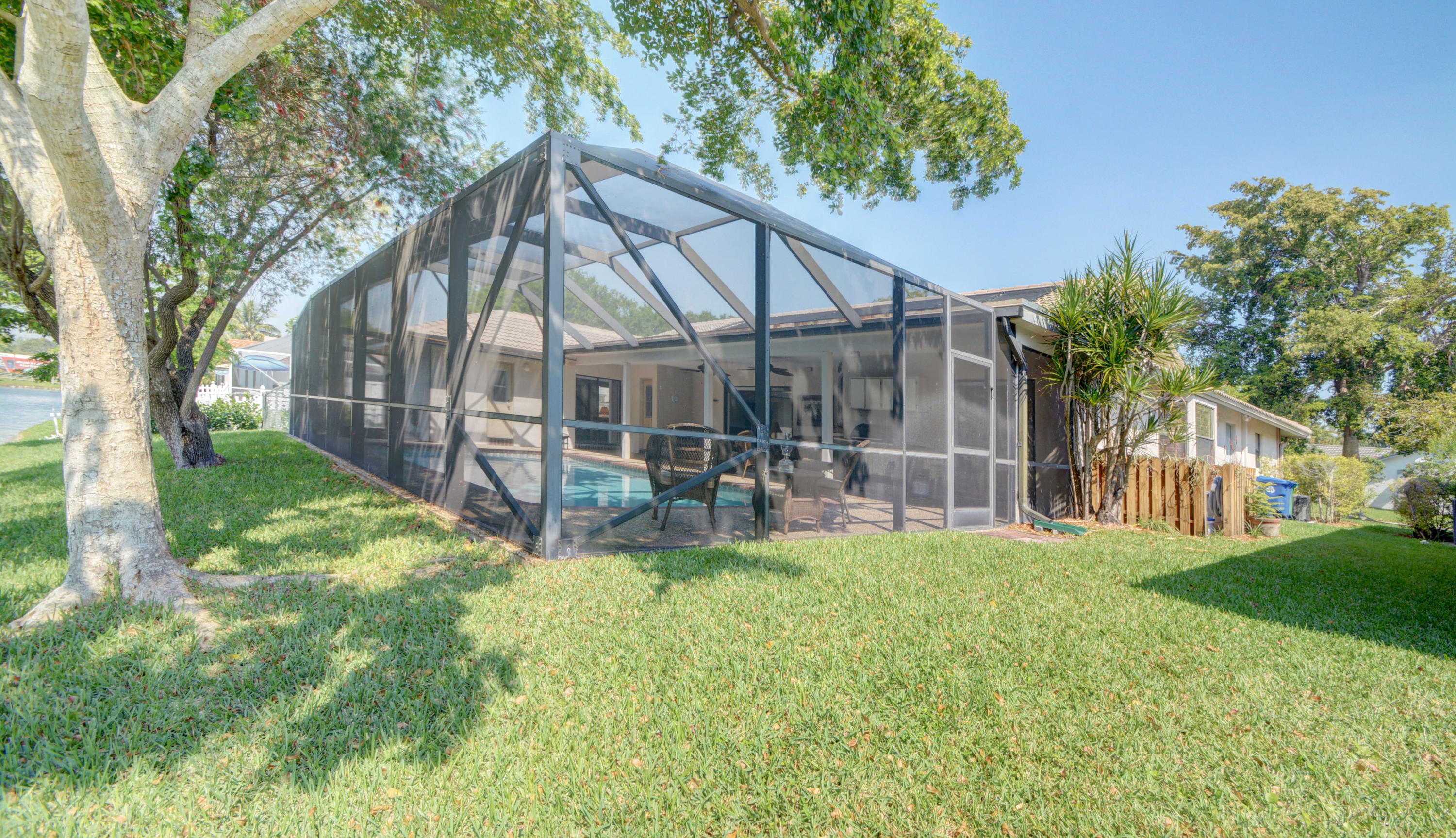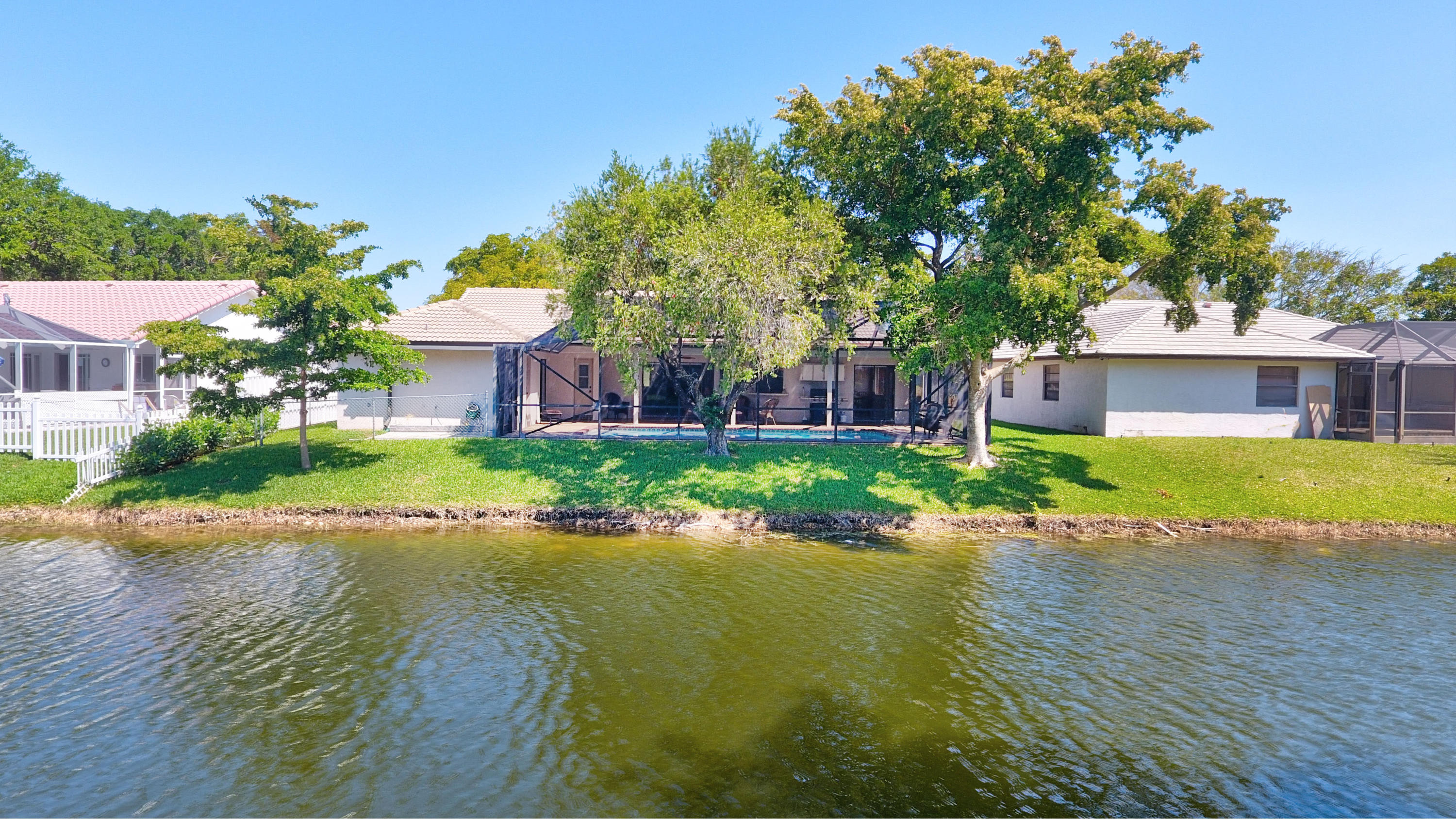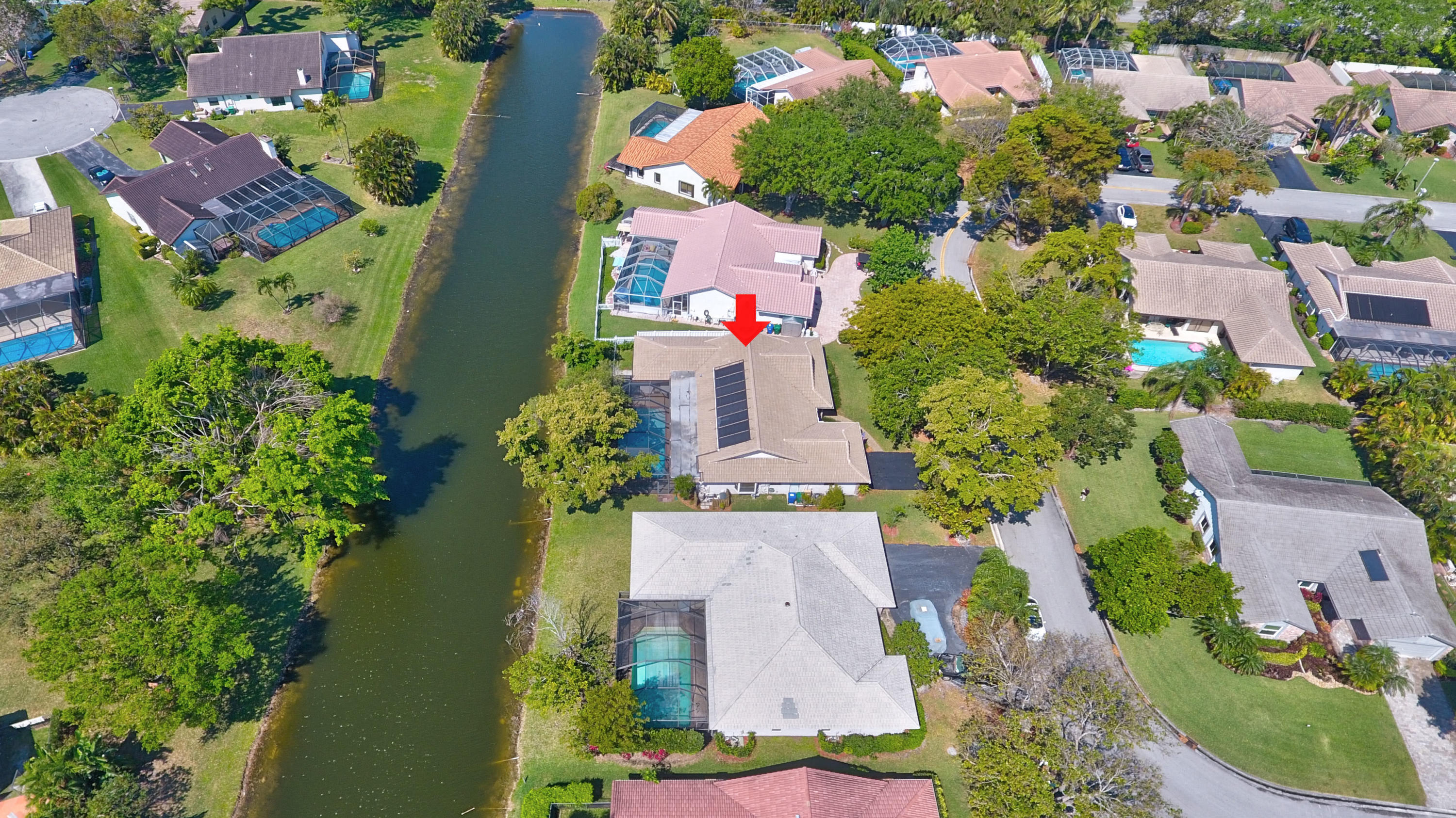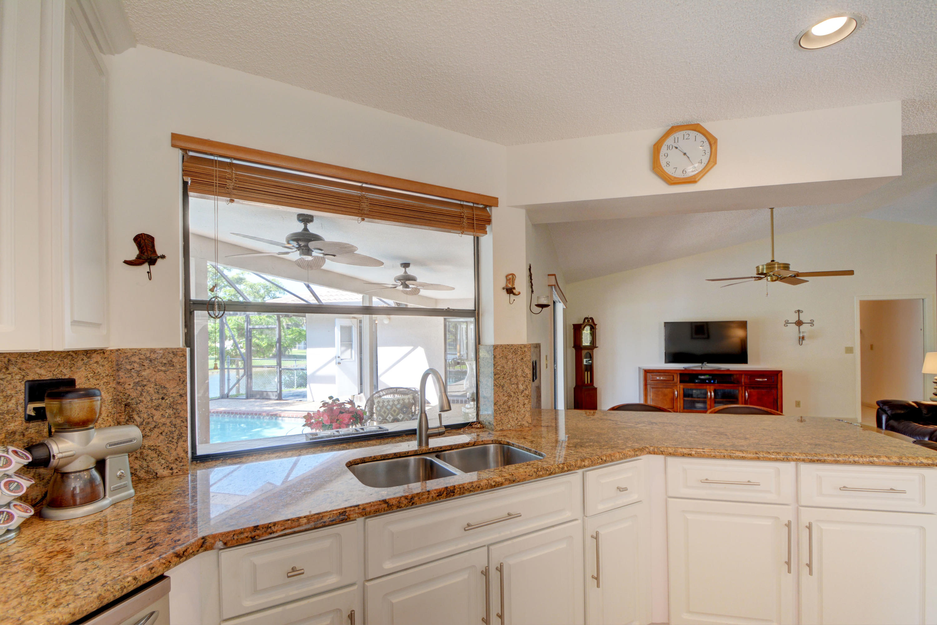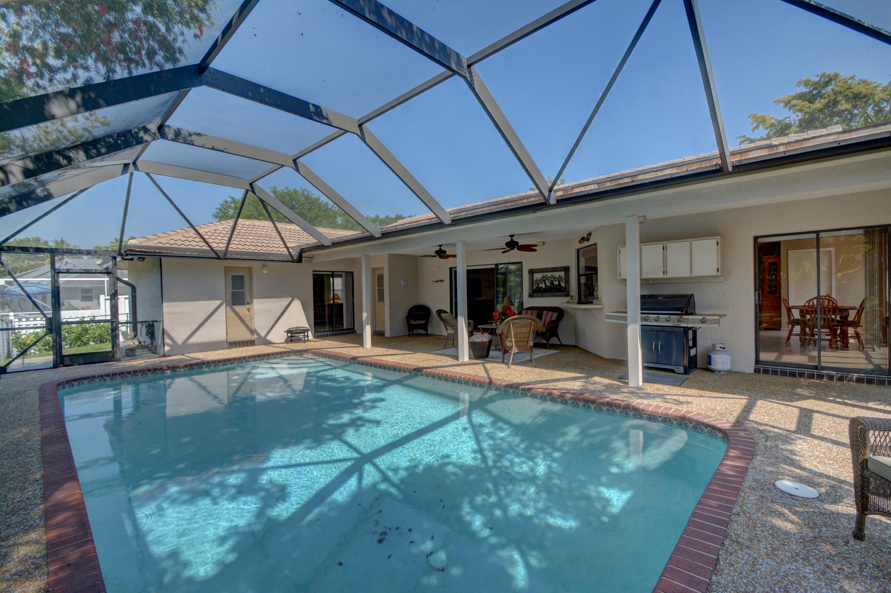 Look no further, come see this beautiful home that can be yours. This fabulous waterfront home with solar heated pool will blow you away. Beautiful brick facade welcomes you as you walk up the path to the double door etched glass door. Check out the vaulted ceilings that are in the sunken living room and beyond into a huge family room. Open concept to the kitchen that boasts granite counters, newer cabinets, cook island and a large eating area. Hardwood floors in the dining room.Pilot doors take you outdoors to a screen covered patio and pool. Gorgeous views of a wide canal. Cabana baths from guest and master bedrooms. Spacious master bedroom with sliders to pool. Master closets with built in cabinets. Laundry room with utility sink. 2 car garage.