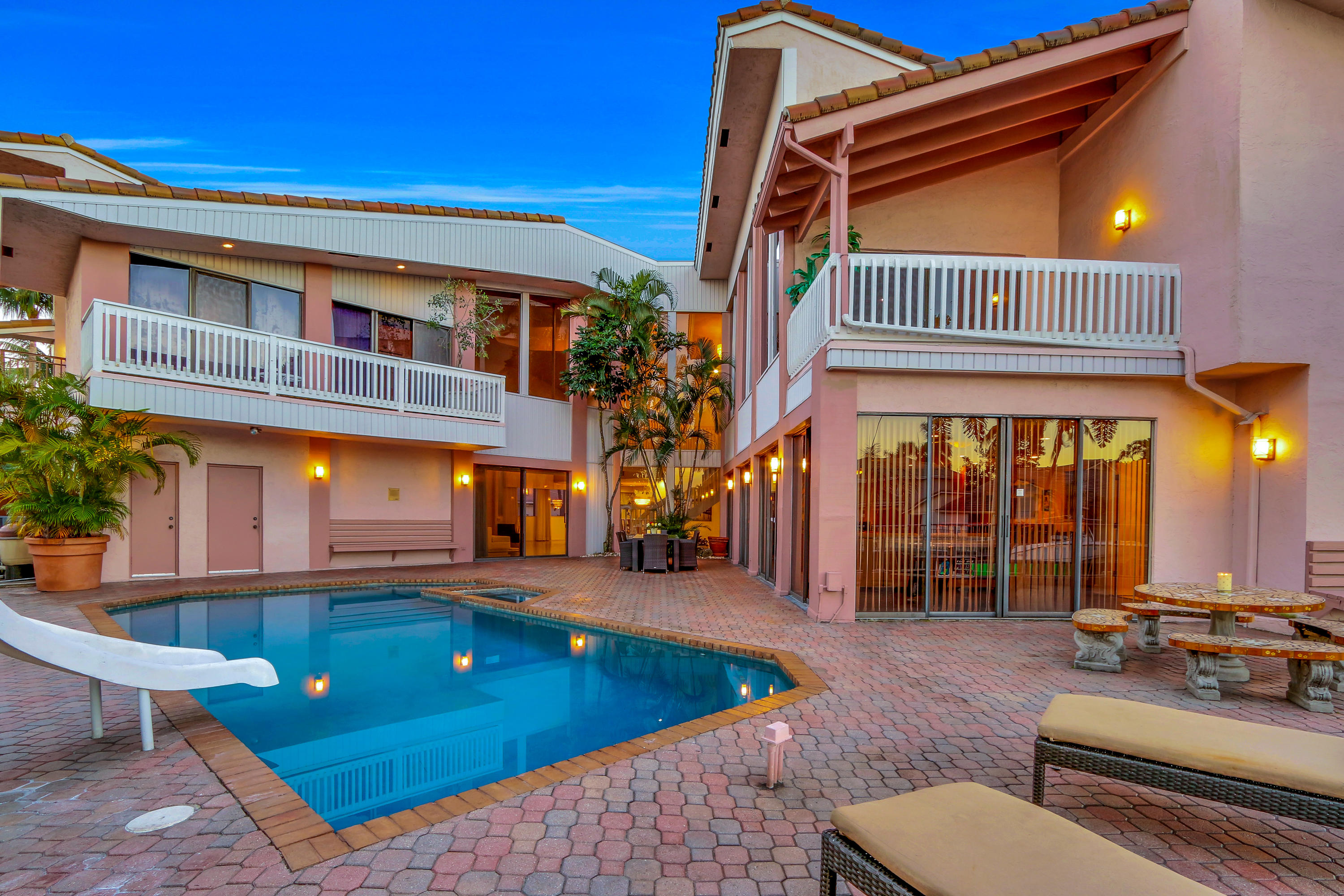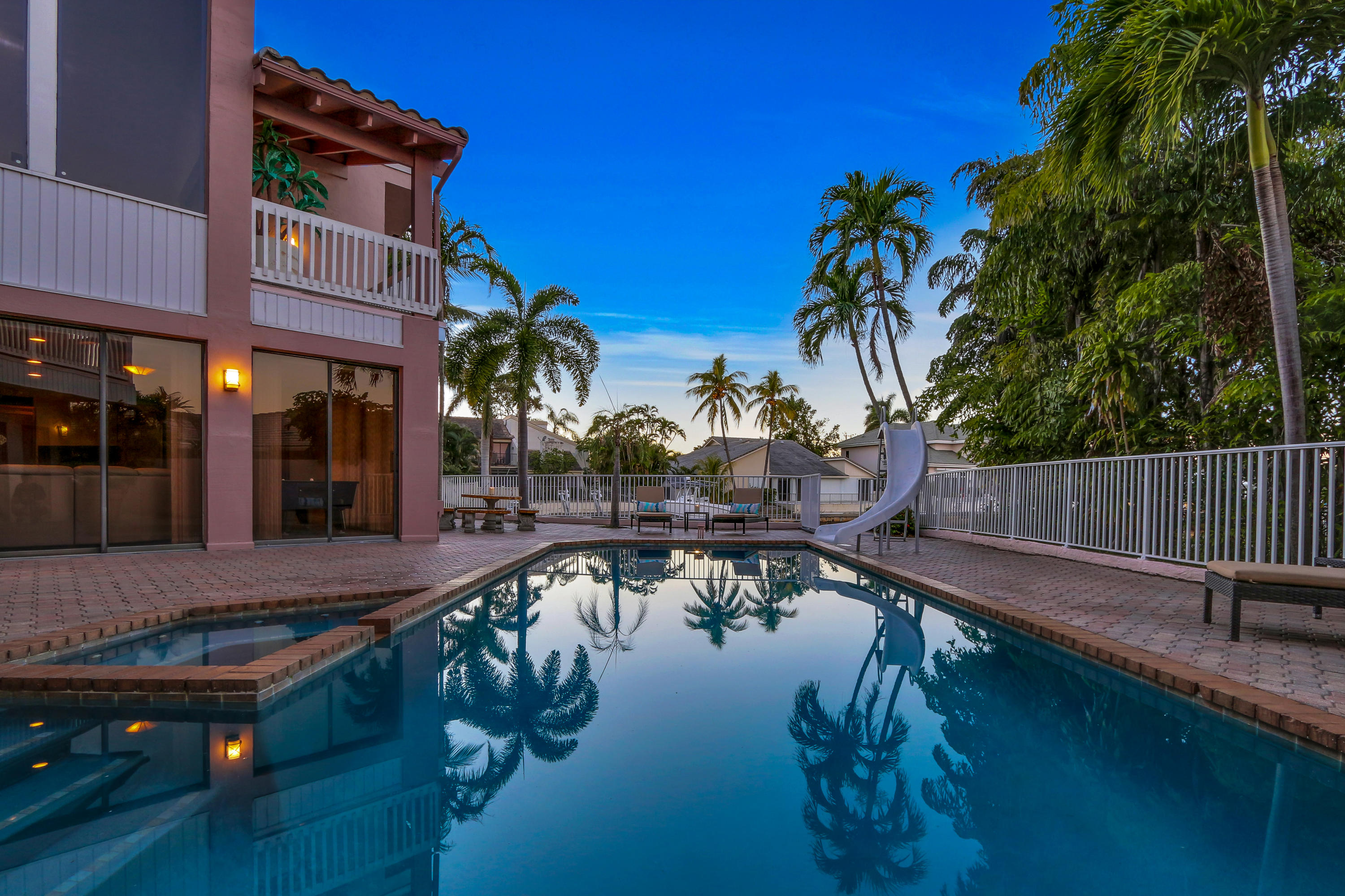 JUST REDUCED $250,000 ON THIS GORGEOUS 6 BEDROOM, 7 BATH, WATERFRONT HOME WITH PRIVATE DOCK AND OVER 5,800 SQ.FT. UNDER AIR.Take a tranquil sunset cruise on your boat through the waterways or fish from your private dock. Enjoy this luxurious, 7,309 sq ft, of airy and ultra-bright, bay side jewel in Boca Raton. Living areas open directly out to the pool and outdoor space allowing seamless flow for entertaining large and intimate gatherings effortlessly inside and out. An extraordinary contemporary home with amazing sunset views from the second-floor balcony and master. This home features 6 spacious bedrooms and seven bathrooms which includes ground level staff quarter. Very large master bedroom with on-suite, large closet and, wood burning fireplace.