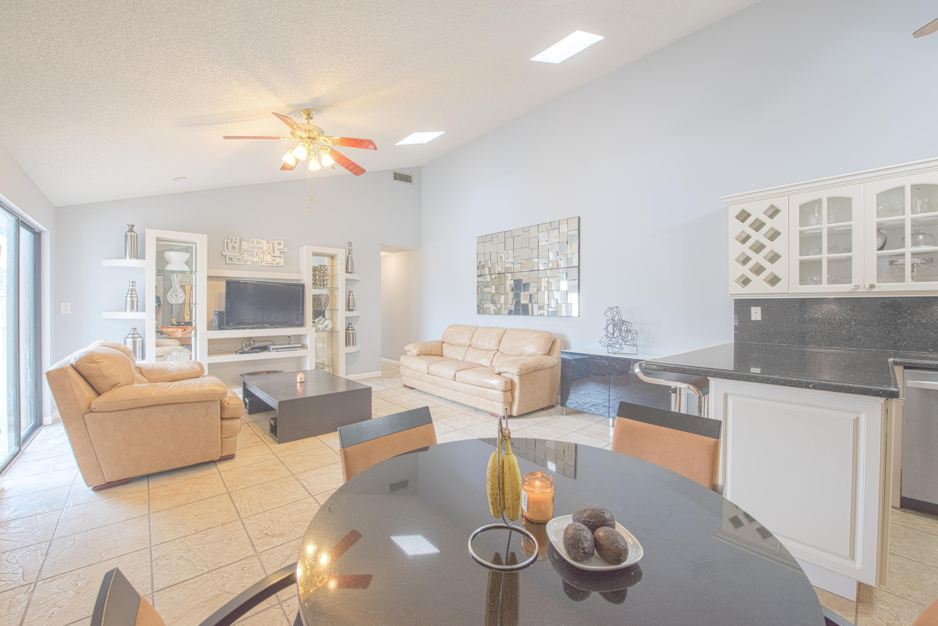 3/2 Exquisitely Updated Light Bright And Airy Boca Raton Townhome, Three Large Bedrooms, Spilt Floor Plan, Gorgeous Custom Kitchen With Granite Countertops And Newer Stainless Steel Appliances, Pantry With Ample Storage, Updated Bathrooms With Glass Shower Doors, Tile Throughout, Vaulted Ceilings With Celestial Windows, Fenced In Private Courtyard For Entertaining, Newer Industrial Sized Washer And Dryer, Large Custom Closets, Amazing "A" School District, Roof And Exterior Are Covered By HOA. Pet Friendly (Bring Your Fur Children), All Ages Friendly Community With Pool & Amenities.