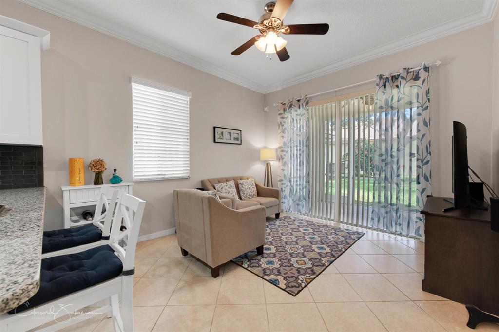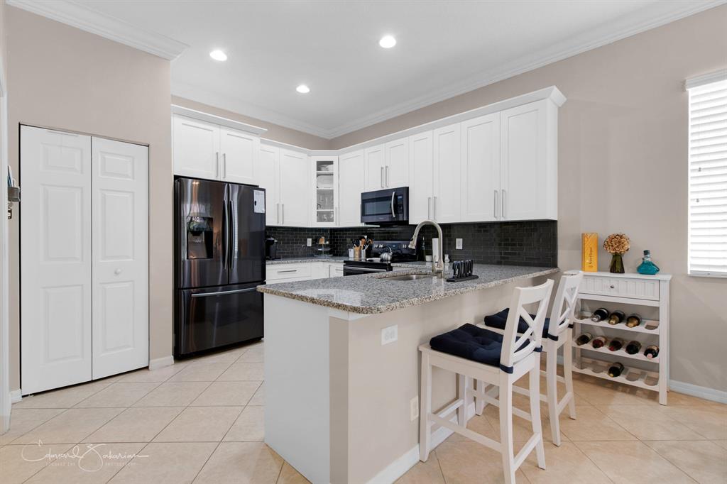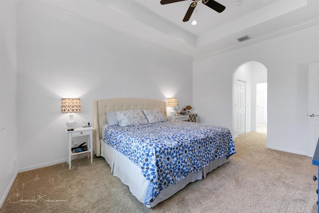 Don't miss this perfectly maintained three bedroom, two bathroom home in Andros Isle on a corner lot with large backyard and plenty of room for a pool. Home is a smart house with dimmer lights, smart locks, thermostat all ''smart'' and have the ability to be controlled by your phone. The kitchen was completely remodeled in 2017 with granite countertops, white cabinetry, upgraded hardware and new appliances. New air conditioner 2015. New washer and dryer 2017. Open floor plan with split bedrooms, upgrades with crown molding and tray ceiling in living area and master bedroom. Home has tile flooring throughout living areas and new carpet in bedrooms. The community of Andros Isle has an award-winning clubhouse with heated pool, fitness center, tennis courts, playground, and social activities.