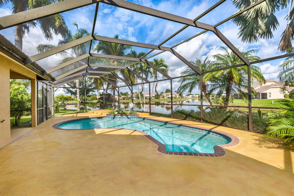 Enjoy the tranquil lake views in this spacious and bright 3 bedroom, plus a loft that could be used as a 4th bedroom, 3.5 bath pool home in Boca Winds. This home is nicely nestled on a cul-de-sac and features an expansive screened-in patio with a large pool and lake views from all angles. Wood cabinetry and granite countertops adorn the kitchen and master bathroom. The roof is just under 5 years old. A cabana bathroom is accessible off the pool deck. Boca Winds is an amenity packed neighborhood in West Boca featuring 2 pools, basketball, tennis and playground areas for residents to enjoy. Boca Winds residents are also currently zoned within 3 A-rated public schools for elementary, middle and high school. This neighborhood has it all!