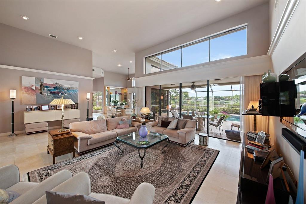 Magnificent leaded glass front doors open to reveal a spacious, open floorplan, volume ceilings and gorgeous views of the double lake lot. This meticulously-maintained 3-bedroom, 3.5 bath residence offers a new eat-in kitchen, gracious entertaining areas, marble and mahogany wood floors, a spacious master suite with 2 outfitted walk-in closets and large bathroom, and a handsome home office detailed with built-ins and granite-topped desk. The oversized salt water, heated pool is screened and is surrounded by a huge travertine deck ideal for outdoor entertaining.The entire home is handicap accessible, and all bedrooms are ensuite. This is a MUST SEE beauty!