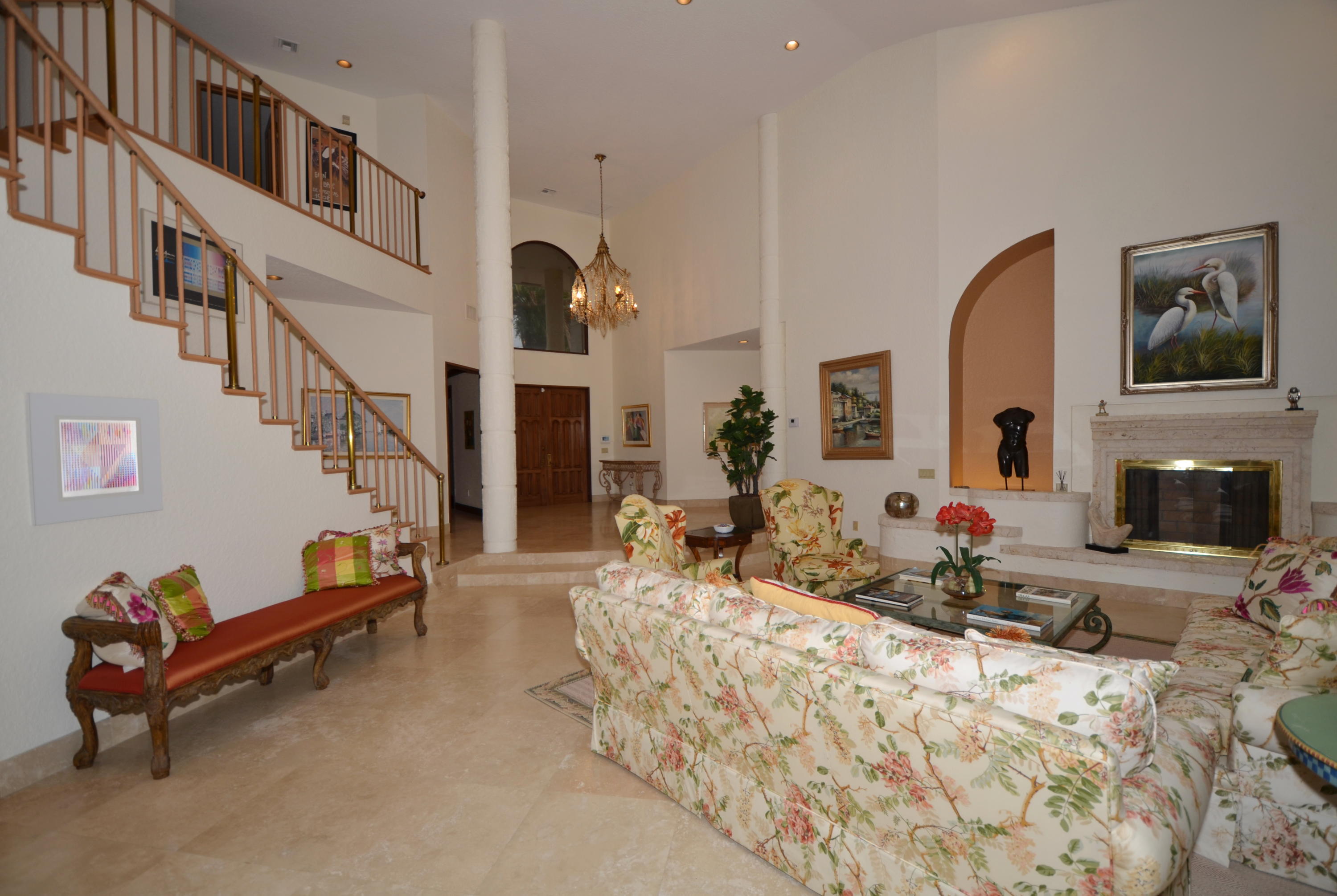 Impressive home at the end of a cul de sac overlooking the golf course with a magnificent double lake view. Soaring 2-story ceilings. Massive fireplace. Luxurious 1st floor master suite. The open floor plan leads to the pool and patio making it an ideal home for entertaining. Your exclusive membership provides access to all the community has to offer.