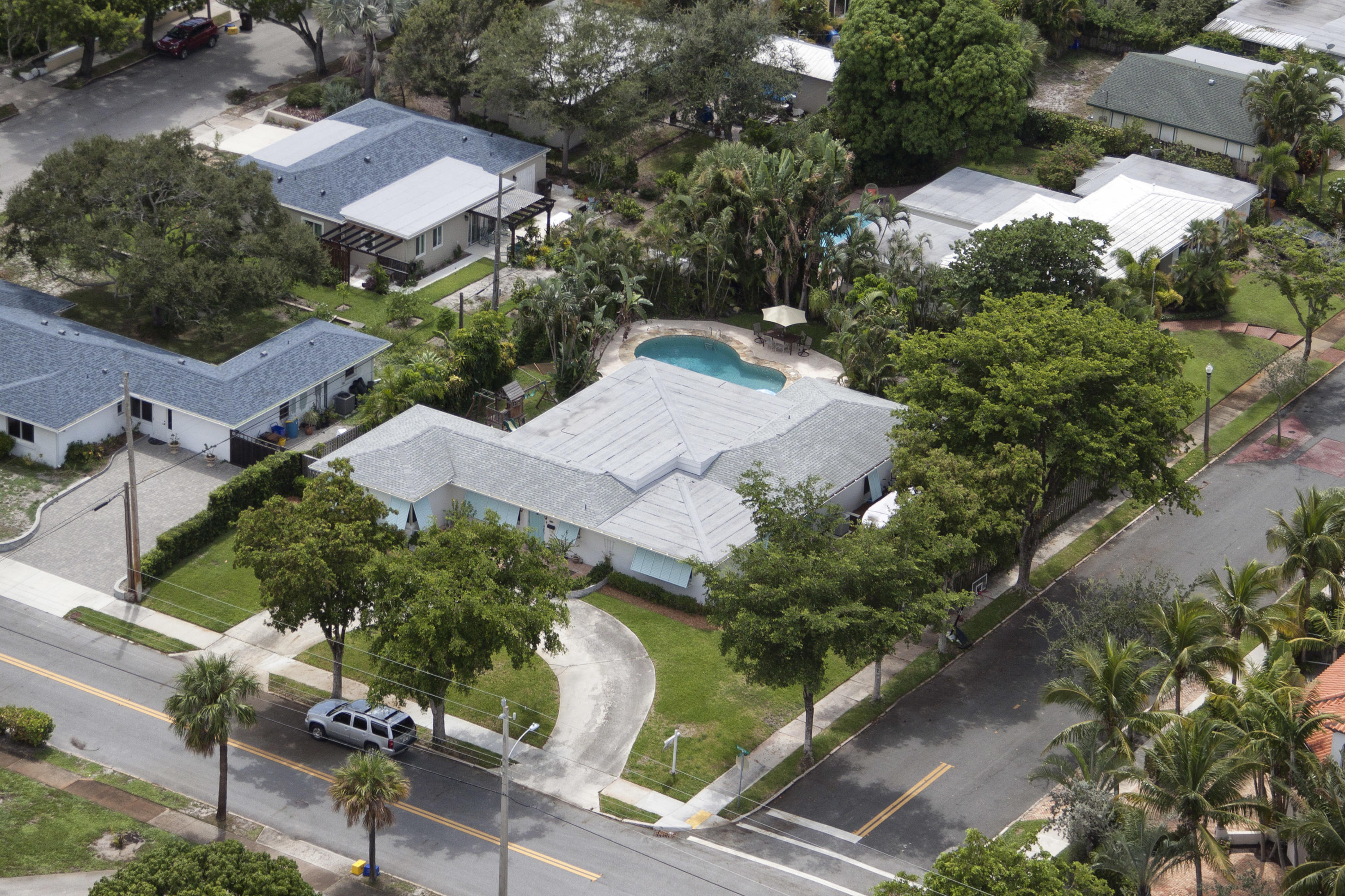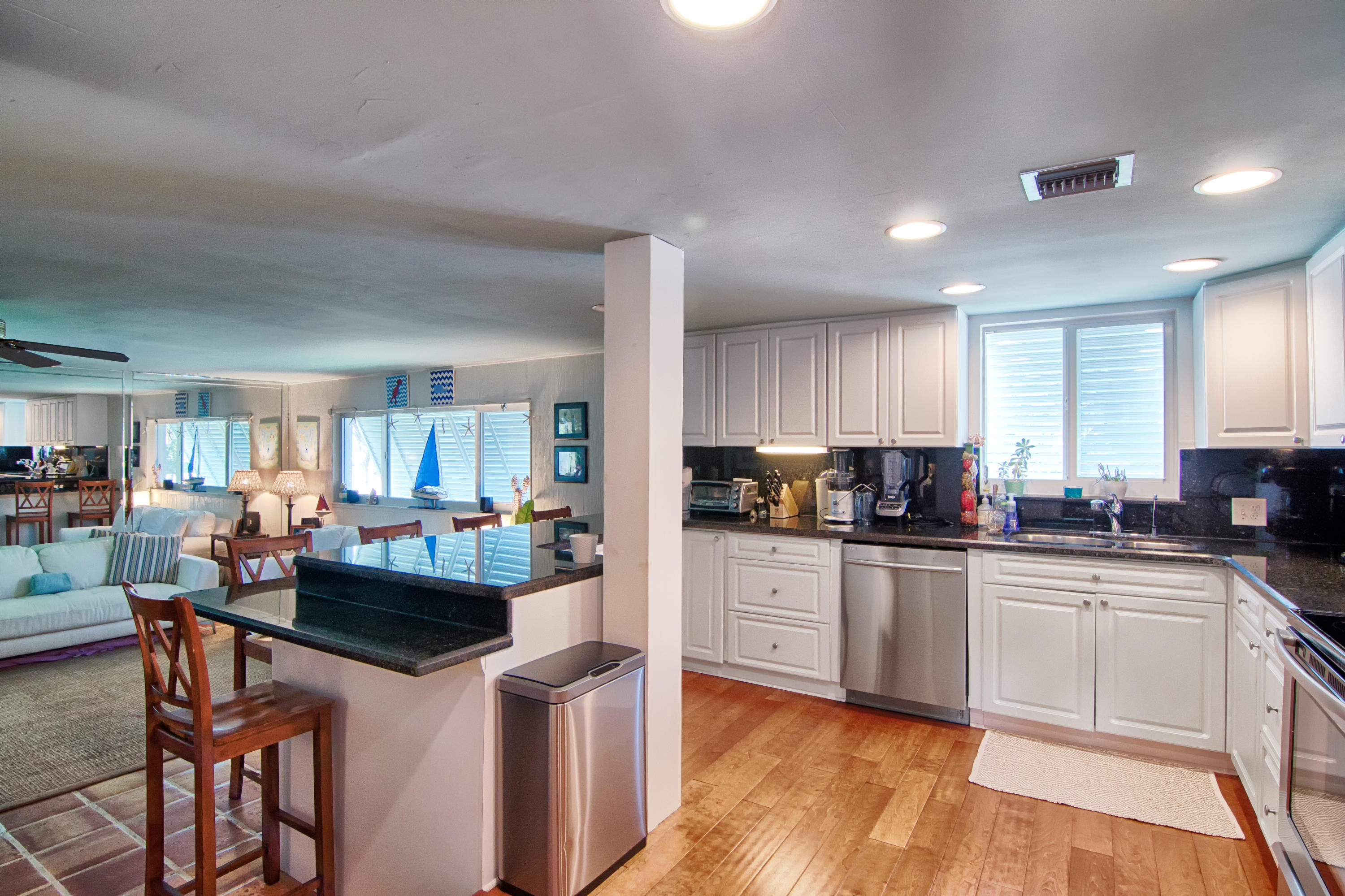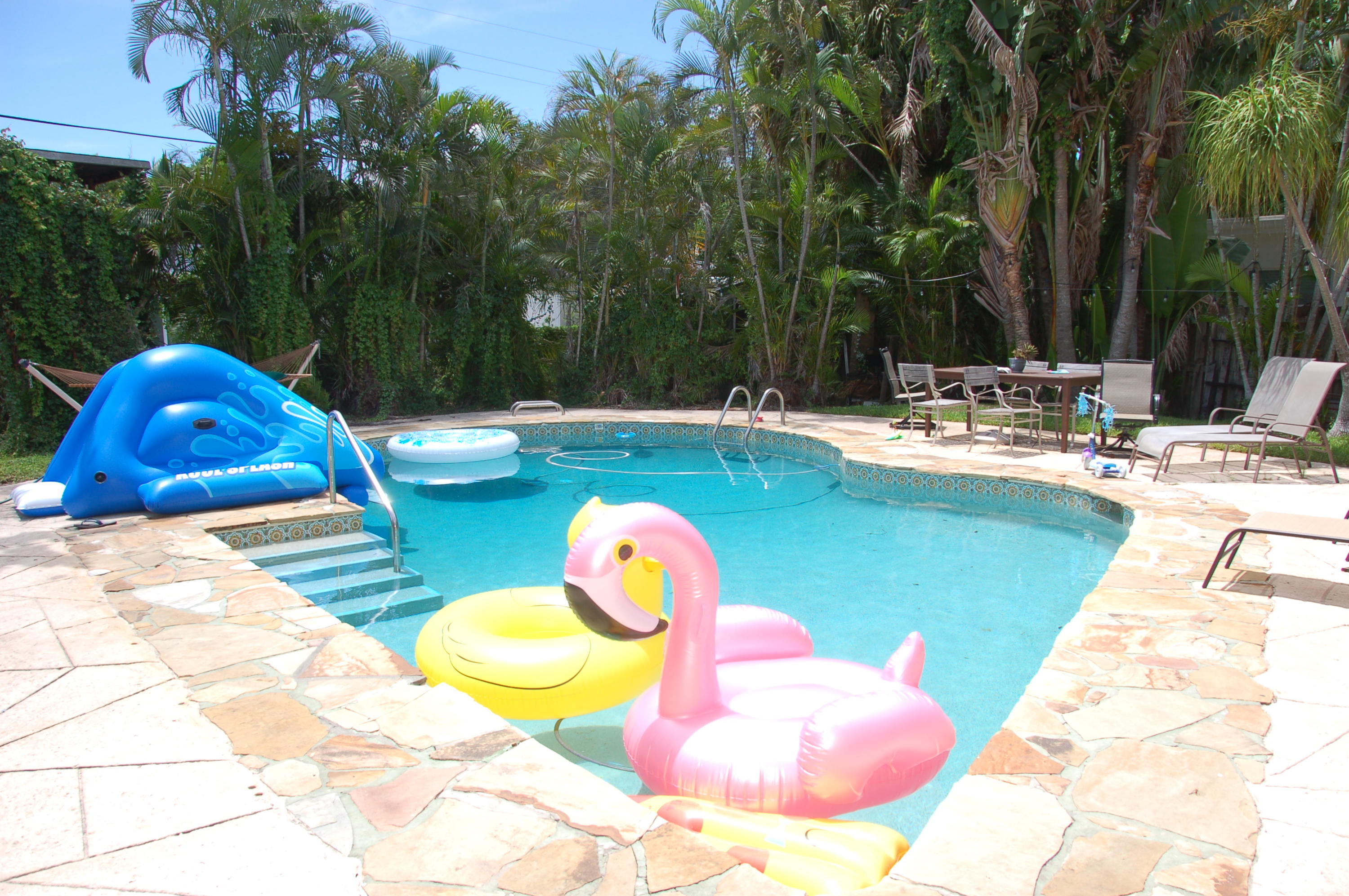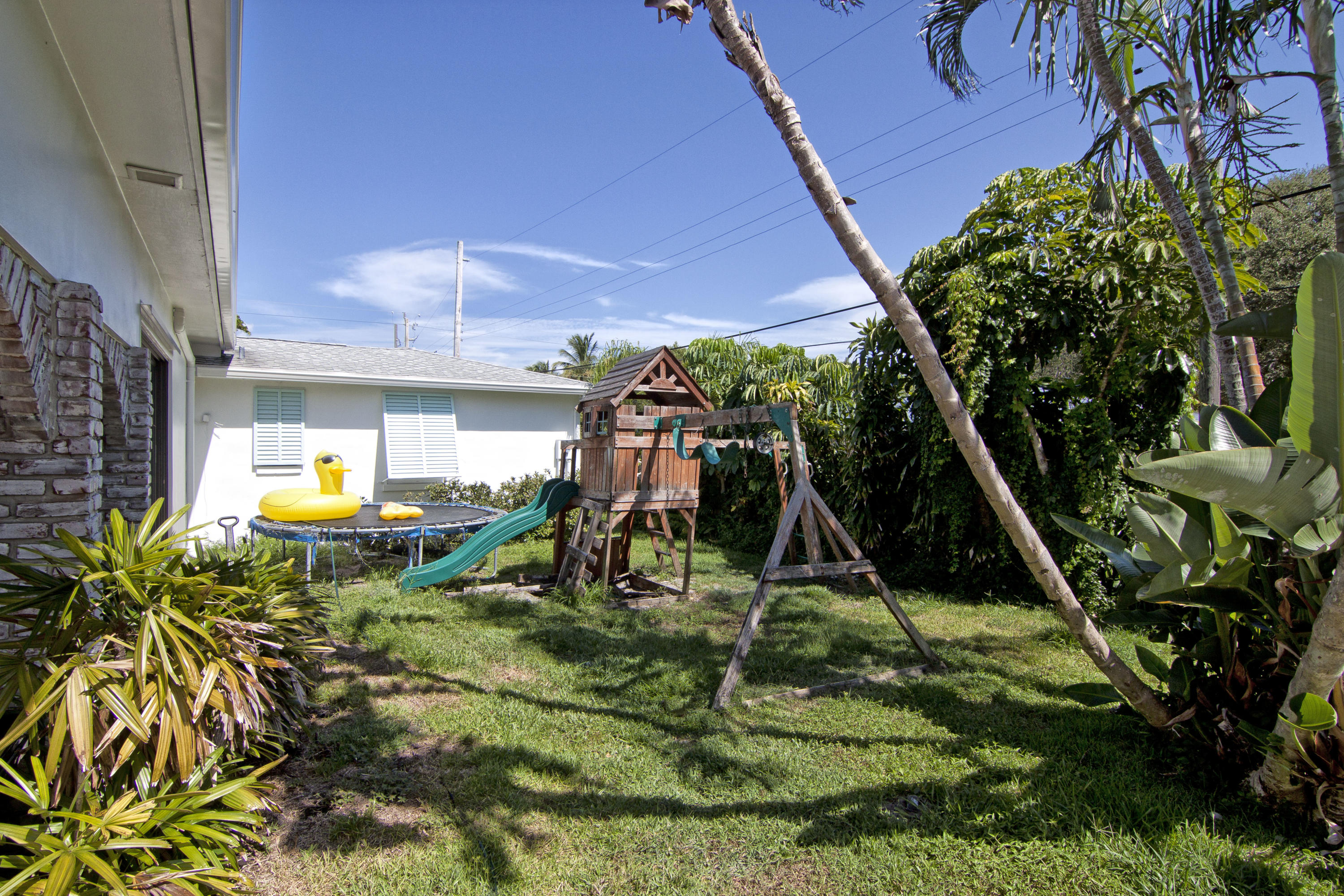 Charming Bermuda-style ranch on an elevated, double lot (.345 acre) just 1 block from the Intracoastal waterway. Nice lot elevation - no flood insurance required for these owners. 3 Bedrooms and 2 1/2 bathrooms with a split floor plan. Newer kitchen with granite & breakfast bar. Large master with huge walk-in closet. Entire backside of house is sliding glass doors, which provides beautiful natural light. Gorgeous tropical backyard with huge lanai & new granite wet bar. Hurricane impact windows & doors recently installed. This lot boasts a beautiful, 7 foot deep, salt water pool, & lush tropical landscaping (including a lime tree).