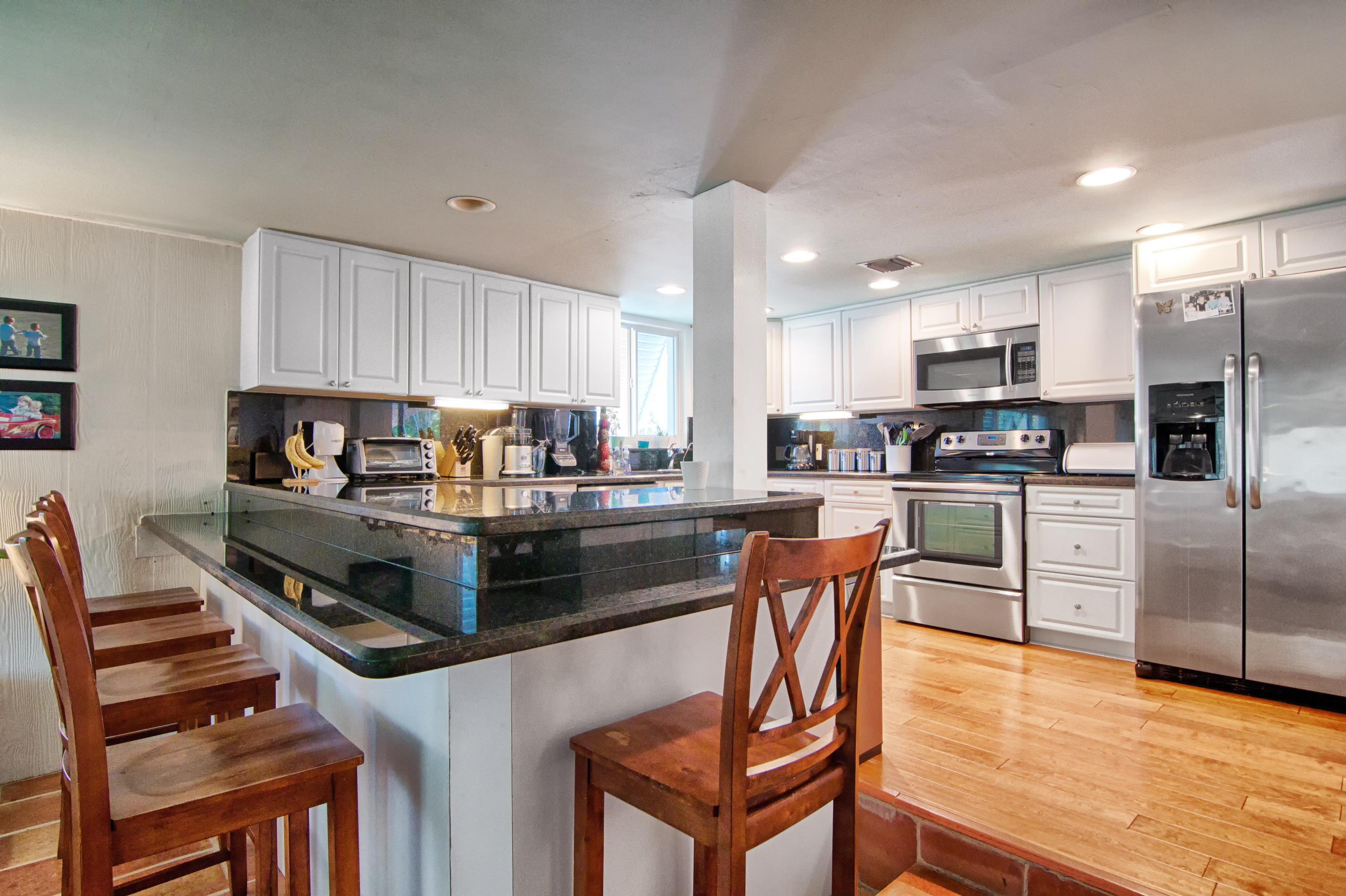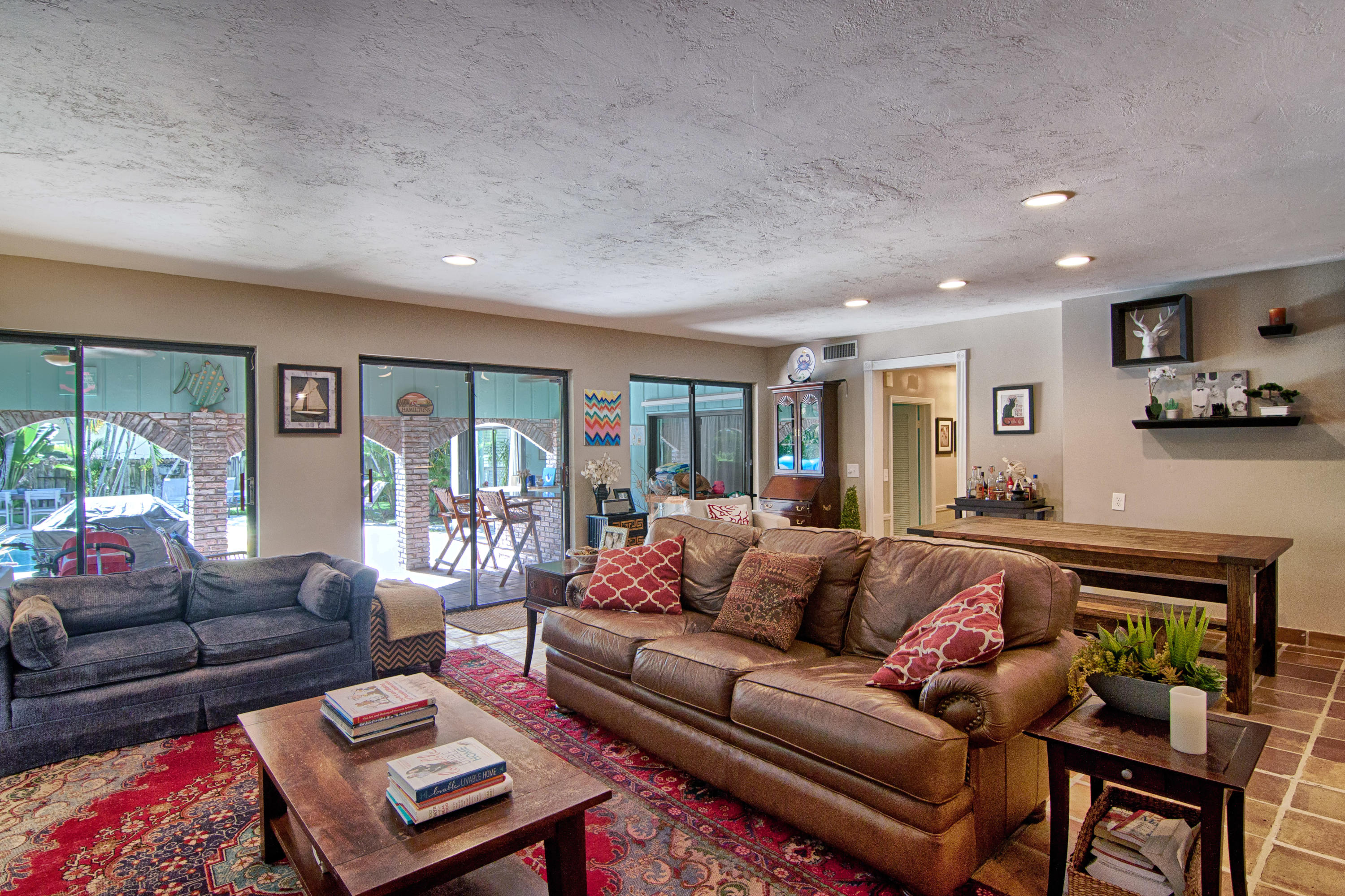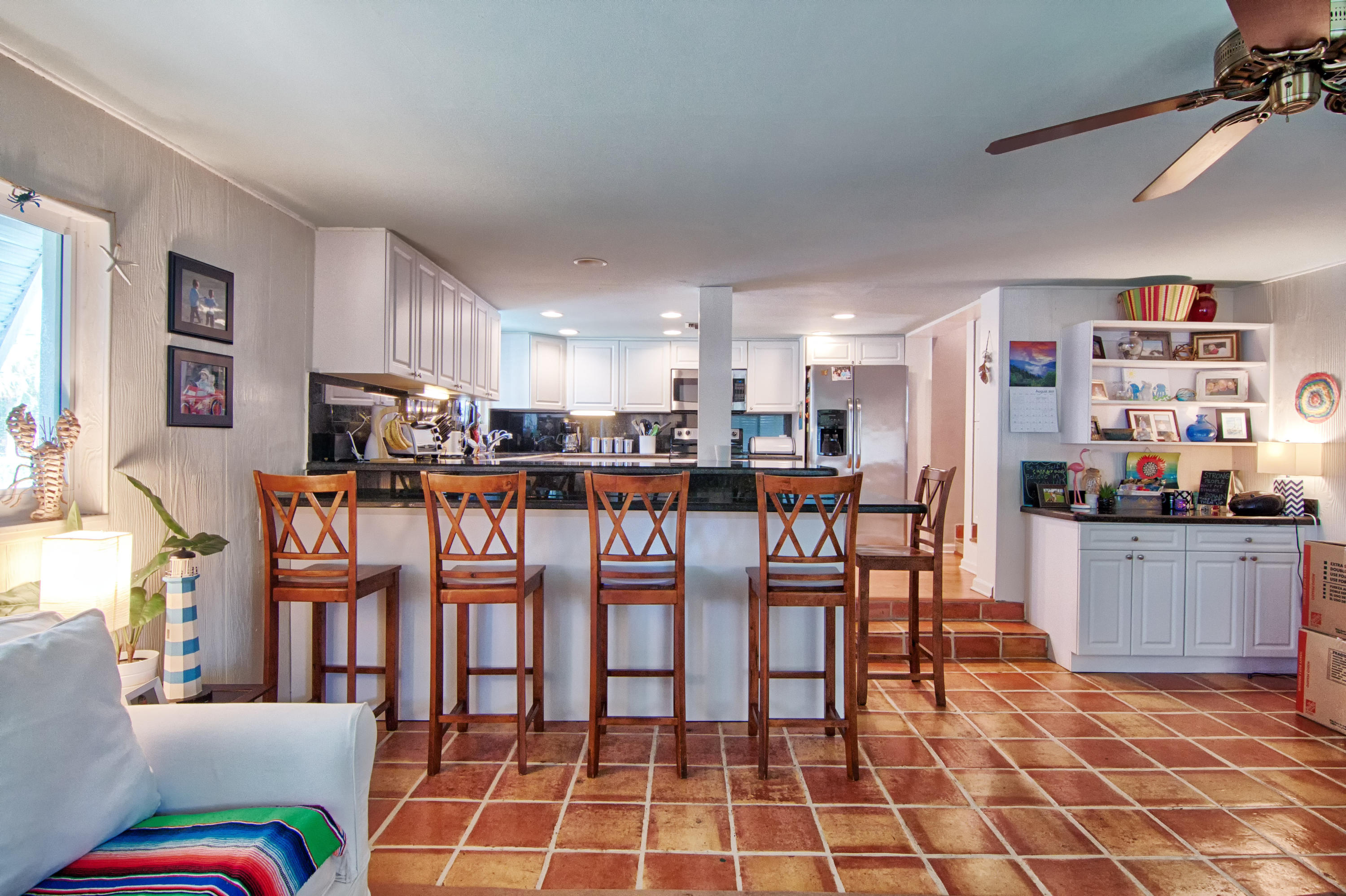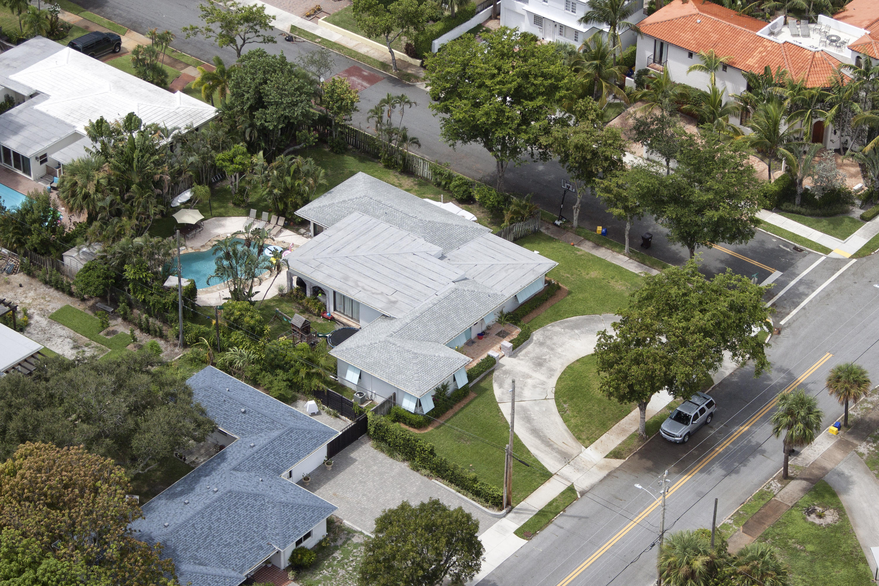 Charming Bermuda-style ranch on an elevated, double lot (.345 acre) just 1 block from the Intracoastal waterway. Nice lot elevation - no flood insurance required for these owners. 3 Bedrooms and 2 1/2 bathrooms with a split floor plan. Newer kitchen with granite & breakfast bar. Large master with huge walk-in closet. Entire backside of house is sliding glass doors, which provides beautiful natural light. Gorgeous tropical backyard with huge lanai & new granite wet bar. Hurricane impact windows & doors recently installed. This lot boasts a beautiful, 7 foot deep, salt water pool, & lush tropical landscaping (including a lime tree).