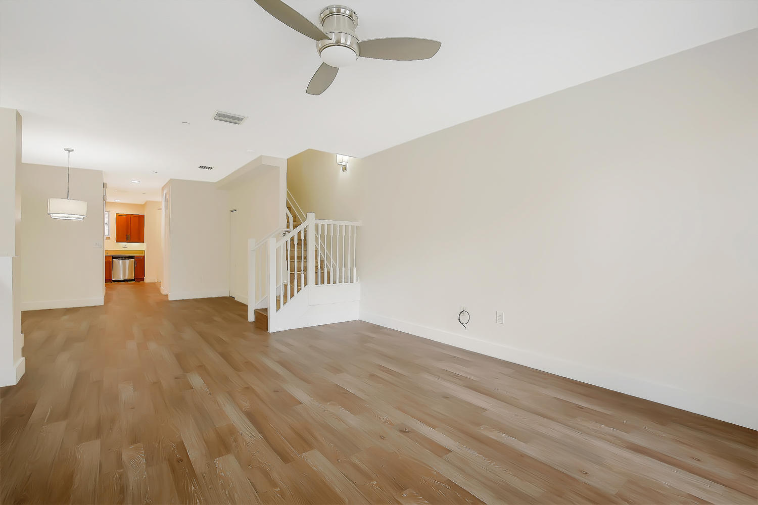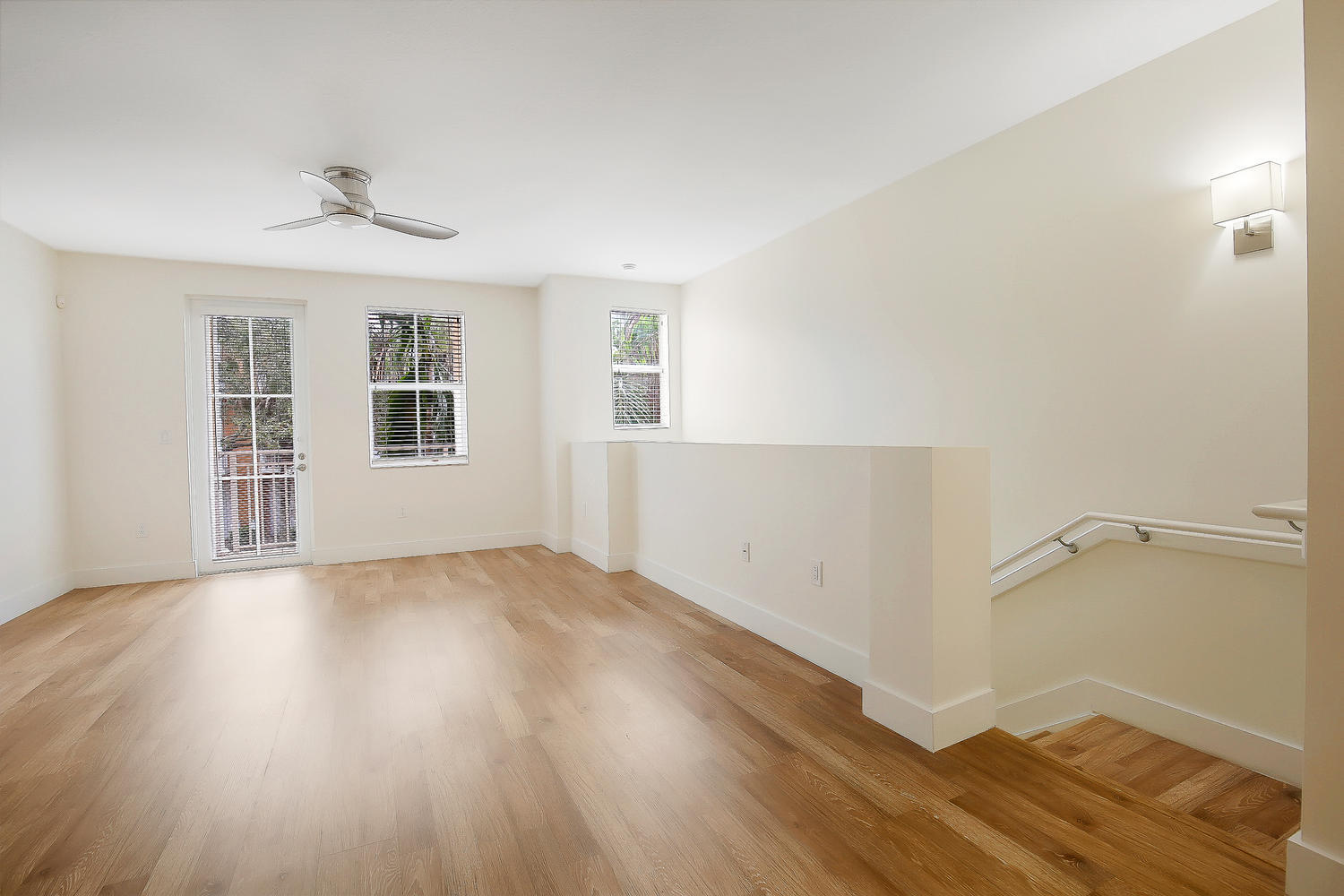 Complete update and remodel in September 2017! Paved step-up walkway leads you into this unit with a modern tone and traditional feel. A must see! Brand new wide-plank wood laminate flooring, SS kitchen appliances with granite countertops, tall baseboards, new interior hardware, wood stairs and more. Brand new A/C 2016, double oven, wide refrigerator, new bath and light fixtures throughout, upgraded mirrors and modern high-end ceiling fans. Private entry in front and rear, 1 assigned parking spot, and close to mailbox. Impact glass throughout, custom wood built-in closet shelving, with clean and bright white subway tiled baths. Laundry room with stacked washer/dryer and plenty of extra storage space with more built-in shelving. Solid construction keeps noise out and secure during storms!!!