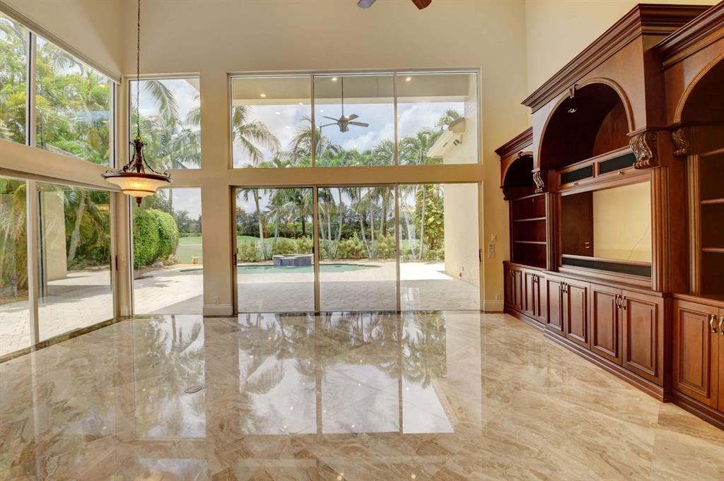 Enjoy serene golf course views & beautiful upgrades in this 2-story home of 4 bedrooms plus loft,office & 5 1/2 baths featuring volume ceilings with crown moldings;exquisite 36'' marble floors;hardwood floors;stone wall in the Living Room with a fireplace and additional stone & tile walls beautifully scattered throughout; inviting gourmet kitchen with 42'' cabinets in a medium oak finish, granite counters & backsplash,stainless steel appliances and a charming breakfast nook;elegant built-in Living Room credenza & Family Room entertainment center;wood & wrought iron banister;custom window treatments;solid core doors;upgraded baseboards;custom closet design;3 new air conditioning systems & a spacious patio offering covered and open areas & a pool overlooking the golf course.