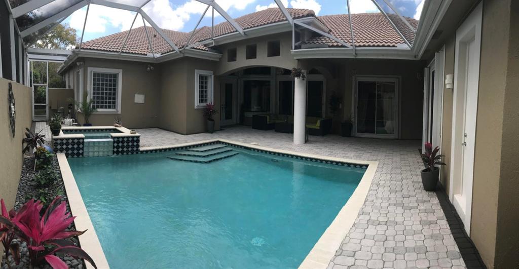 Come and see this gorgeous open floor plan with 18'' ft ceilings , corner lot, with separate mother in law quarters that has a walk in closet and full bathroom. Courtyard home with heated pool and jacuzzi that features 4 bedrooms, 3.5 baths. Tons of upgrades and beauty in this home! Large kitchen with 42'' granite island, large bedrooms with cathedral ceilings, master bath features two seperate vanities, Roman jacuzzi tub, separate shower, and toilet room with bidet. Master bedroom has two seperate walk in closets. Conveniently located minutes from the Sawgrass Expressway in highly desired neighborhood of Heron Bay. The community features a manned guard gate and the home is a short walk across the street from the clubhouse with gym and pool, playground, tennis courts, and basketball court
