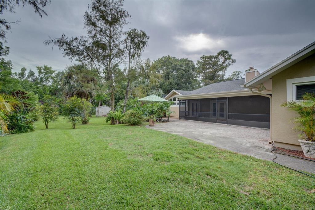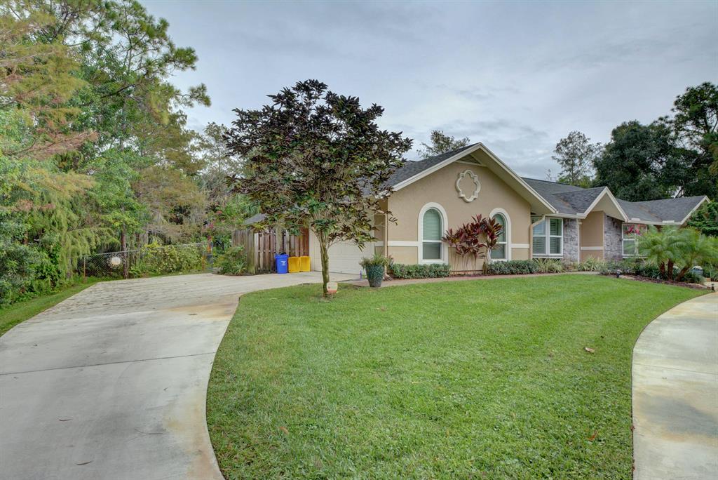 Upgrades galore! Travertine floors, zoned sprinkler system, new deep well, all new appliances, open floor plan, fully private treed yard, fenced back yard, complete hurricane doors and windows, stucco siding, vaulted ceilings, clawfoot tub, huge master bedroom and bath, walk in master closet, 3 sets of french doors overlooking tiled patio, fruit trees, city water, paved street, stone fireplace. Nature lovers paradise...huge yard but close to all amenities. 95 is few minutes away and airport is approx 20 minutes away.