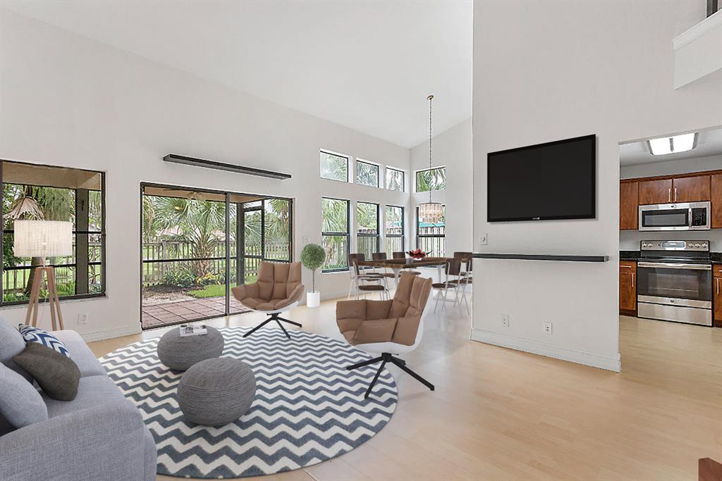 Just 1 mile from the town center mall and Boca Raton Racquet Center, this exquisite home couldn't have a better location! Fabulous light and bright layout with all the right spaces- entertain beneath soaring volume ceilings; relax in the family room; cook in the updated kitchen featuring granite countertops and S/S appliances, BBQ for 2 or 20 in the well appointed private and enclosed backyard with zen landscaping, new pavers and covered lanai. Enjoy wide lake views from the backyard. The opulent master suite is located on the ground Level and features a stunning renovated master bath with double vanities and an oversized shower w/ frameless barn-style shower doors. This home has been meticulously maintained! Recent upgrades include: New roof (2017)..