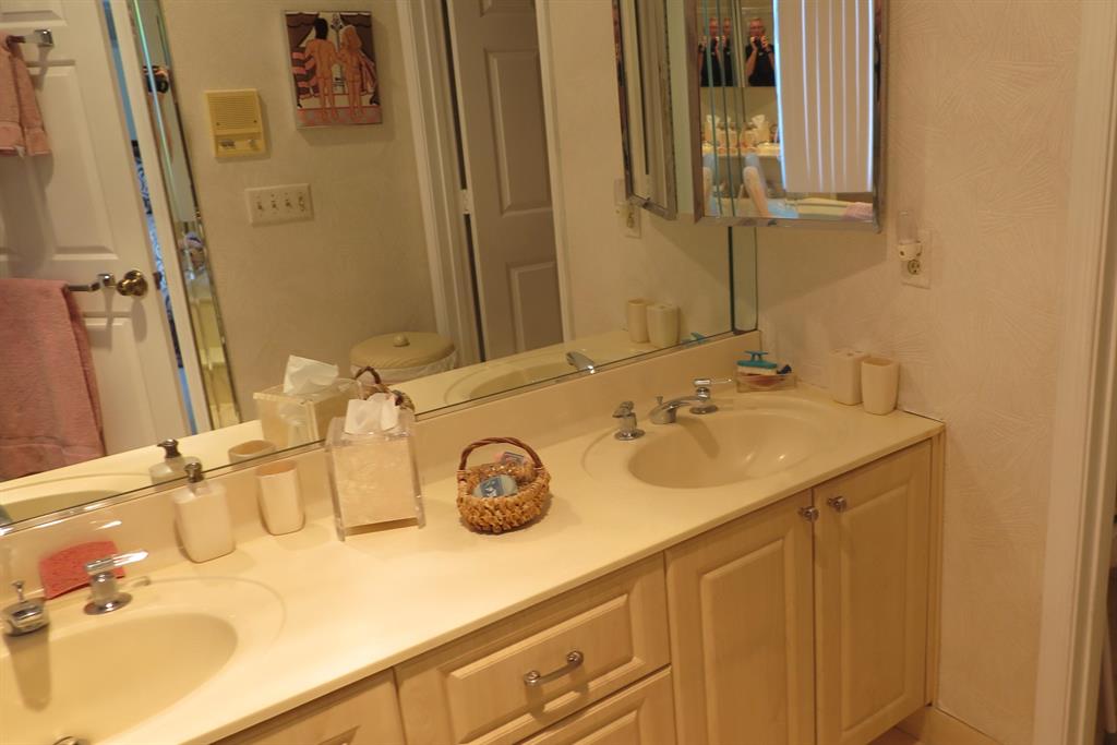 Charming and lovely home with neutral tones throughout. Excellent condition. Saturnia marble floor throughout living area. Wet bar in living room. Kitchen has granite counters. Lucite fans. Brand New washer and dryer. Beautiful lake views from master bedroom and patio. Partial lake view from living room. New roof, replaced in 2017. A/C replaced approximately 6 years ago. Third bedroom is used as den. Lots of closets throughout. Sliding glass doors off large kitchen to make BBQing very convenient. Membership optional.