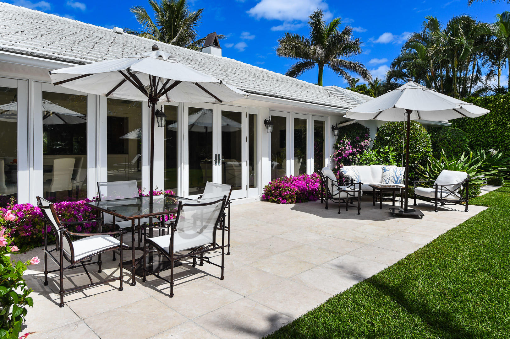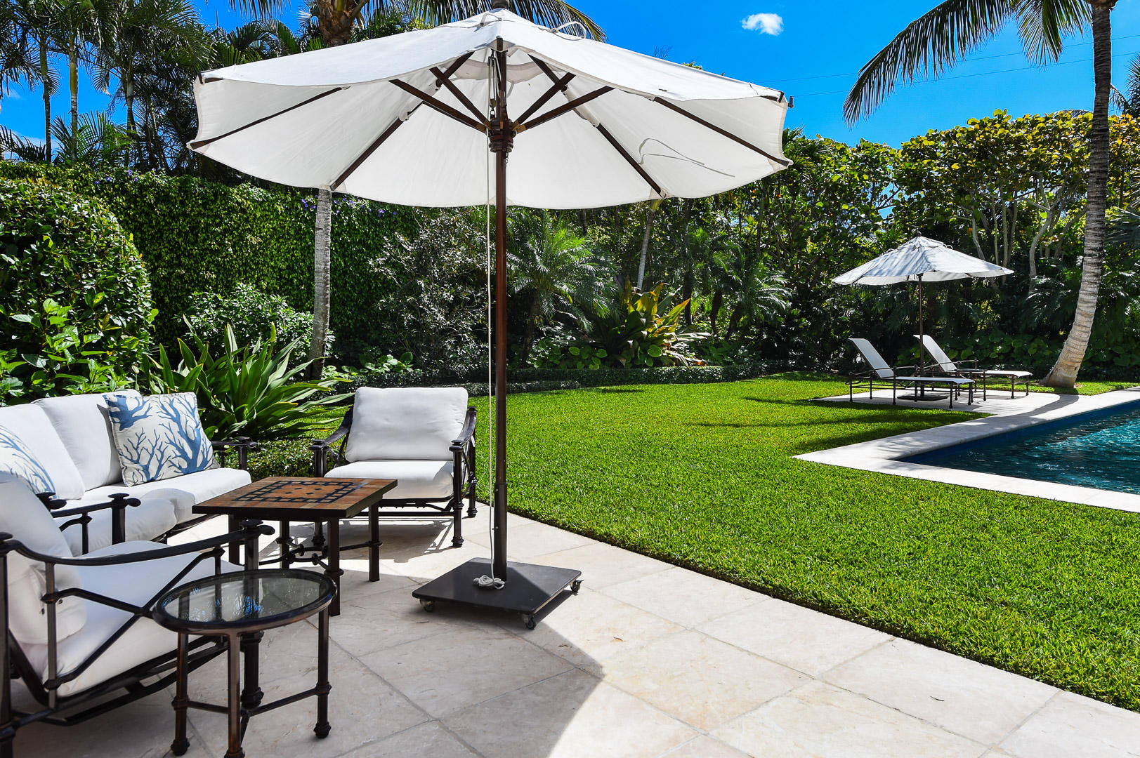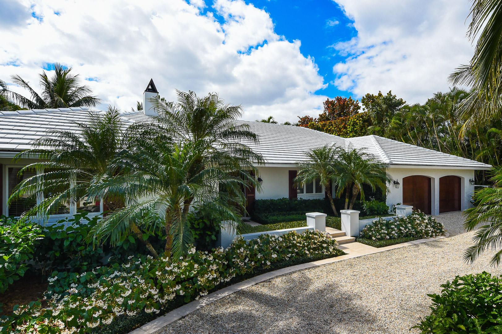 Stylish 3 BR/3 BA Bermuda situated on an exquisite 16,000 SF lot. Gardens designed by renowned landscape architect Morgan Wheelock surround the large pool with water feature. 2 car garage, newer A/C, generator. The perfect getaway to enjoy the Palm Beach sunshine. Convenient beach access.