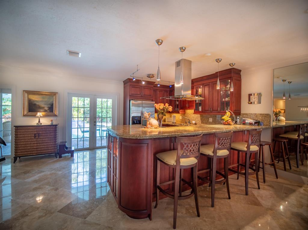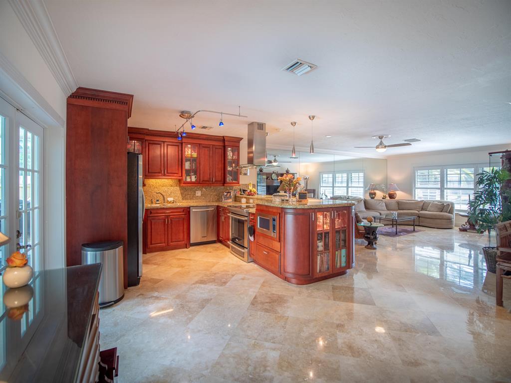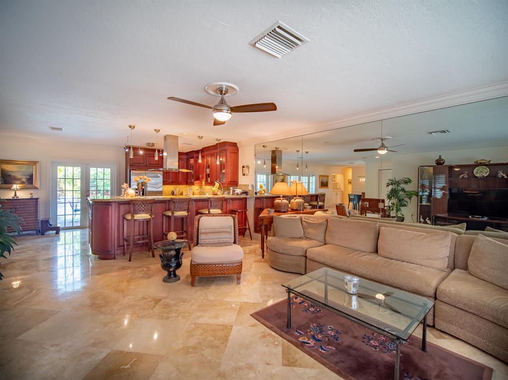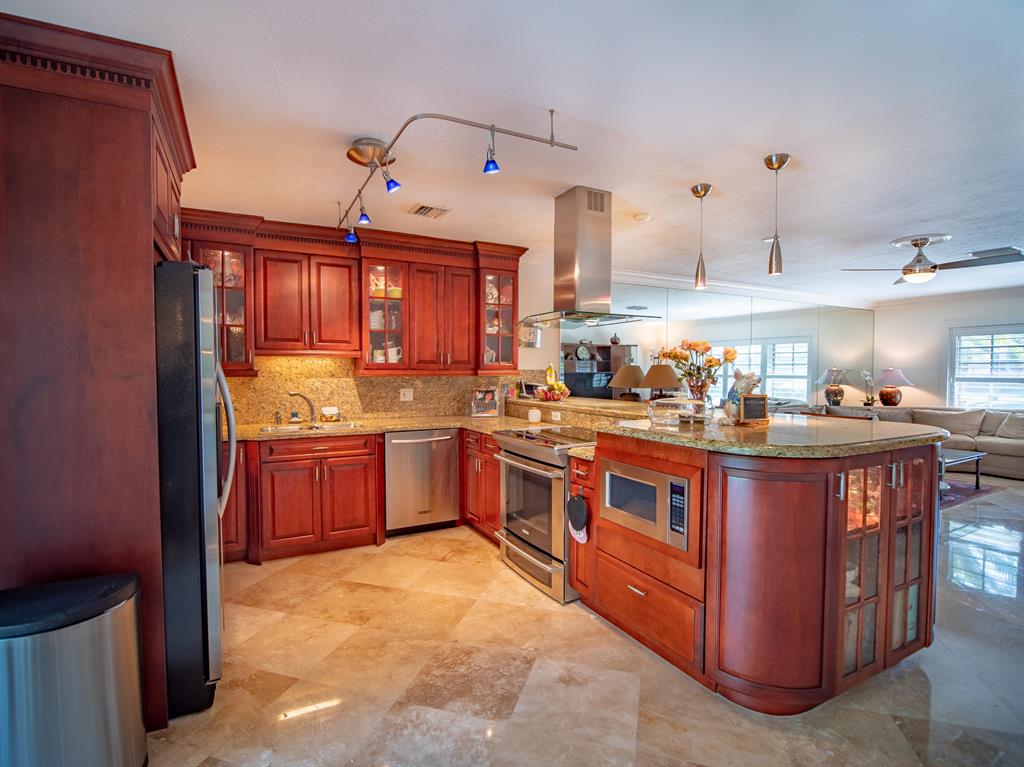 MOVE-IN ready home awaits you in Spanish River Land Co - one of the areas best seaside communities. Walk to the beach from this renovated 4 bedroom, 2 bath home. Custom open Ultracraft gourmet kitchen with SS appliances (including induction), granite counters & bar area. Updated baths with gorgeous marble & granite, high grade polished Saturnia marble through all main living areas. The flow is great in this house with spacious family room & open concept living. Impact glass french doors open onto covered lanai area for outdoor entertaining and sparkling pool with waterfall. Lush landscaping, new fence, circular driveway, 2 car garage and over 2000 sq ft under air. This well maintained home awaits those who value their time and are ready to just move in and enjoy the beach area lifestyle!