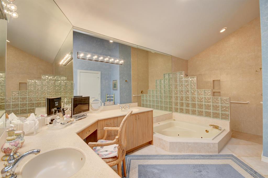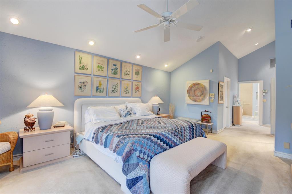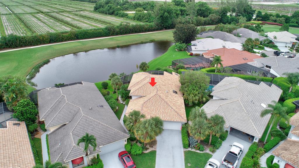Great cul-de-sac lot with screened in swimming pool, direct LAKE & GOLF VIEWS and has fenced in side yard perfect for children and pets. Roof (4 years old), A/C has two units (4 years and 1 year old), Culligan water softener, Flo Logic system has been installed to determine and shut off water if a leak occurs (great for seasonal owners or if you travel often). This lovely home has 3 bedrooms, 3 full baths + powder room, living and family room, wet bar, volume ceilings, 2 car garage with storage cabinets and accordion shutters. Kitchen is sleek consisting of modern style teak wood cabinets, black granite countertop, black appliances and a large bay window in breakfast area that lets in lots of light. Neutral tile laid on the diagonal throughout home and guest bedrooms. (MORE)
