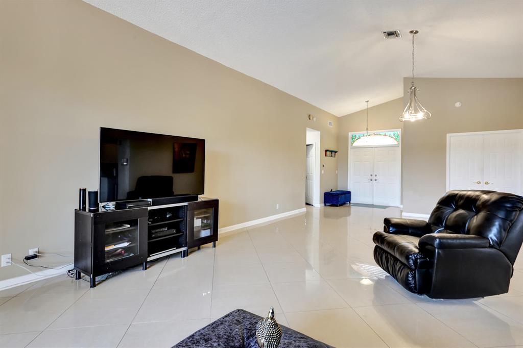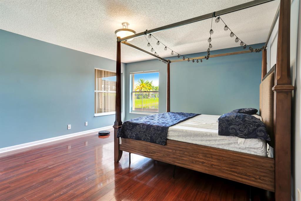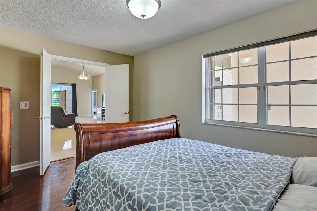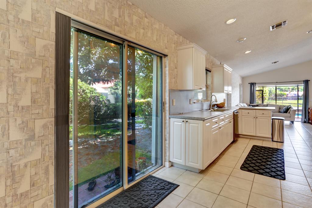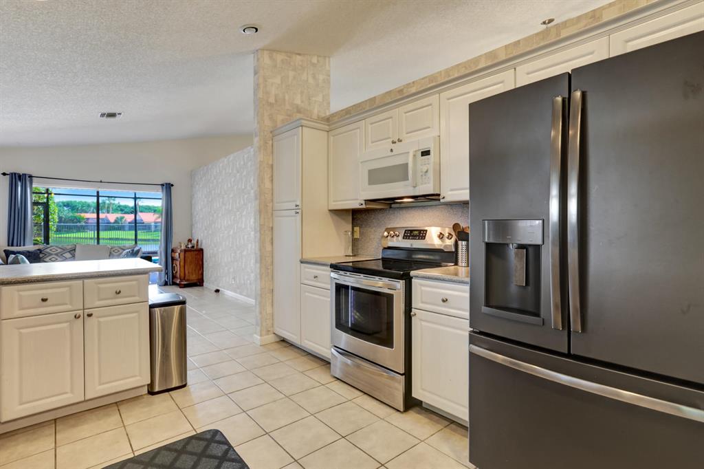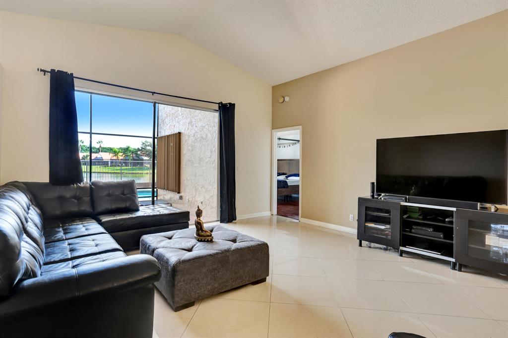From the moment you walk through the double front doors of this 3 bedroom / 2 bathroom pool home with a 2-car garage, you'll be captivated by the gorgeous lake view and feel the openness of the living area with vaulted ceiling. There is beautiful neutral color tile in the living and formal dining rooms and laminate in the kitchen and bedrooms. The kitchen is equipped with stainless steel appliances and plenty of nice white cabinets. It is just steps away from the sliding doors leading you to the heated fresh water pool and a big screened covered patio. The patio is fantastic for relaxing or hosting a BBQ all while taking in the serenity of the stunning lake from the iron fenced backyard. The master bedroom features a walk-in and a regular closet. One of the guest bedrooms also offers a
