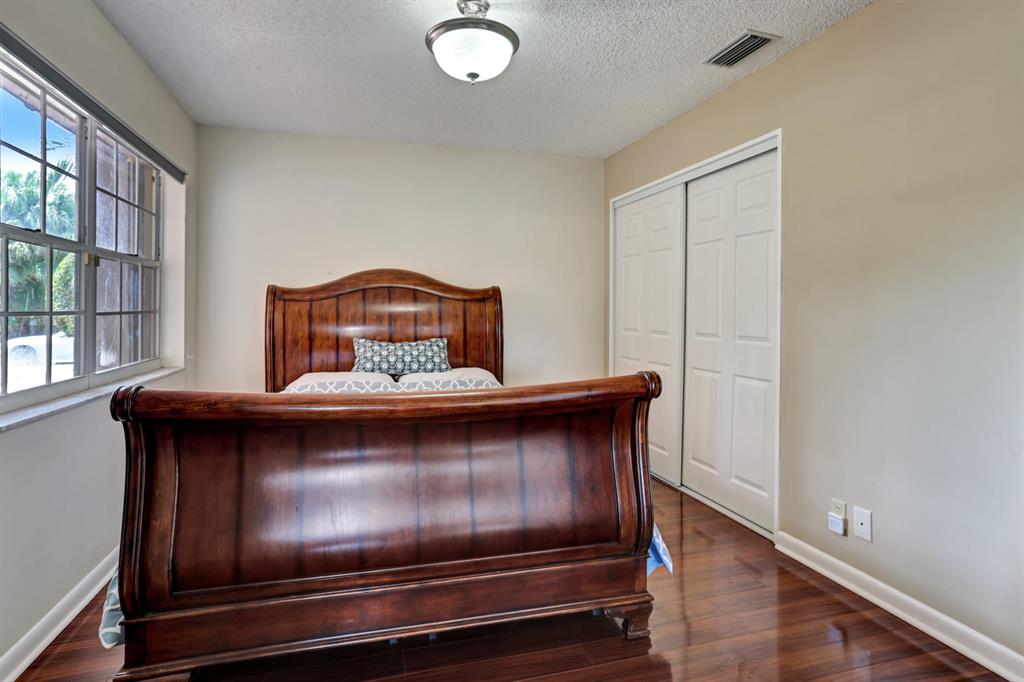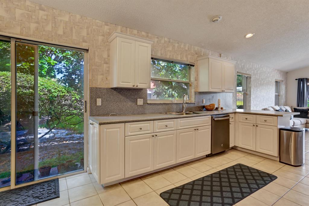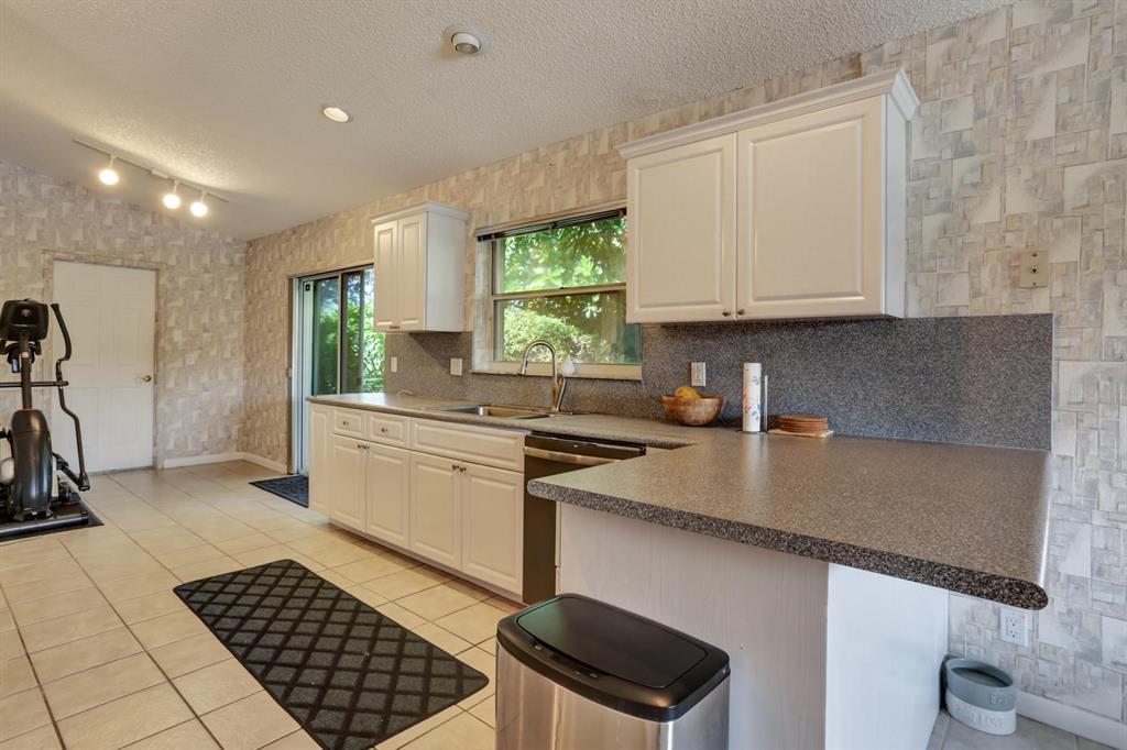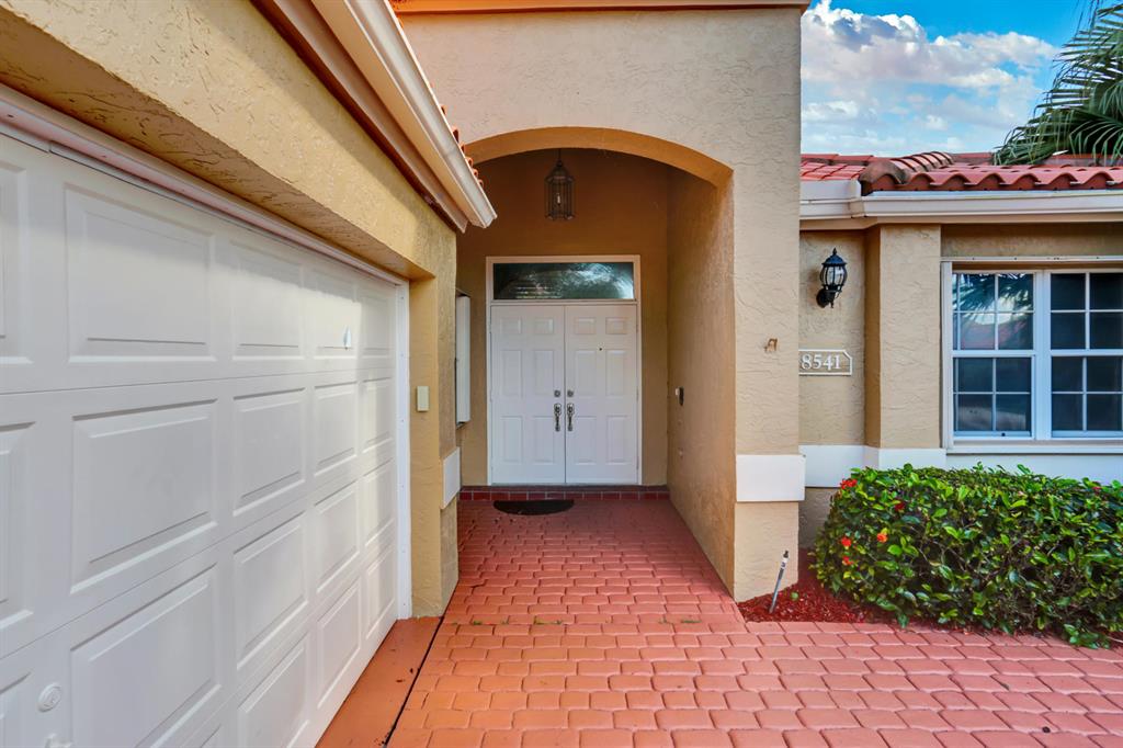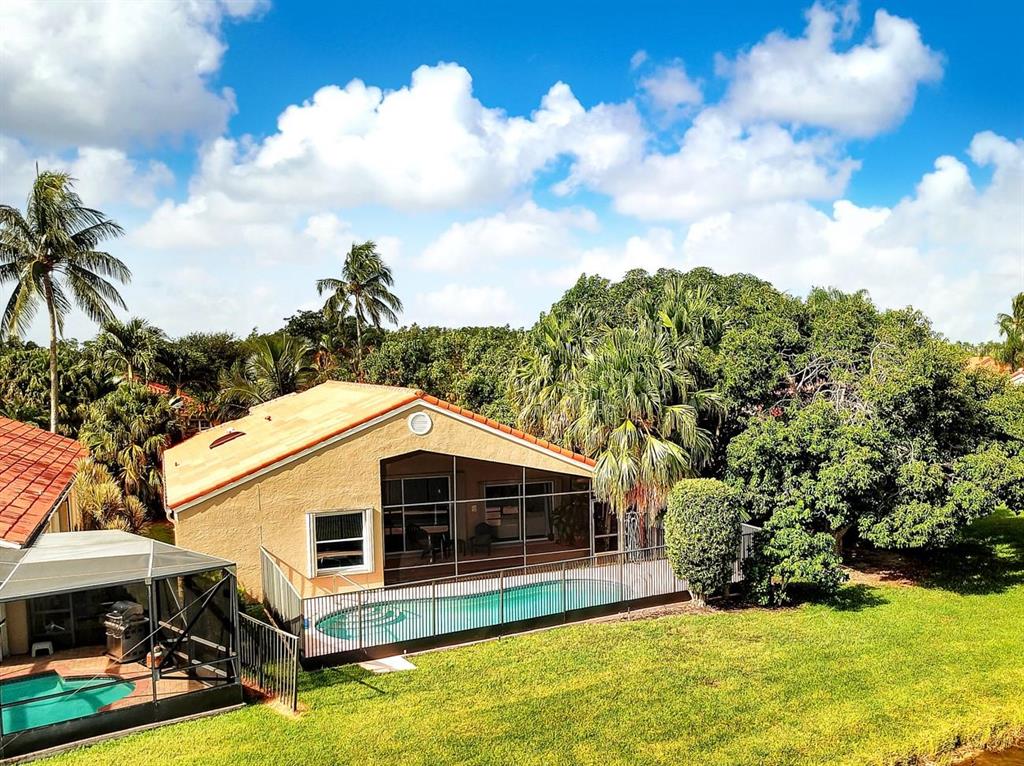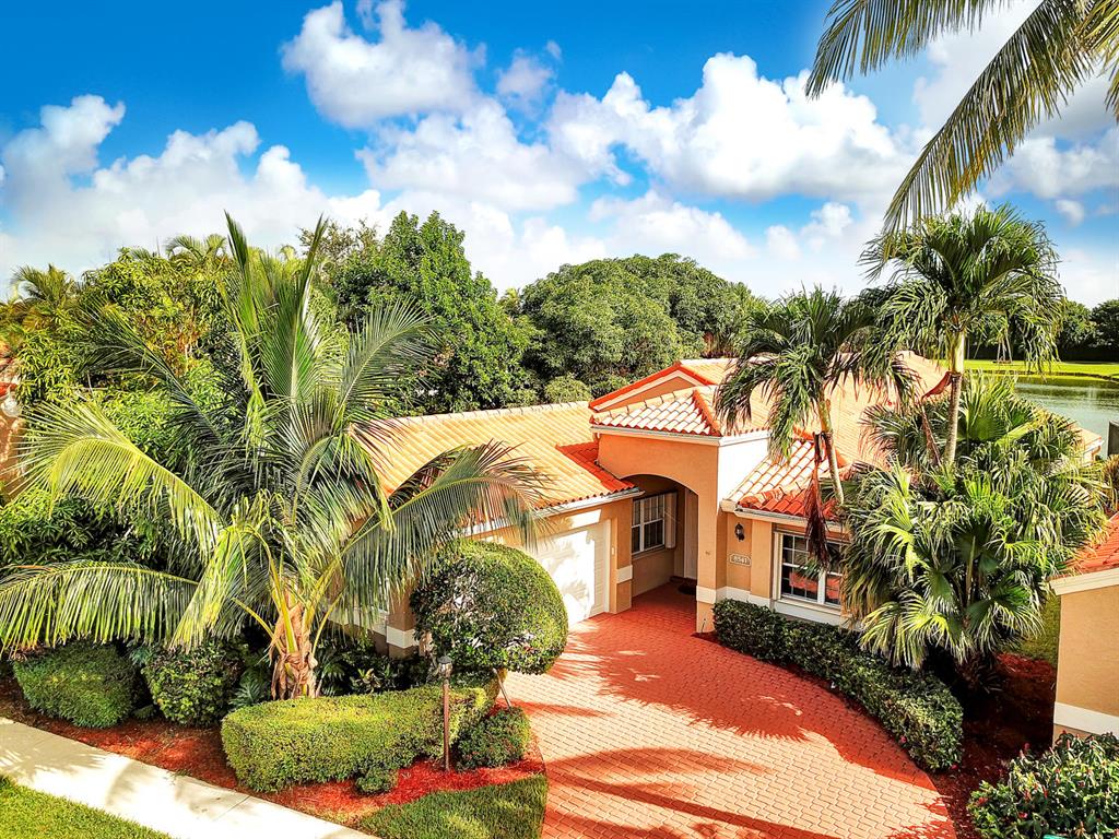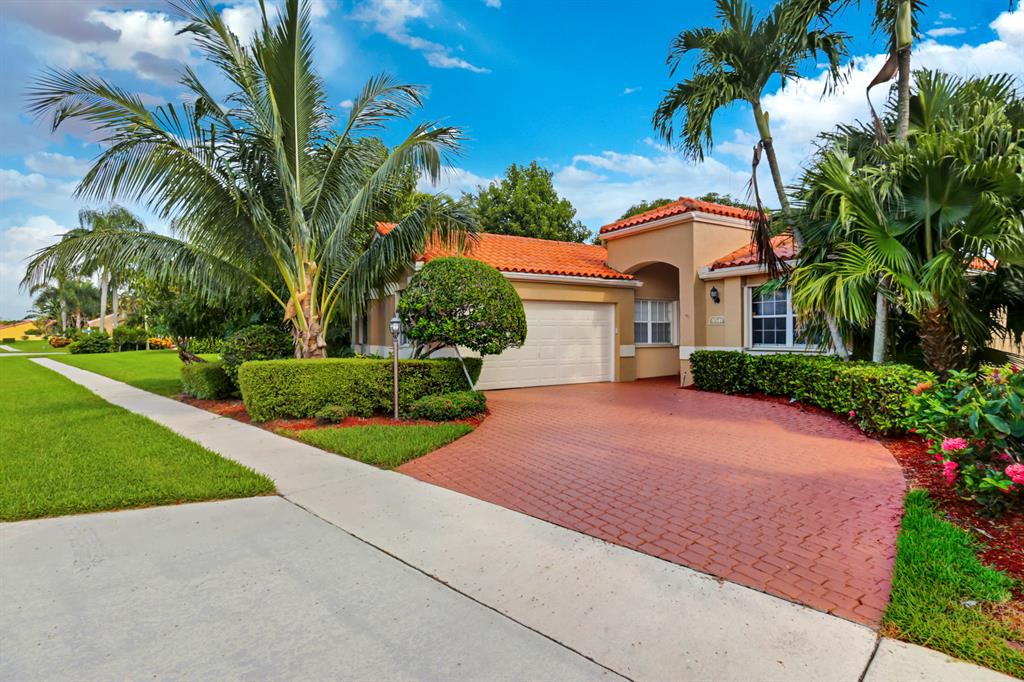 From the moment you walk through the double front doors of this 3 bedroom / 2 bathroom pool home with a 2-car garage, you'll be captivated by the gorgeous lake view and feel the openness of the living area with vaulted ceiling. There is beautiful neutral color tile in the living and formal dining rooms and laminate in the kitchen and bedrooms. The kitchen is equipped with stainless steel appliances and plenty of nice white cabinets. It is just steps away from the sliding doors leading you to the heated fresh water pool and a big screened covered patio. The patio is fantastic for relaxing or hosting a BBQ all while taking in the serenity of the stunning lake from the iron fenced backyard. The master bedroom features a walk-in and a regular closet. One of the guest bedrooms also offers a