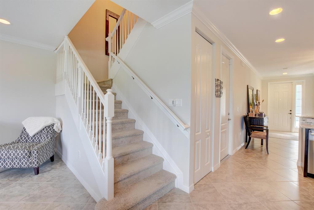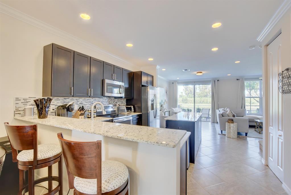 Your brand new custom, professionally decorated townhome situated in a gated boutique community has arrived. Your new townhome backs a gorgeous lake and has tons of features & upgrades. Some of these Features include: Beautiful hardwood flooring, custom paint, recessed energy efficient LED lighting, Tier3 impact glass & alarm system for peace of mind. Chef's dream built in pantry, high energy efficient GE stainless appliances. Well planned master suite closet! Crown molding and plantation blinds compliment the decor. Ample storage including a front loading laundry center with cabinetry. Relax on the amazing peaceful fenced in patio in your backyard. CHECK OUT UPGRADES IN DOCUMENTS SECTION