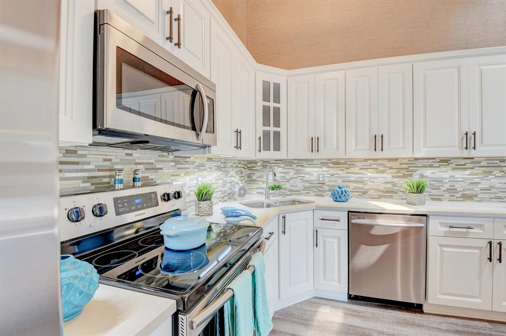 Fabulous & updated 3 Bedrooms, 4 baths (not a typo-really has 4 updated & really nice bathrooms! 3 full baths/1 half bath), PLUS 1 car garage townhouse with huge courtyard entrance. Home featuring brand new(never used) designer eat in kitchen with Quartz counter tops, glass tile backsplash, stainless appliances, solid wood cabinets & a pantry. Vaulted ceilings, laminate flooring, new lighting & plantation shutters are just some of the special touches. Huge private, fenced in courtyard. Fantastic Triple split open floor plan where all bedrooms have ''en-suites'' with full baths (Every bedroom has its own bathroom), plus powder room for guests. There is 3 master bedrooms, 2 downstairs and one upstairs. This property is in meticulous ''move in ready'' condition. Just bring your tooth brush.