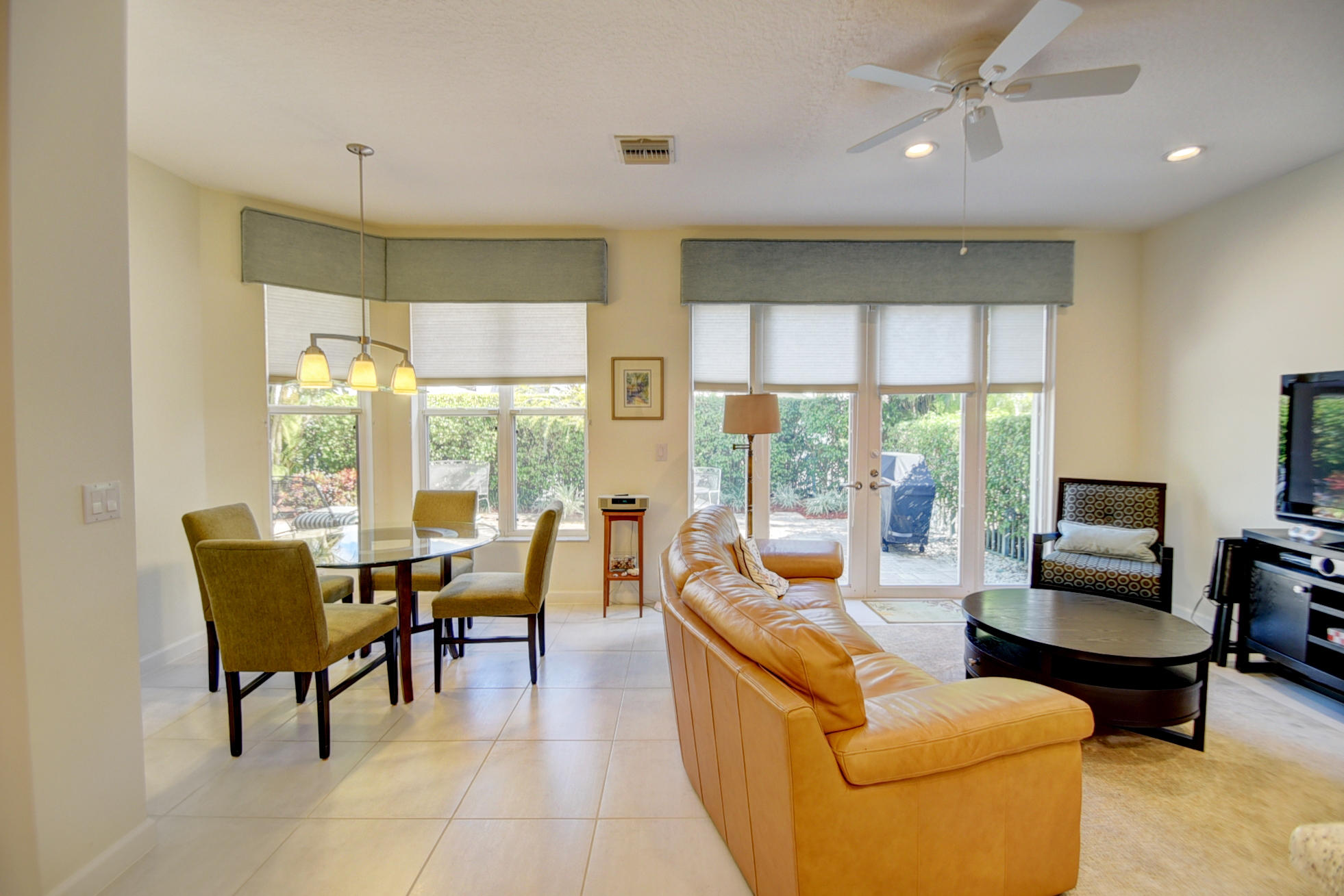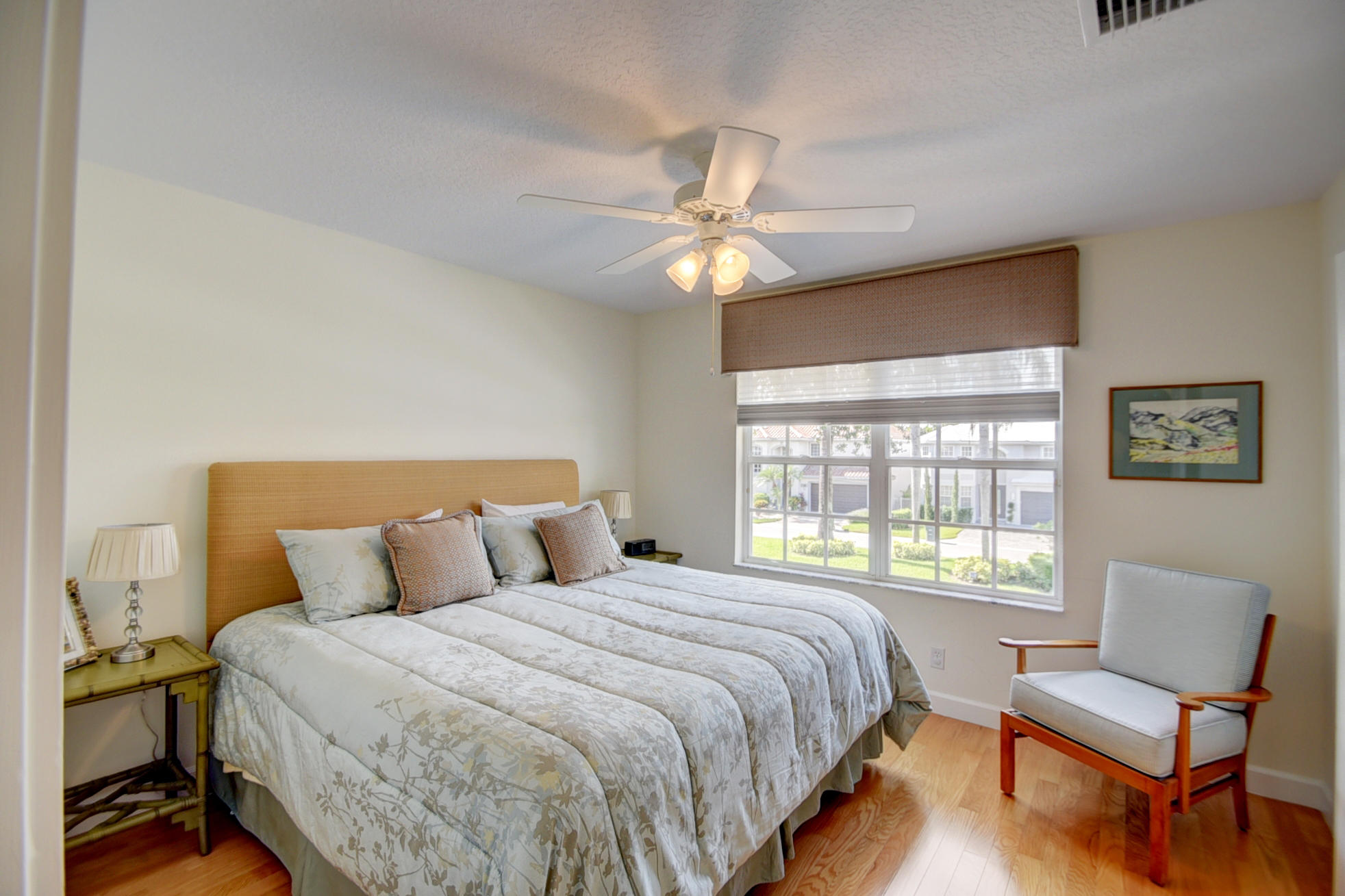 Located on private interior corner lot, lovely front double doors open into this tastefully remodeled home of 3 bedrooms plus a loft -- light & bright offering neutral tile & wood flooring; updated kitchen with light oak shaker-style cabinetry, corian countertops & a charming breakfast nook; updated bathrooms; custom window treatments; LED lighting; custom closet design; newer washer & dryer;new air conditioning system; & hurricane-rated insulated garage door. The staircase features a new banister & the landing features new railings. The second floor offers a Master Bedroom, closed loft with built-in desk & 2 bedrooms that share a bath.French doors of impact glass lead to a charming open pavered patio with tranquil landscape design.