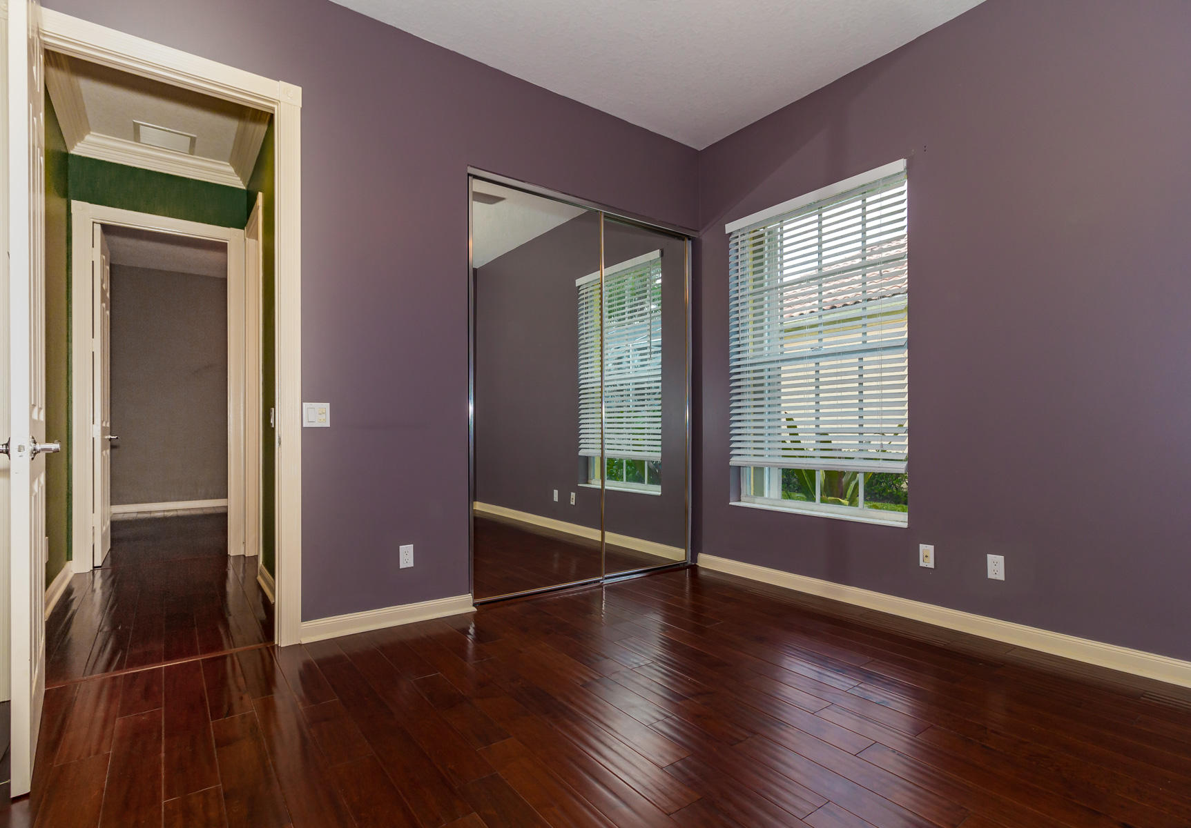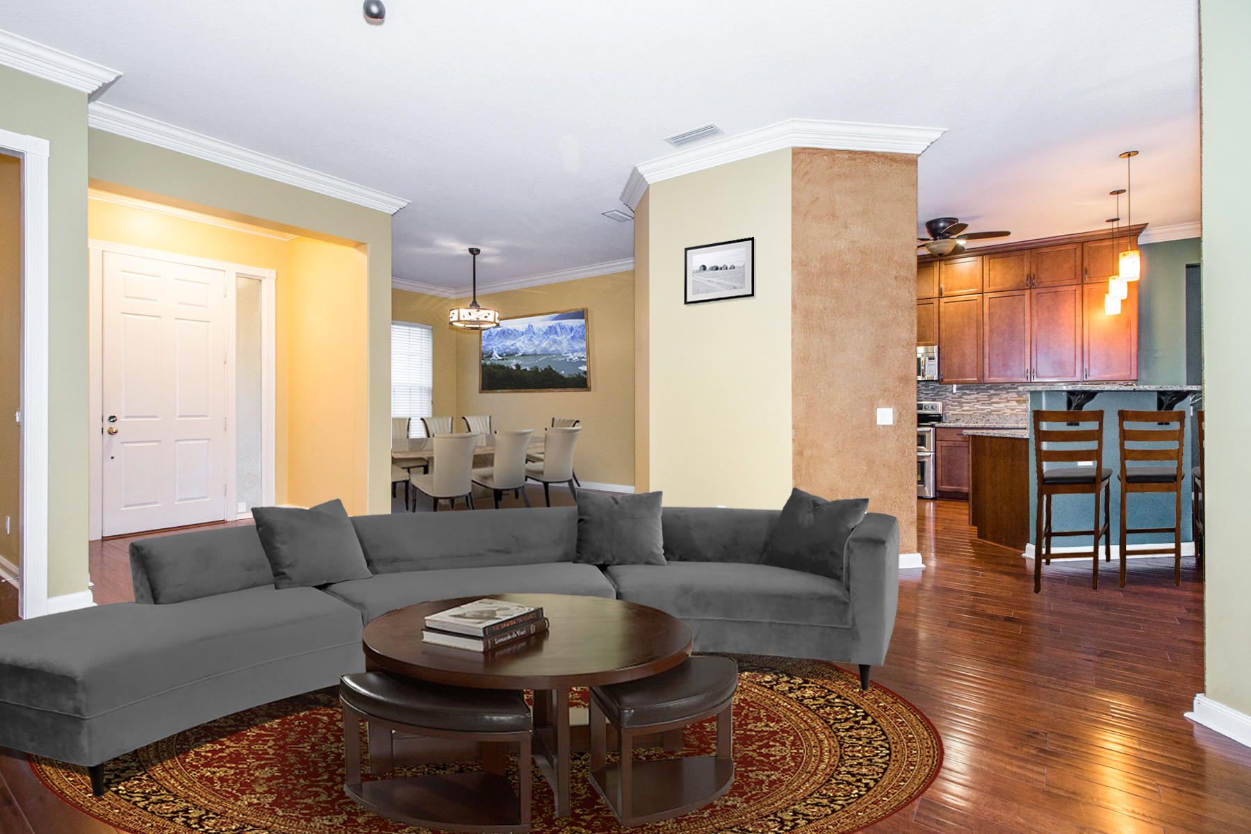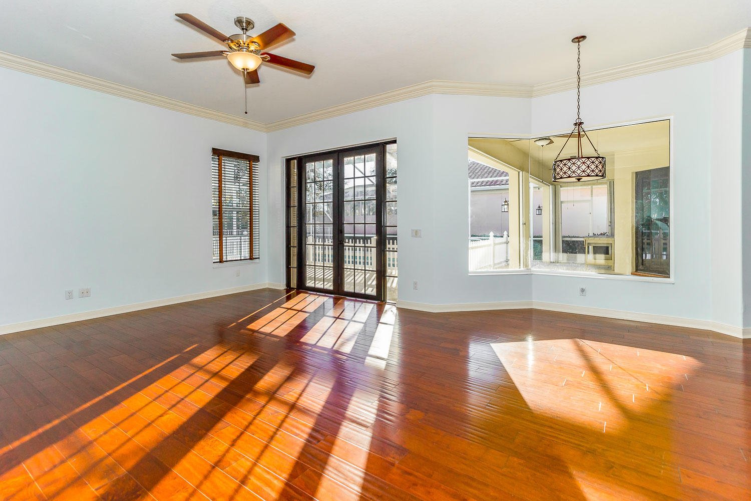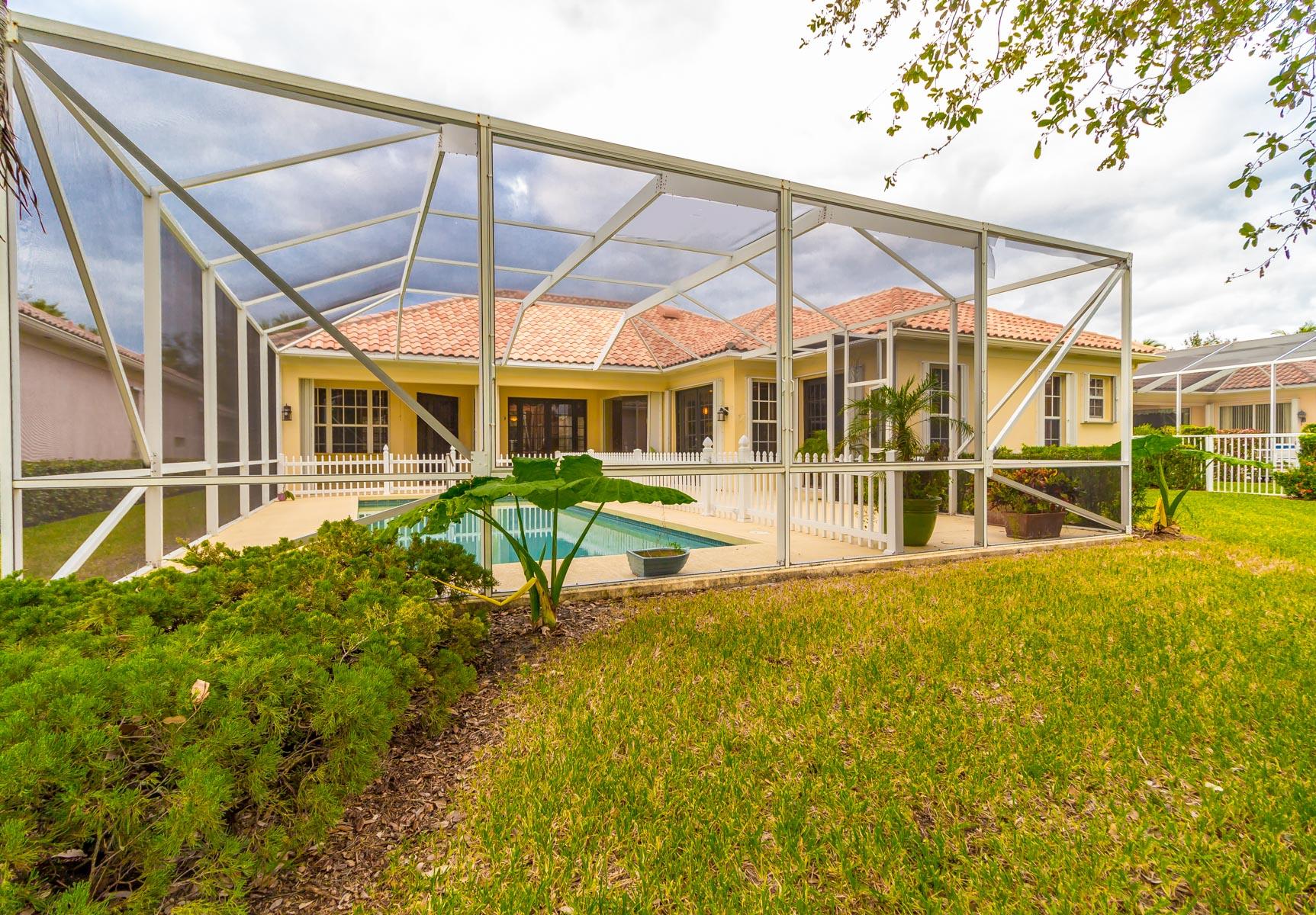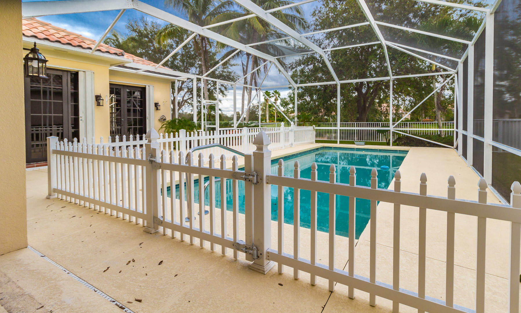 Absolutely stunning lakeside pool home with 4 bedrooms + den, formal dining, 3 baths and 2,544 SF/AC. Located in Riverwalk, a pristine village like community in central West Palm Beach.Acquire this highly upgraded, move in condition property offering new custom kitchen cabinets, stainless steel appliances, granite counters and engineered wood floors covering the entire main living area. Storage space is plenty full with the addition of a bank of cabinets in the utility room and the garage. Updated A/C system, hot water heater and central vac offers are a plus. Custom French doors open to enjoy the outdoor living area having a screen enclosed in ground pool and garden. Storm and security protected with an accordion shutter system. A spacious, elegant home for today and years to come