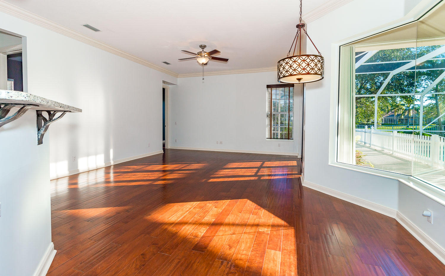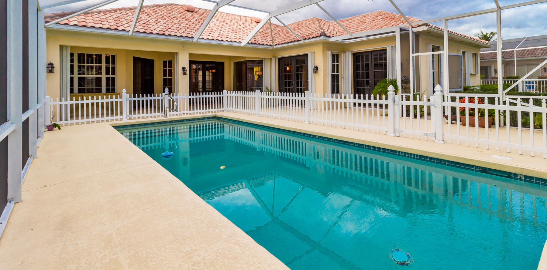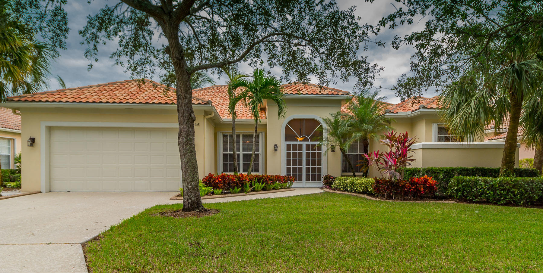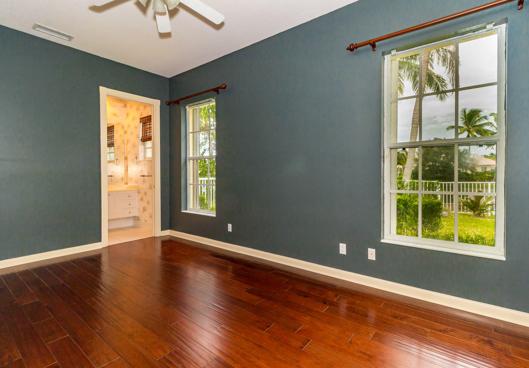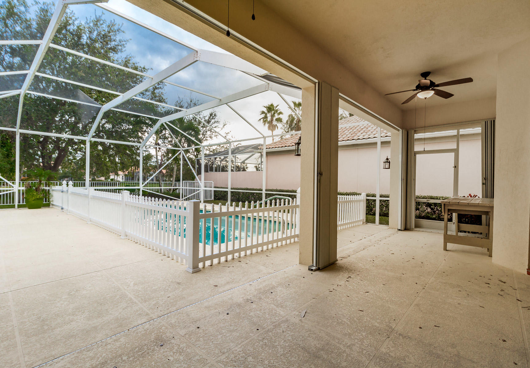 Absolutely stunning lakeside pool home with 4 bedrooms + den, formal dining, 3 baths and 2,544 SF/AC. Located in Riverwalk, a pristine village like community in central West Palm Beach.Acquire this highly upgraded, move in condition property offering new custom kitchen cabinets, stainless steel appliances, granite counters and engineered wood floors covering the entire main living area. Storage space is plenty full with the addition of a bank of cabinets in the utility room and the garage. Updated A/C system, hot water heater and central vac offers are a plus. Custom French doors open to enjoy the outdoor living area having a screen enclosed in ground pool and garden. Storm and security protected with an accordion shutter system. A spacious, elegant home for today and years to come